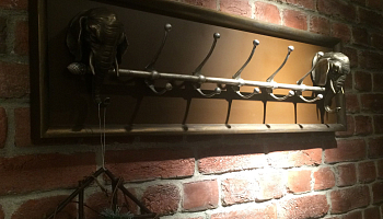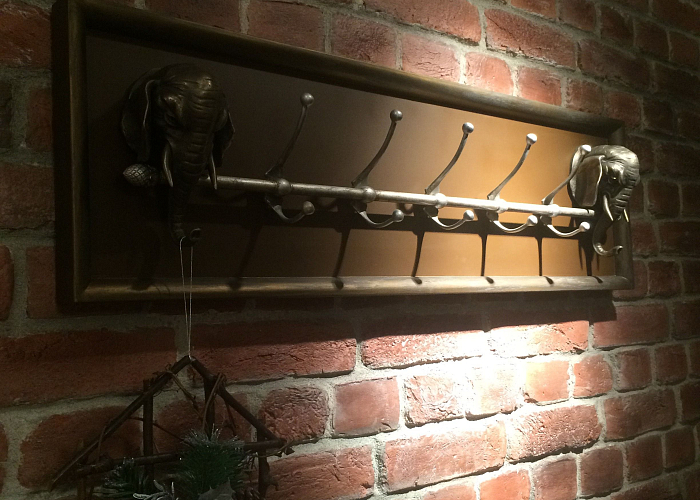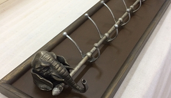 Мебельные ручки-кнопки получили круглую или овальную форму. Их установили на кухонных гарнитурах, шкафах и комодах. Вешалка для одежды в прихожую снабжена декоративными головами слонов и 10 удобными крючками. Оригинальные накладки сделали оформление стола целостным и завершенным.