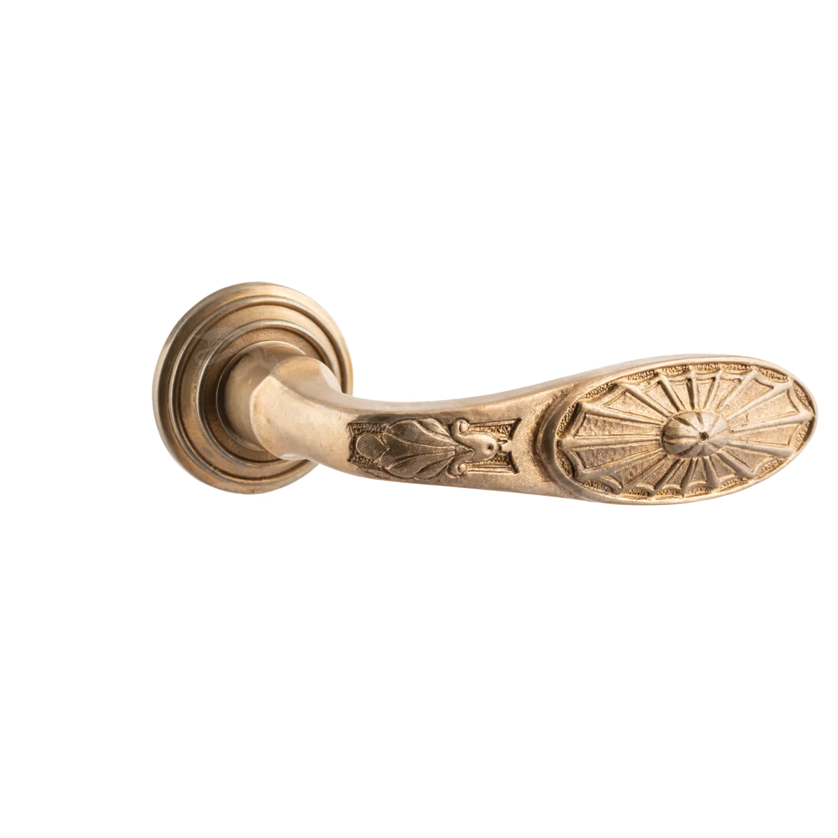 Нажимная ручка представлена в классическом стиле. Орнамент в виде стилизованных веерообразных листьев пальмы (пальметта) украшает фурнитуру. Ручка идеально подойдет как к классическому, так и к современному интерьеру.
