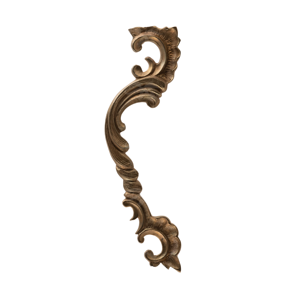 В художественно-производственной мастерской «Калежа» для классической мебели изготавливают оригинальную фурнитуру из латуни. Декоративная накладка Ф3046 выполнена по технологии бронзового литья. В ее оформлении можно увидеть роскошный растительный узор. Возможно изготовление мебельных комплектующих по представленному образцу – над такими заказами мастера работают в течение трех недель.