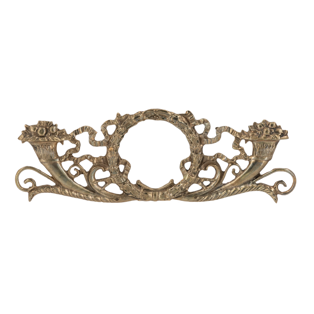 Лавровый венок между двумя рогами изобилия и валютами в форме листьев.