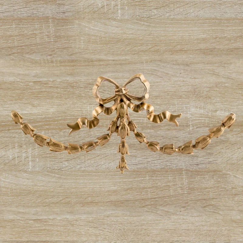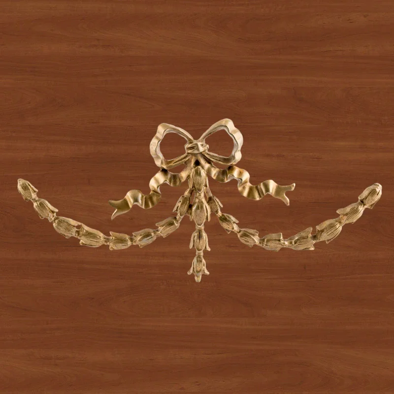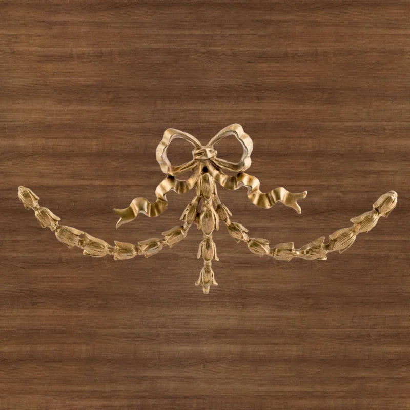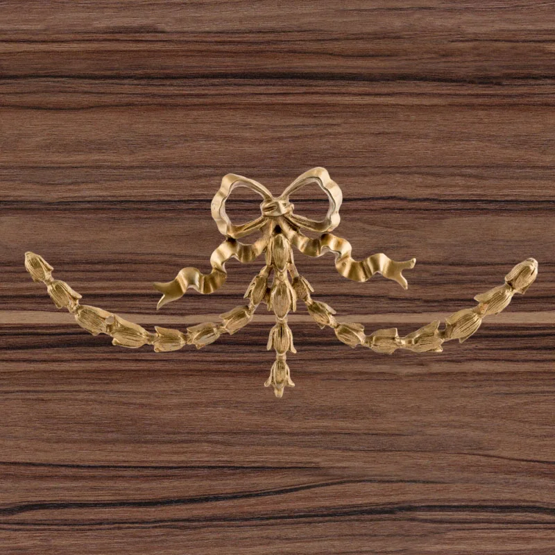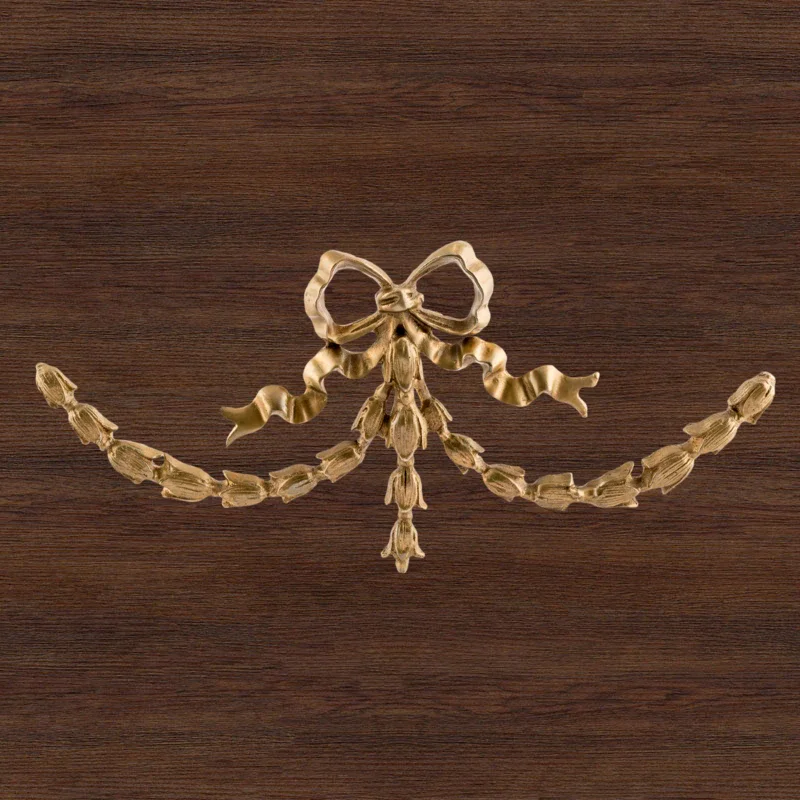 Декоративная накладка из латуни в виде банта с гирляндой из цветов Ф4461