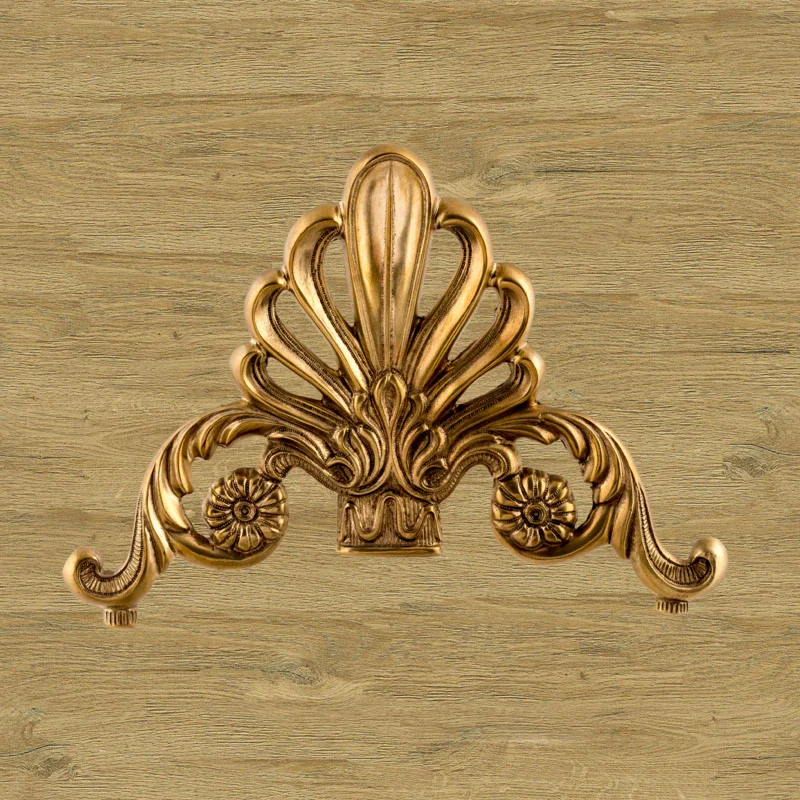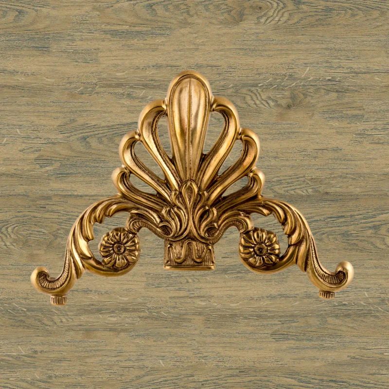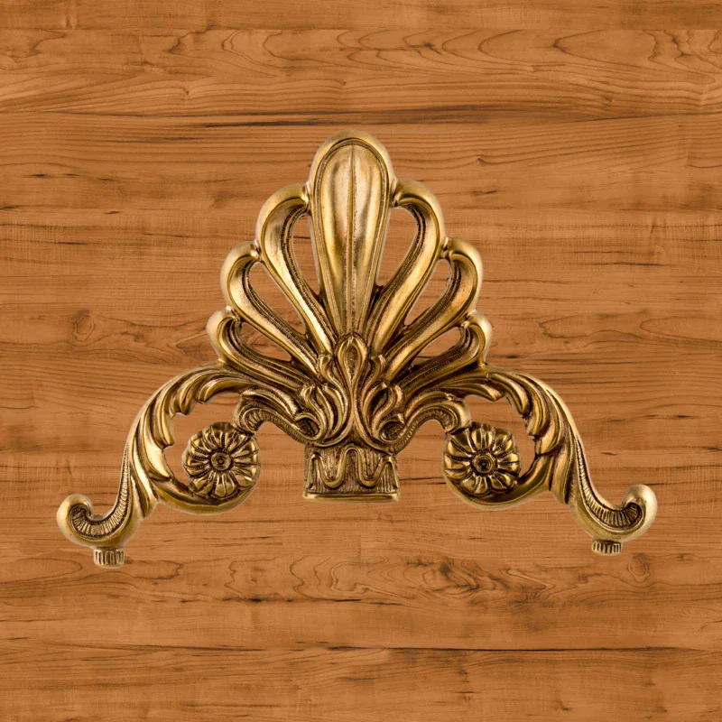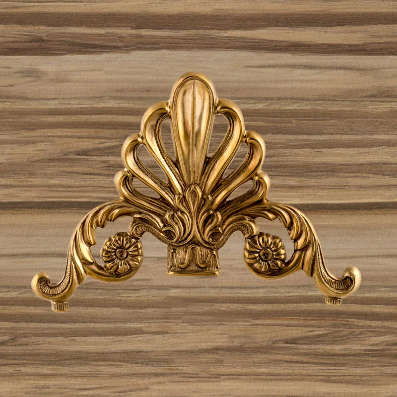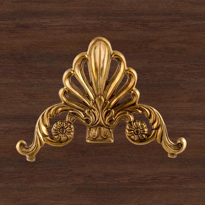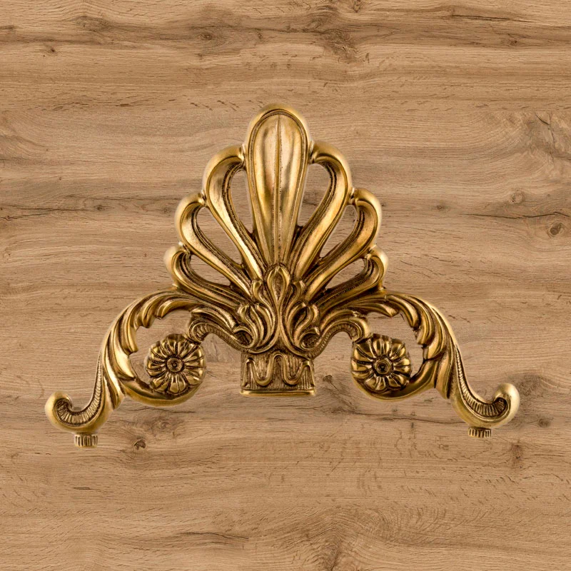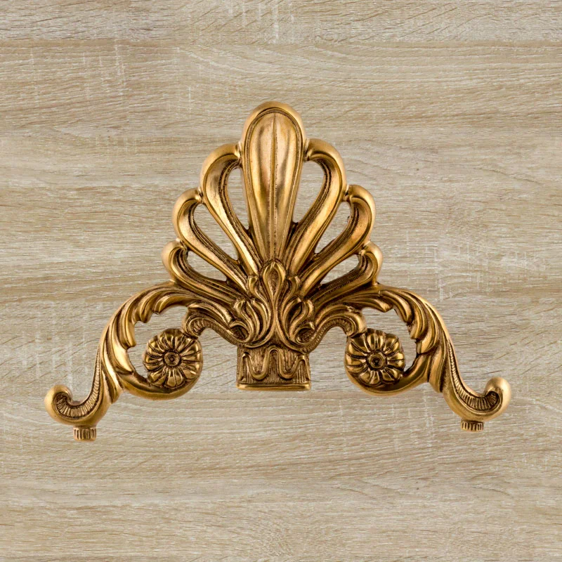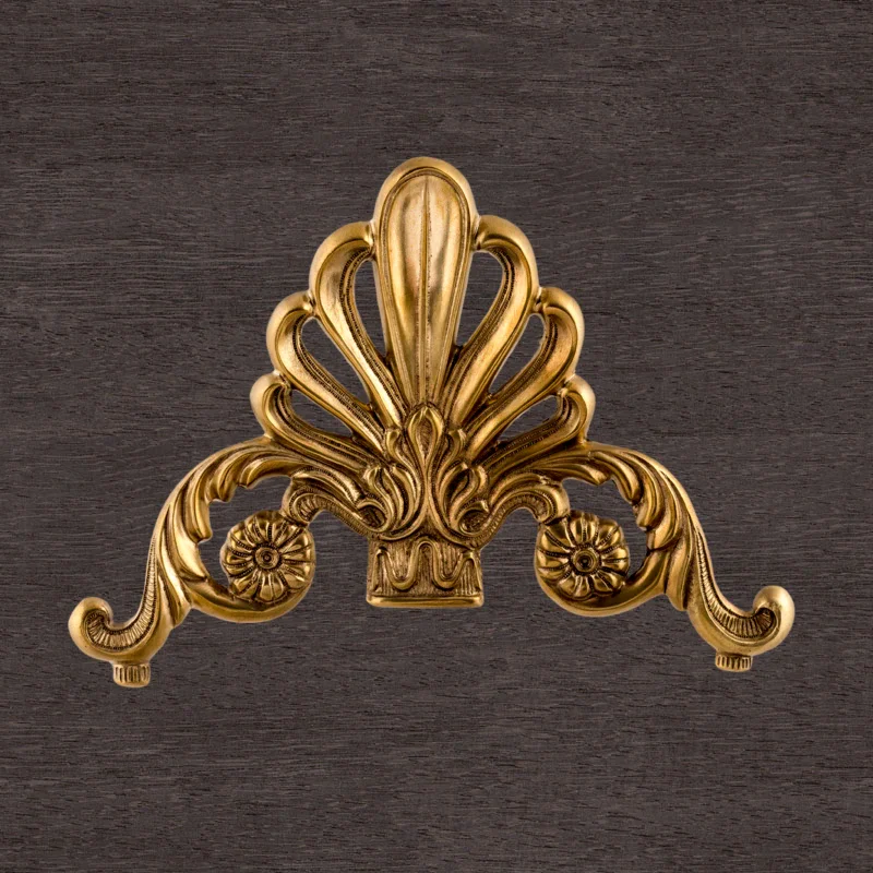 Декоративная накладка из золотистой латуни с вензелями и веером Ф5843