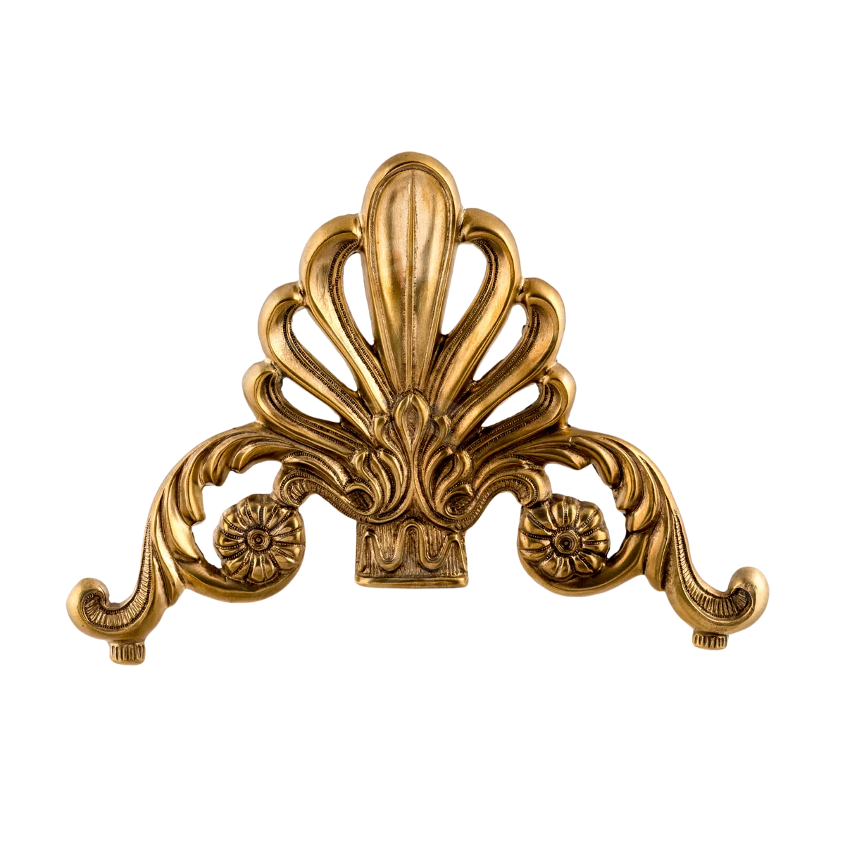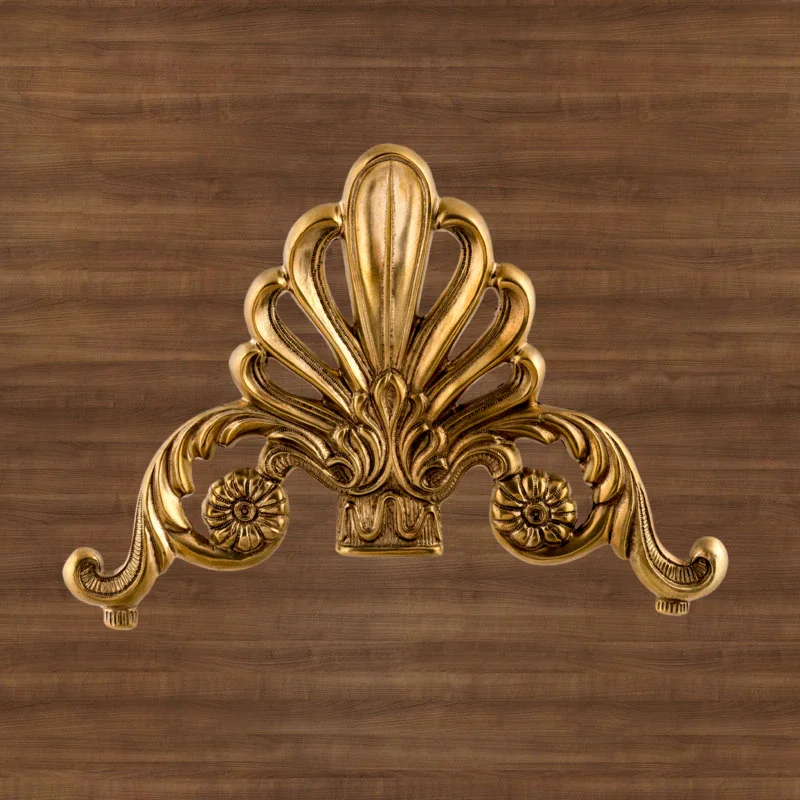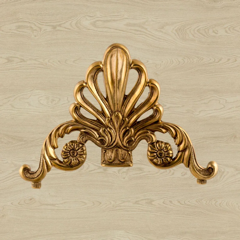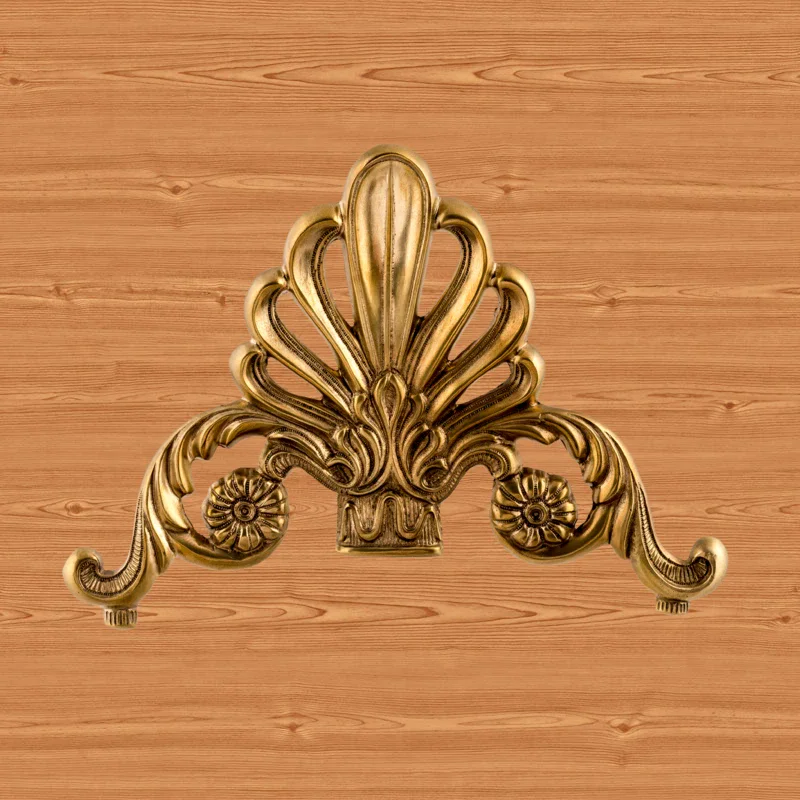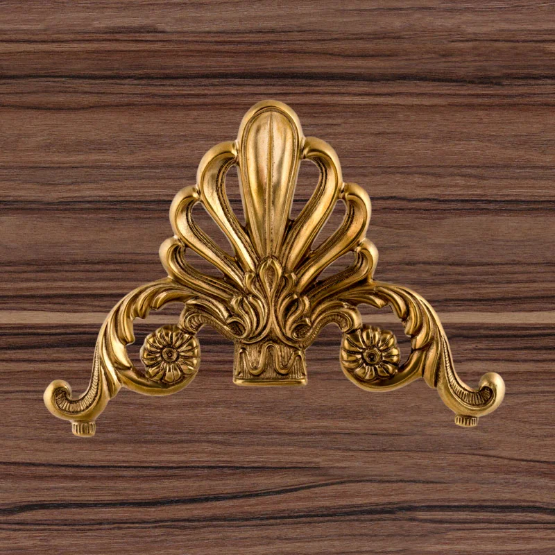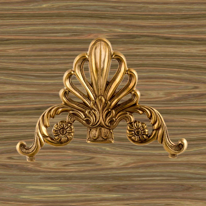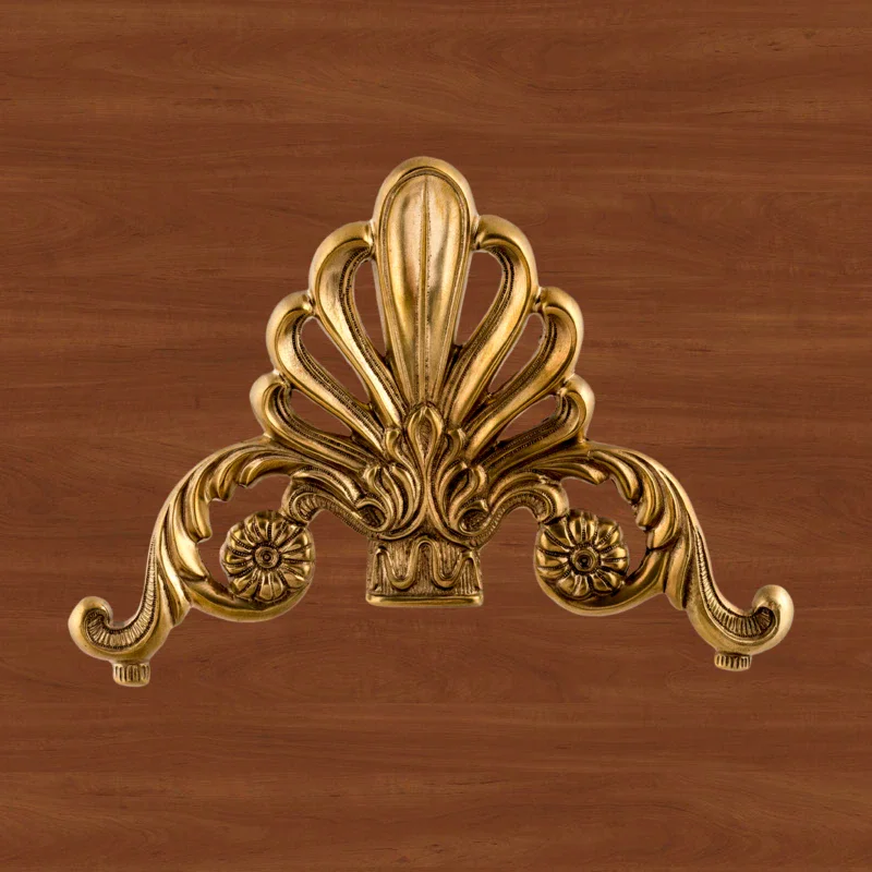 Декоративная накладка из золотистой латуни с вензелями и веером Ф5843