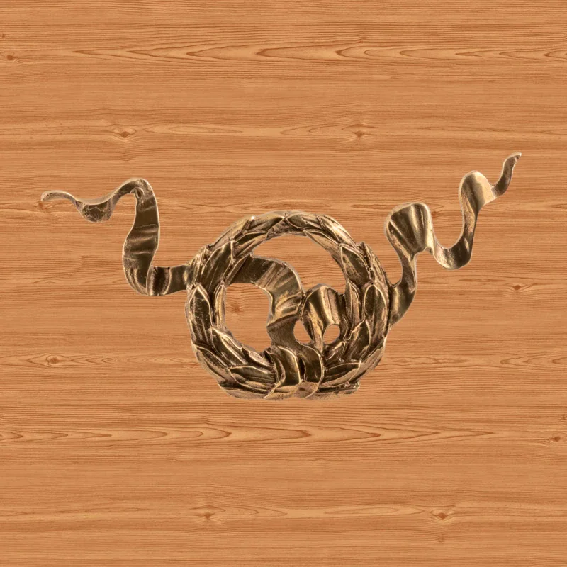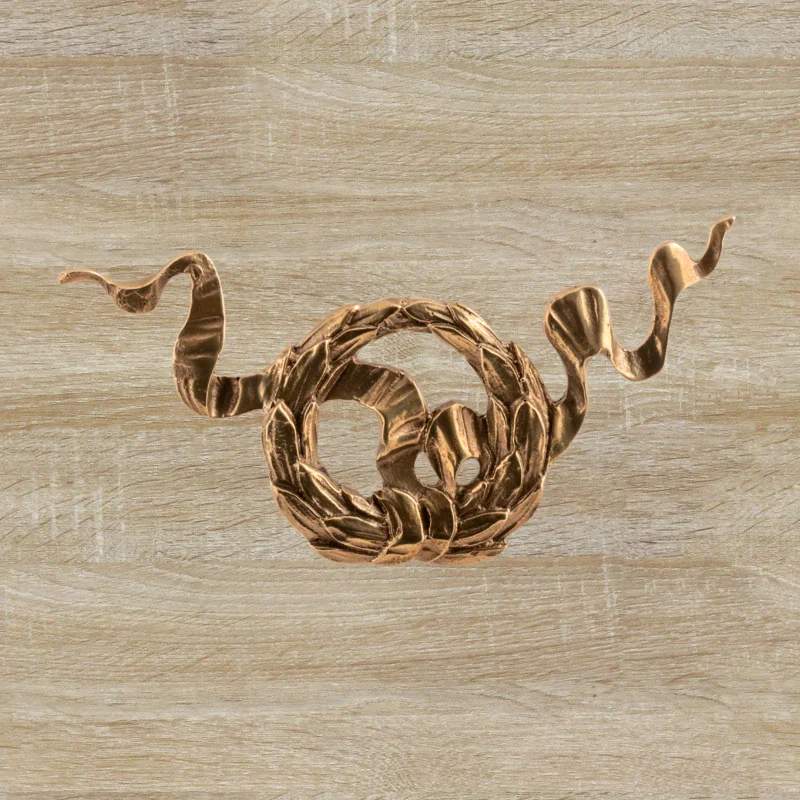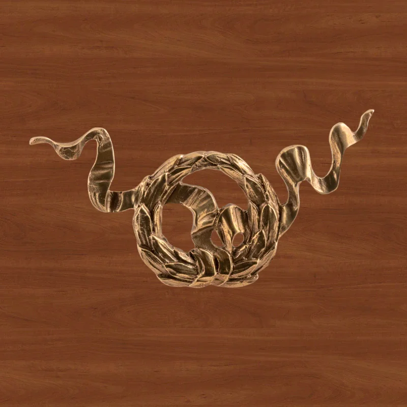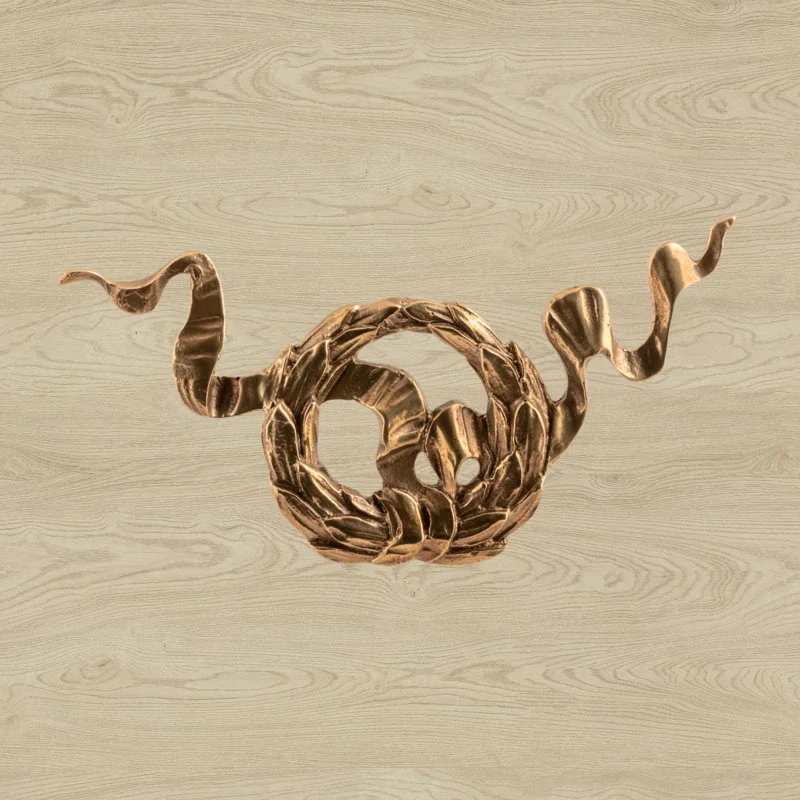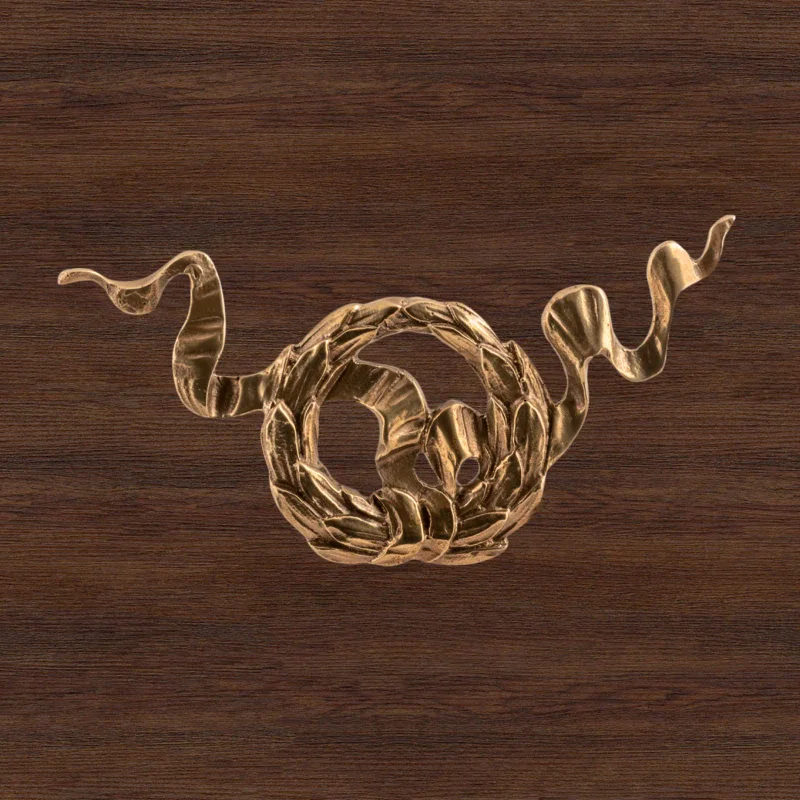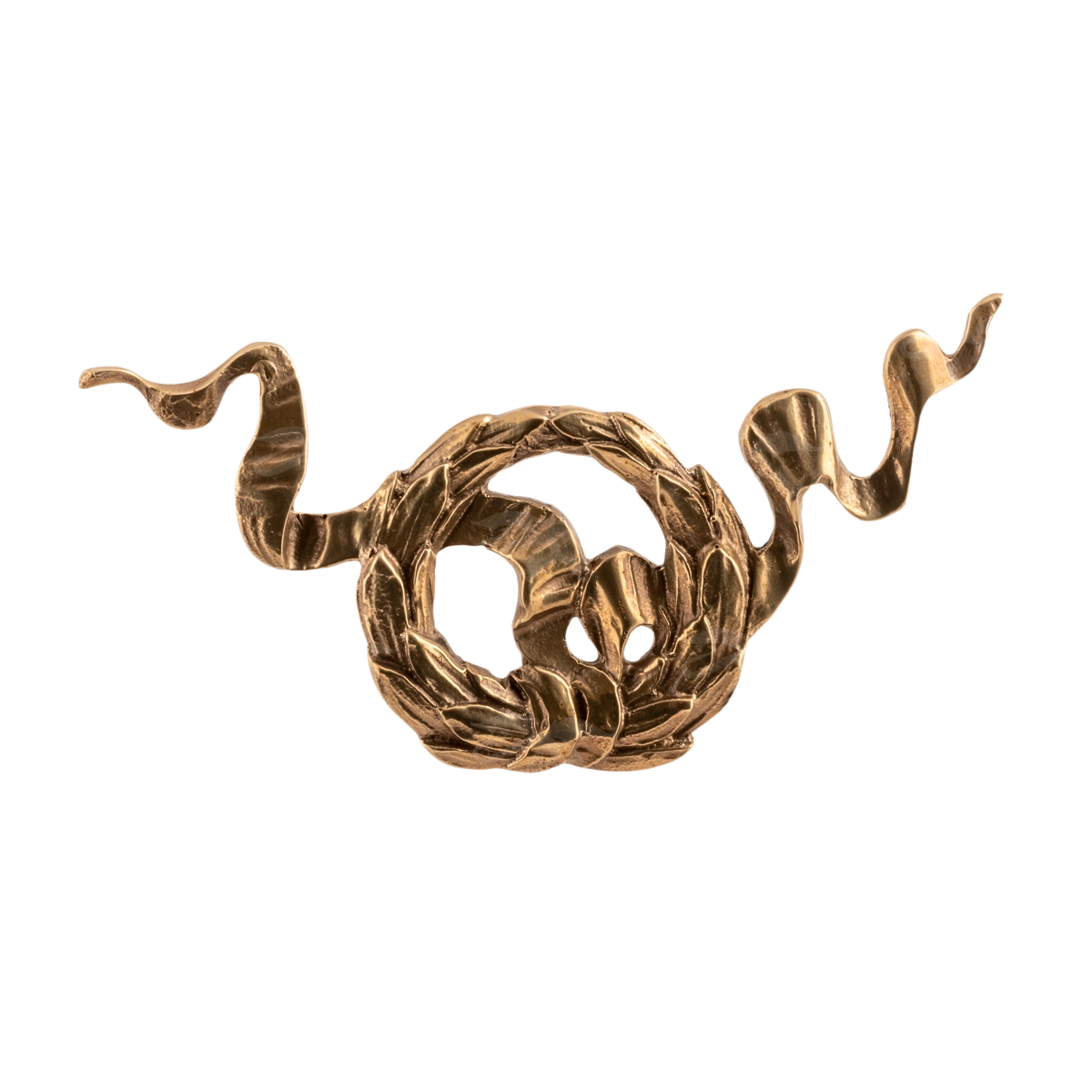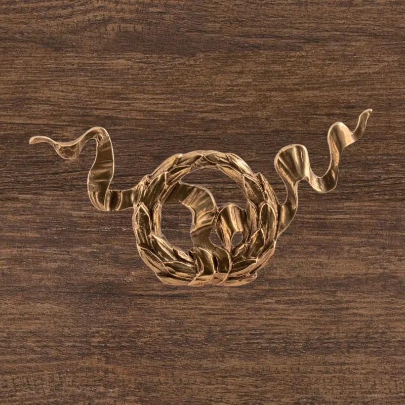 Декоративная мебельная накладка из латуни с развевающимися лентами на венке Ф6758