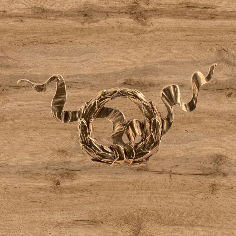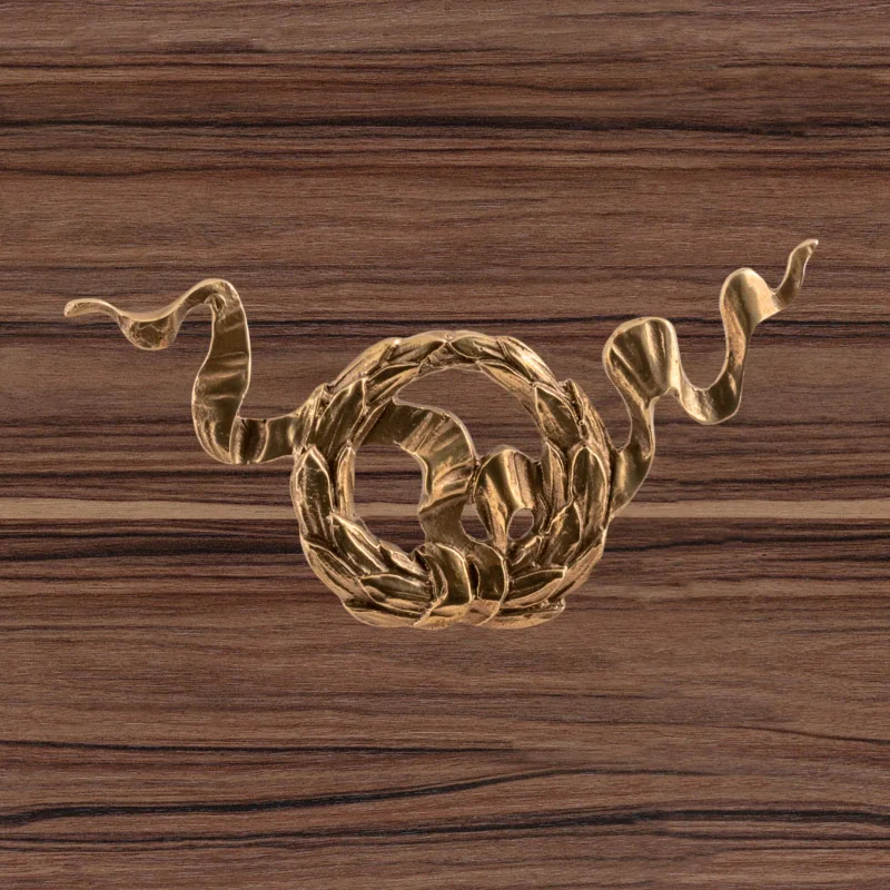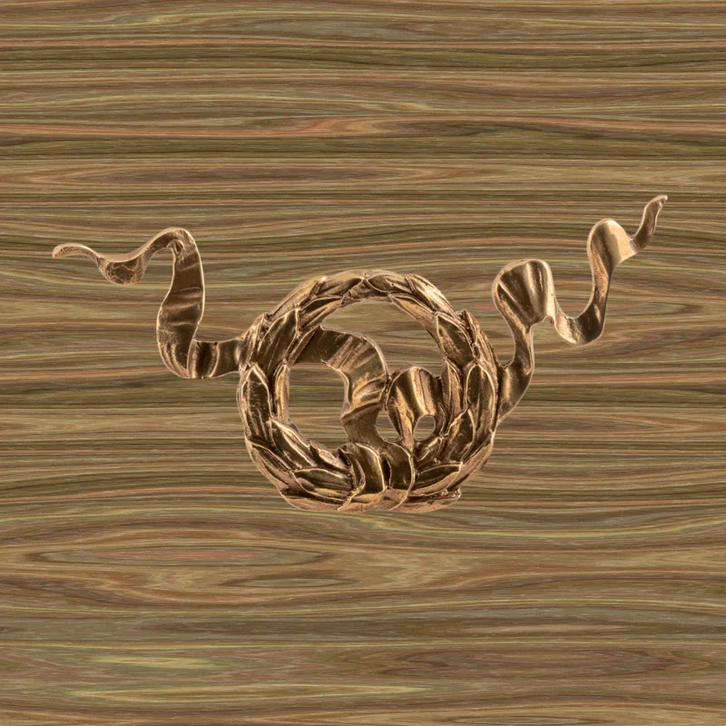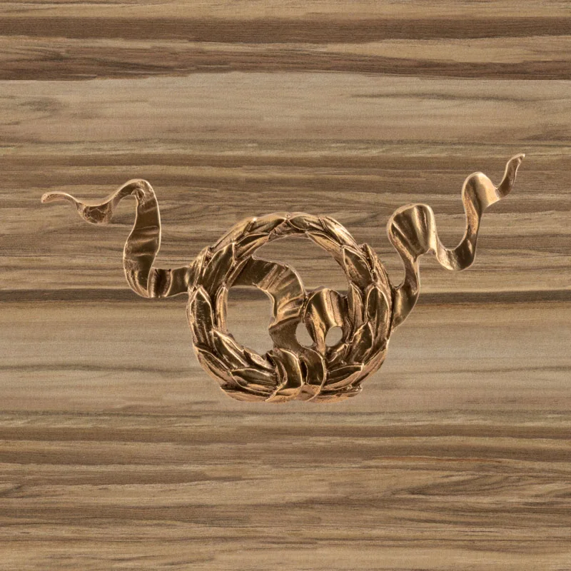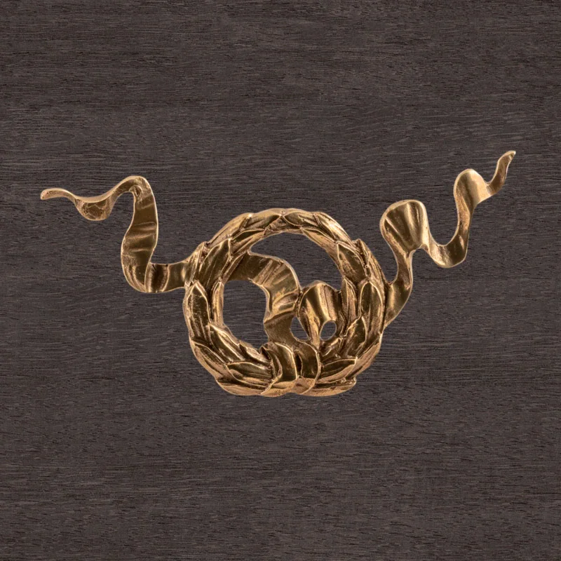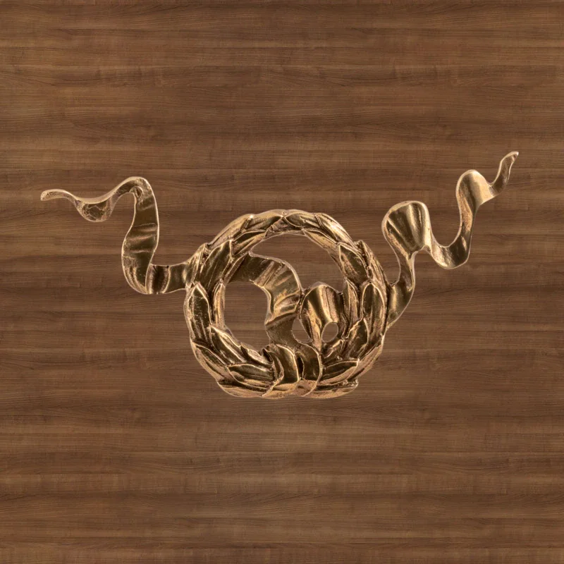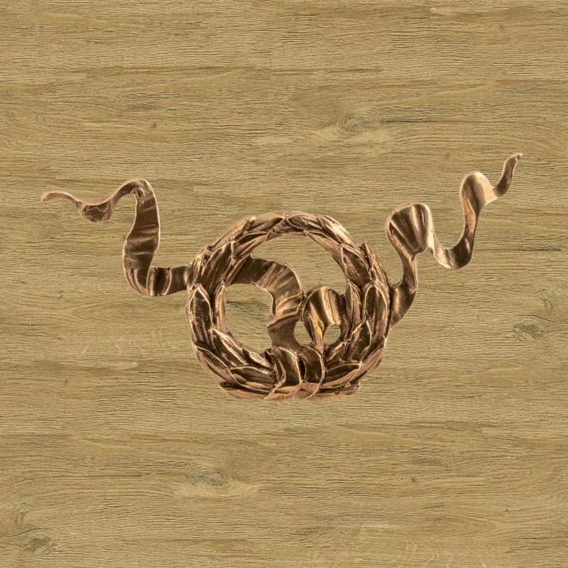 Декоративная мебельная накладка из латуни с развевающимися лентами на венке Ф6758
