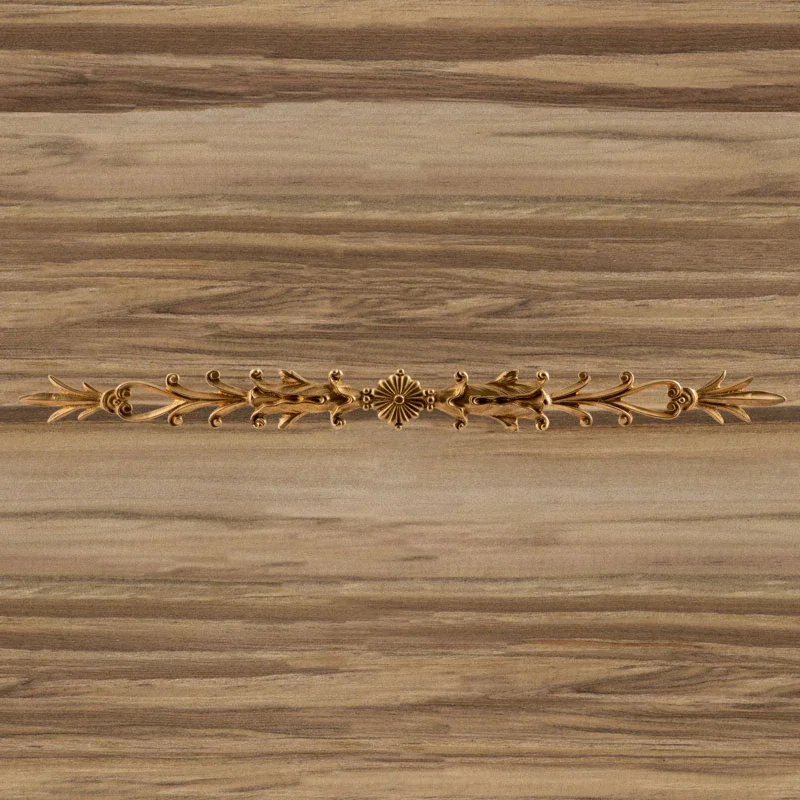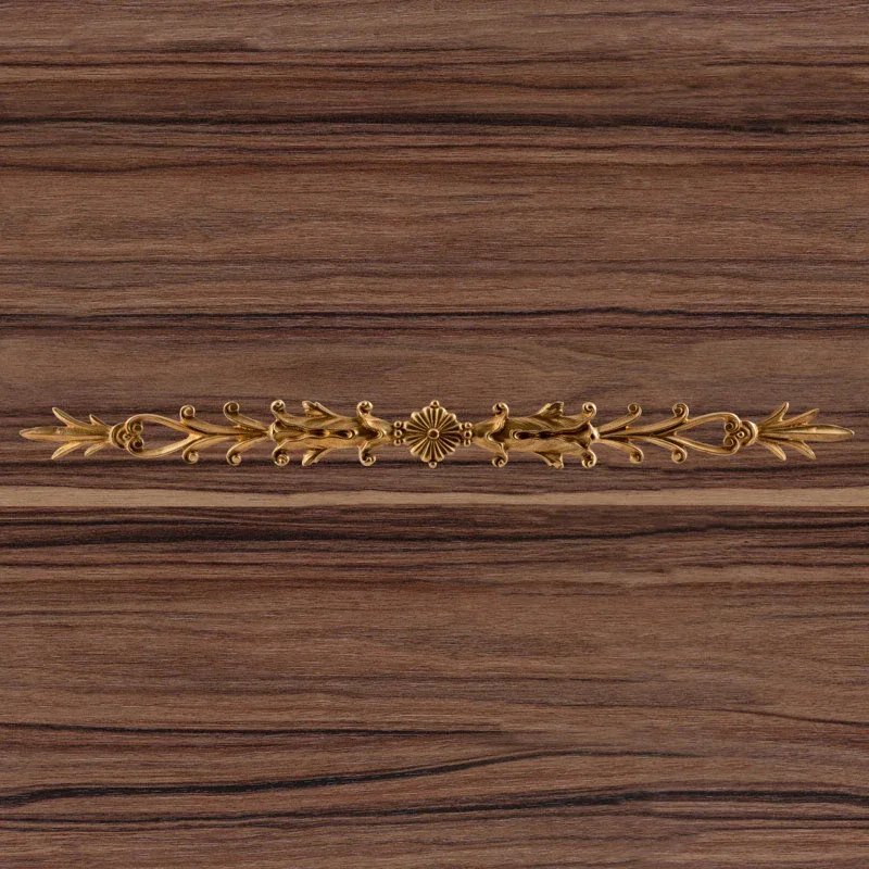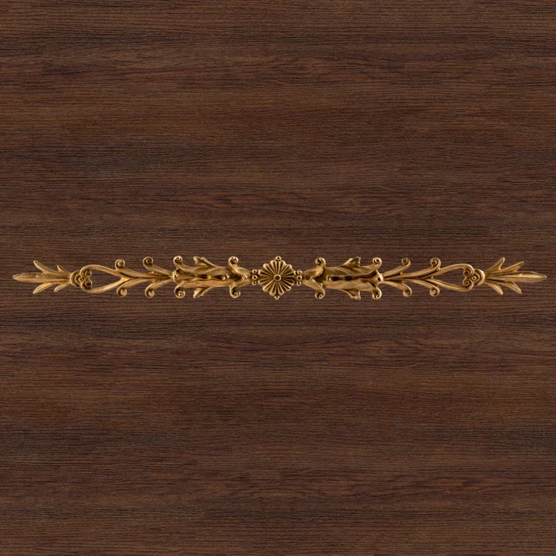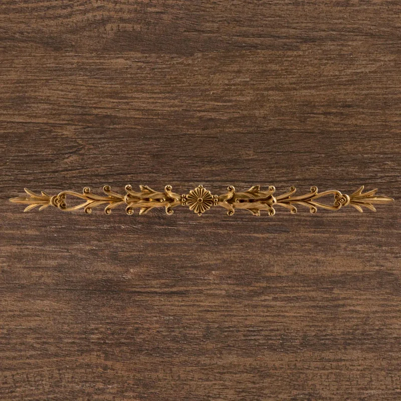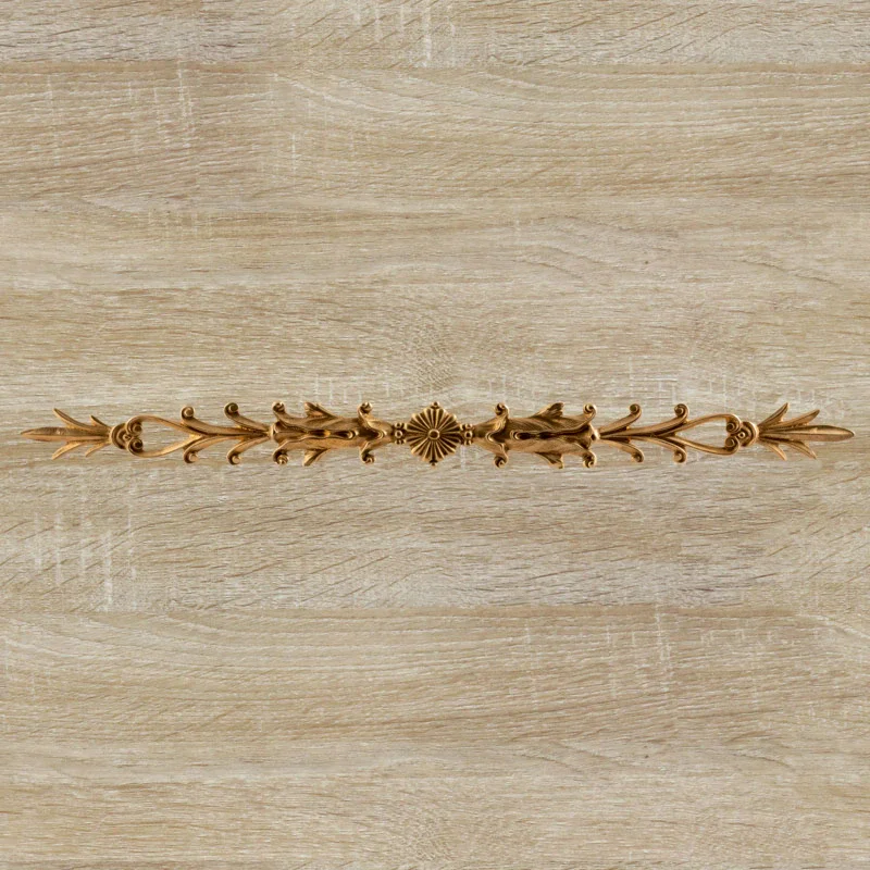 Декоративную накладку можно купить для украшения консоли, изголовья кровати, карниза шкафа или другой мебели, изготовленной на заказ. Латунный резной декор особенно эффектно смотрится на предметах из натурального дерева. Цвет металла подбирайте в тон корпусу. Представленную в каталоге накладку оттенка старого золота можно тонировать под серебро, бронзу, покрыть патиной для придания эффекта старины.