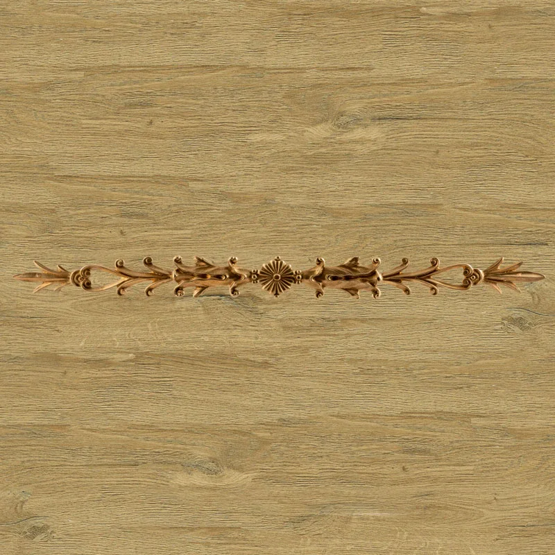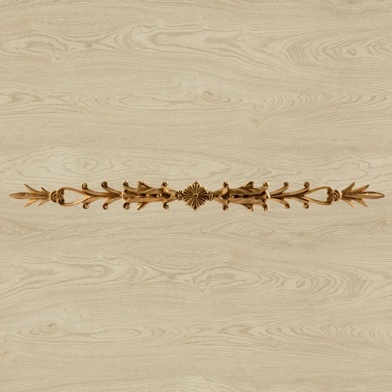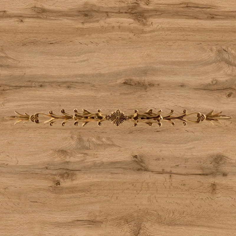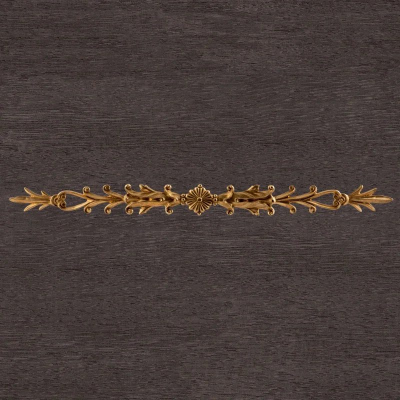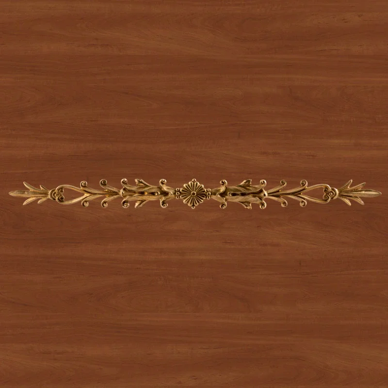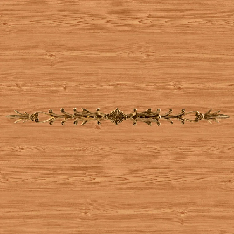 Декоративную накладку можно купить для украшения консоли, изголовья кровати, карниза шкафа или другой мебели, изготовленной на заказ. Латунный резной декор особенно эффектно смотрится на предметах из натурального дерева. Цвет металла подбирайте в тон корпусу. Представленную в каталоге накладку оттенка старого золота можно тонировать под серебро, бронзу, покрыть патиной для придания эффекта старины.