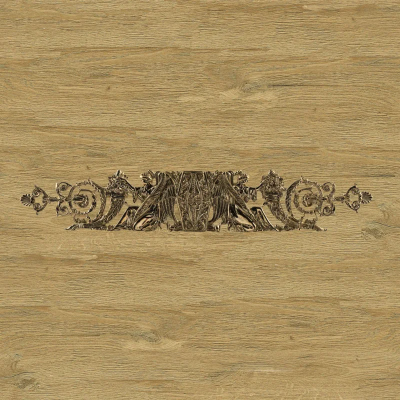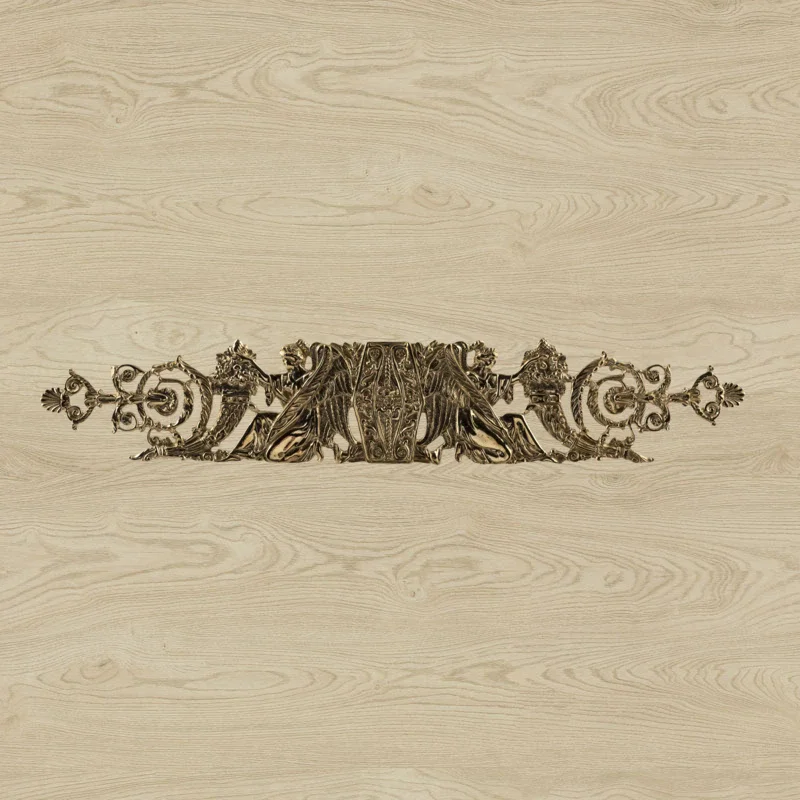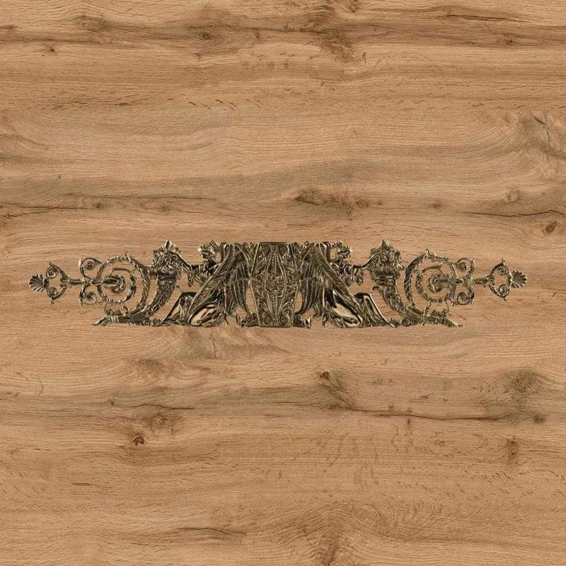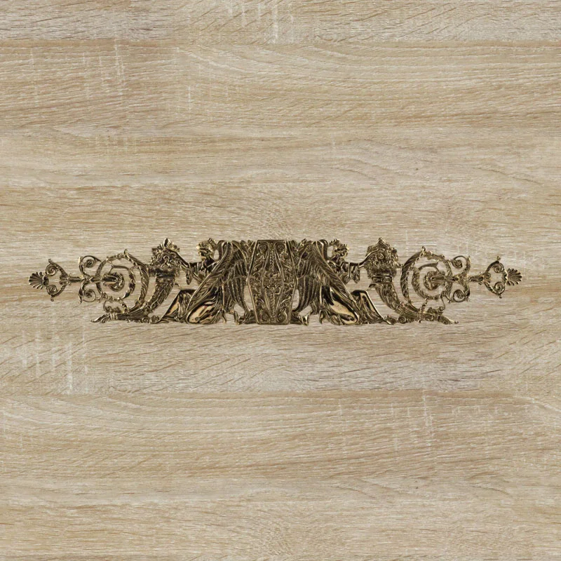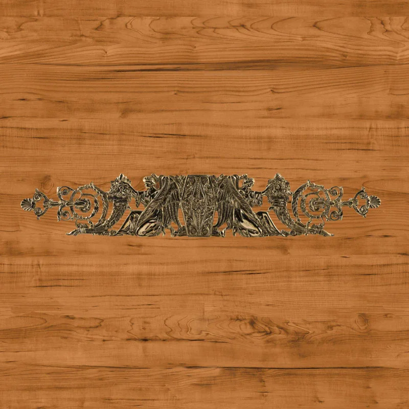 Декоративная накладка из латуни в виде двух нимф с рогами изобилия и растительными мотивами Ф6038