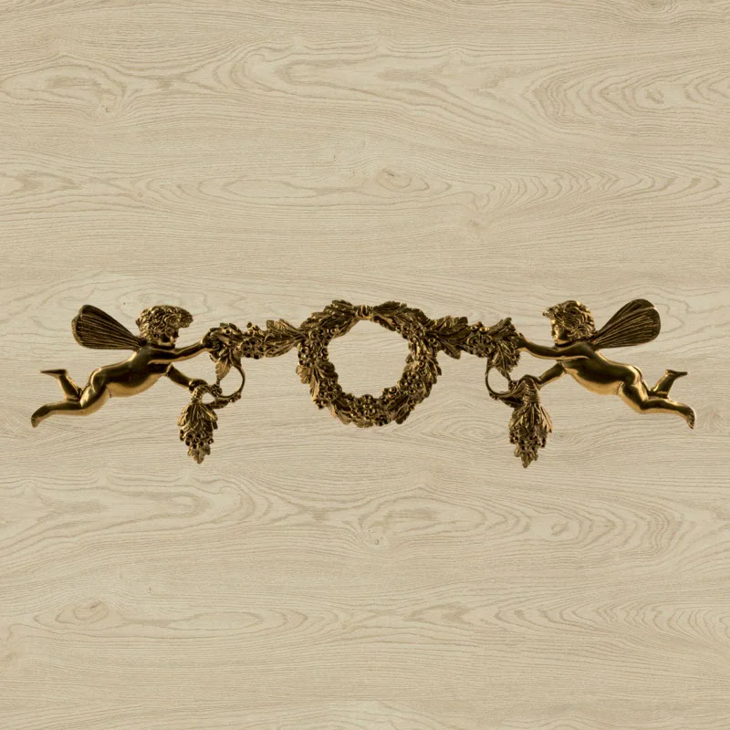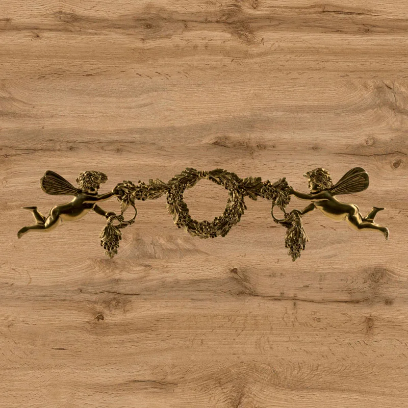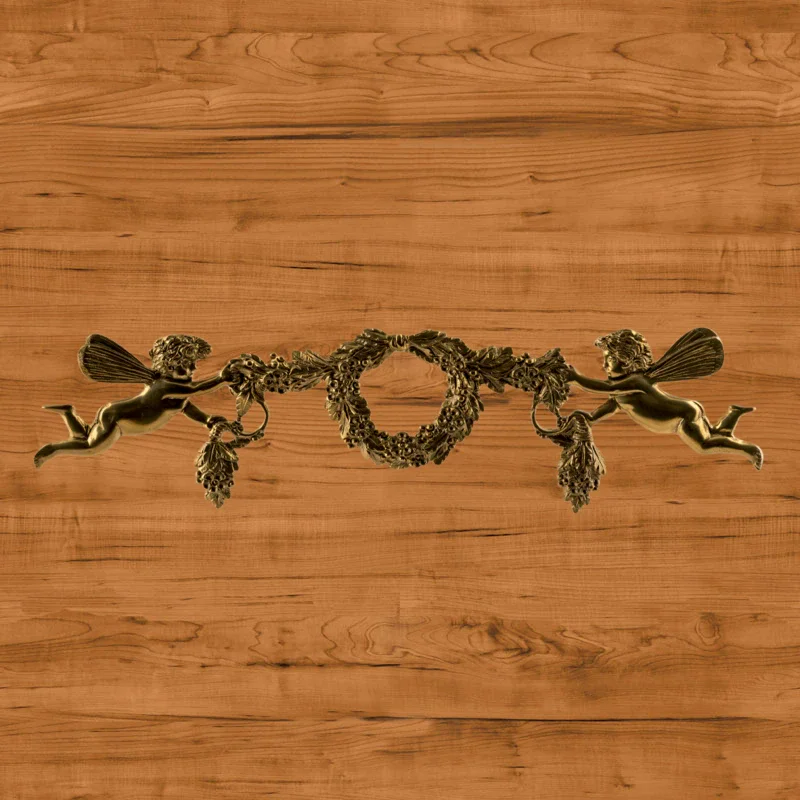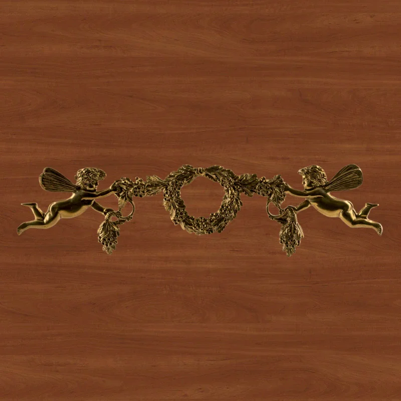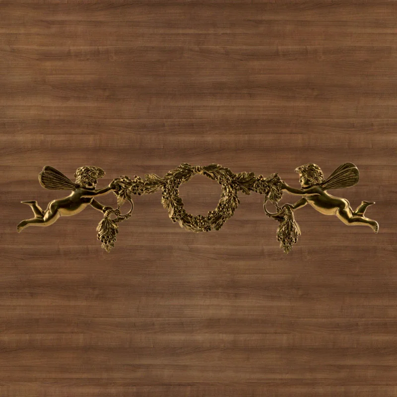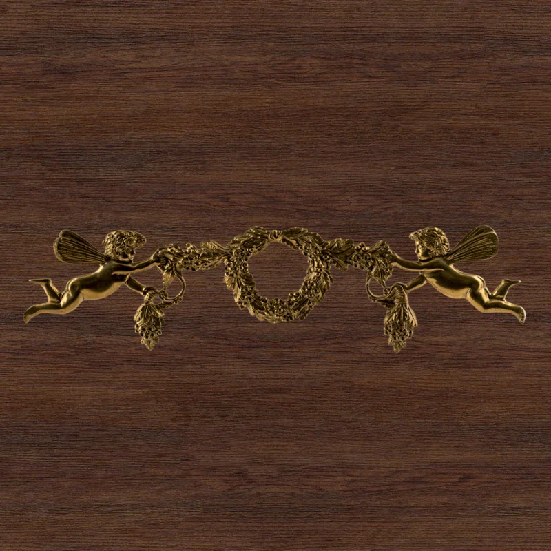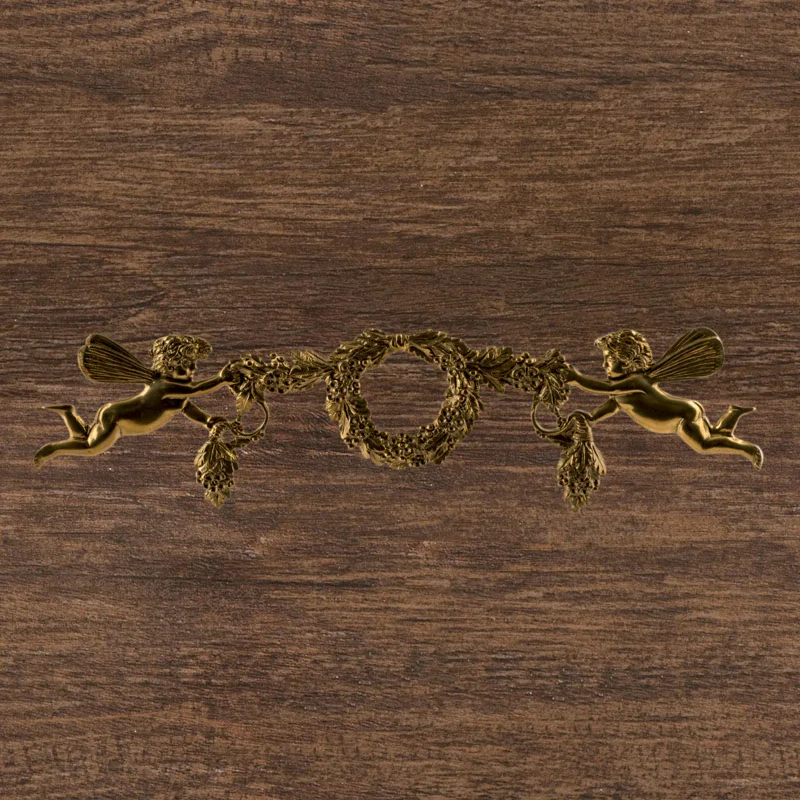 Декоративная накладка из латуни с двумя купидонами и венком Ф5781