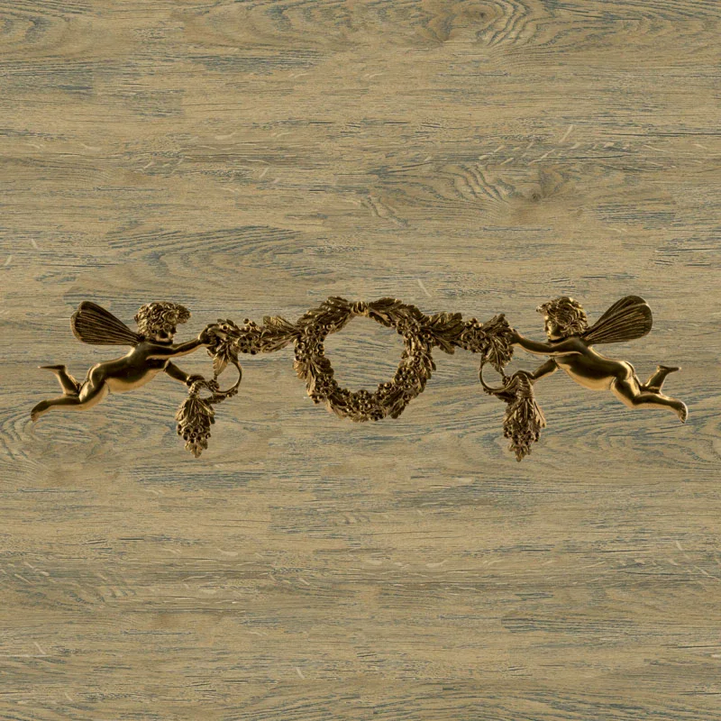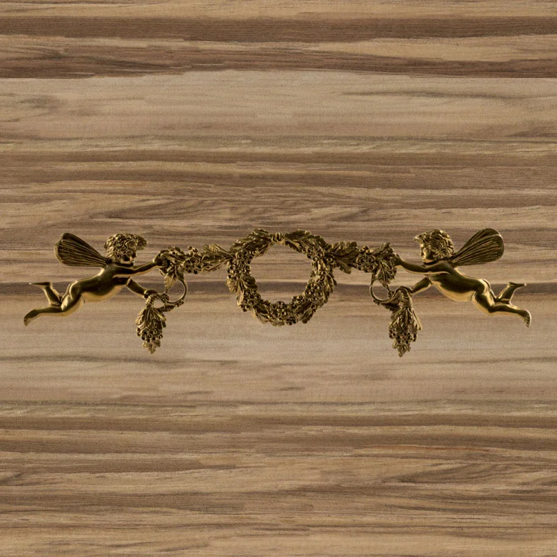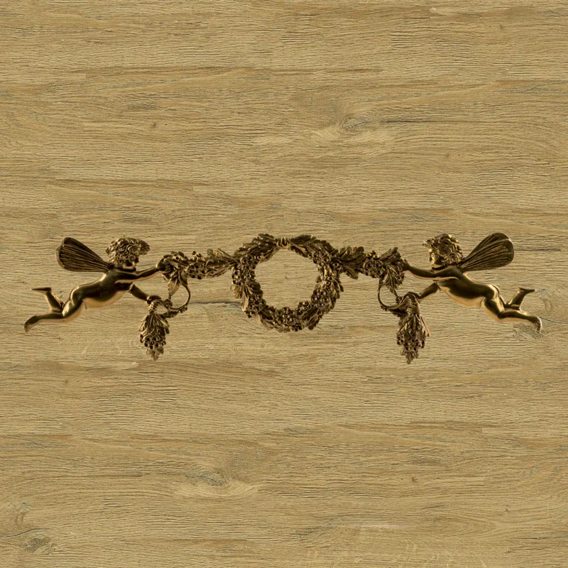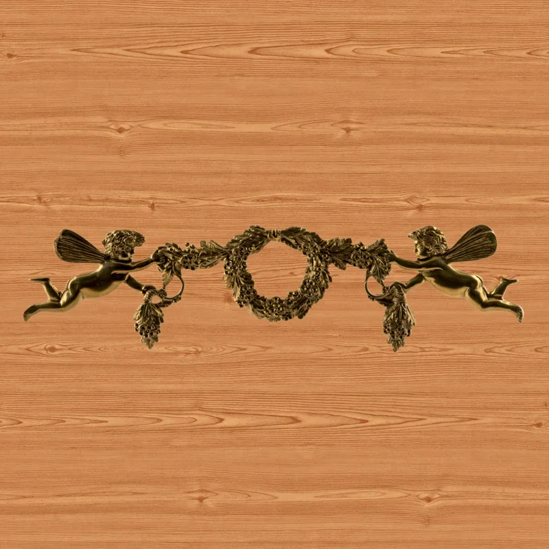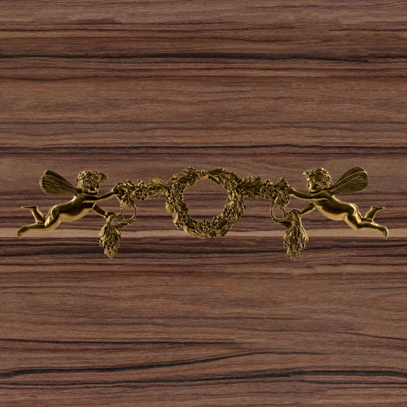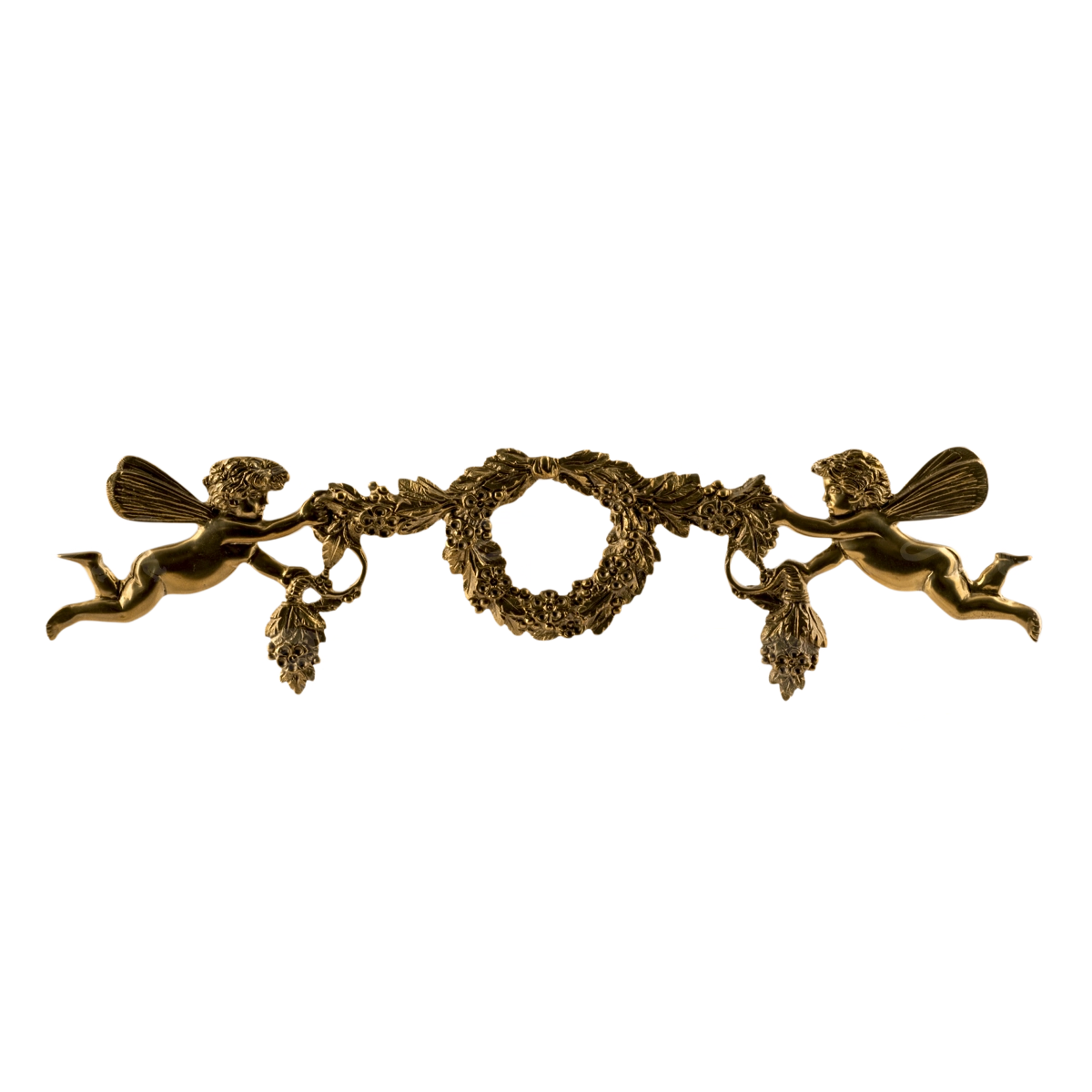 Декоративная накладка из латуни с двумя купидонами и венком Ф5781