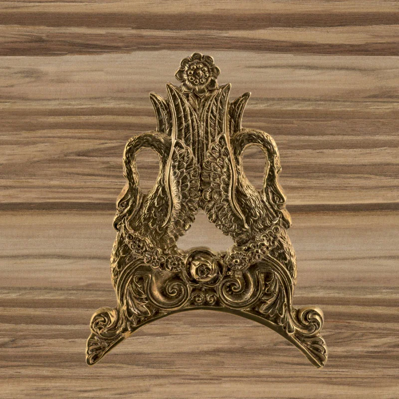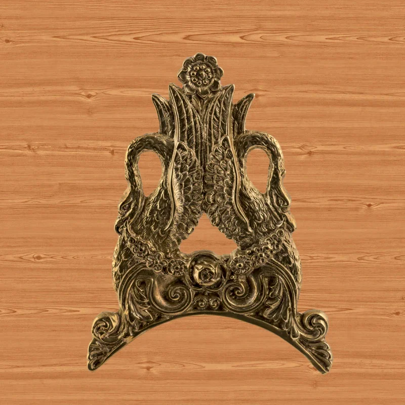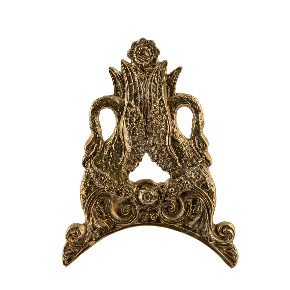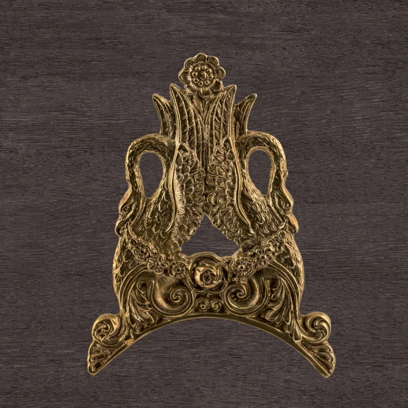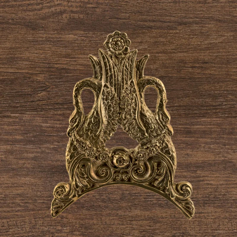 Декоративная накладка из латуни в виде двух птиц с орнаментом Ф4106