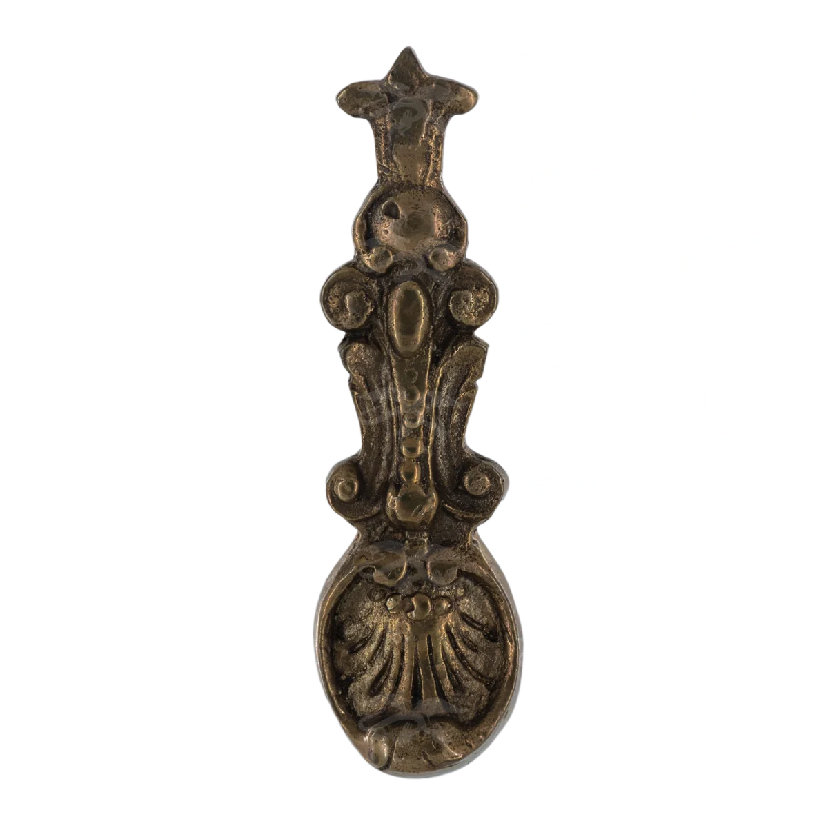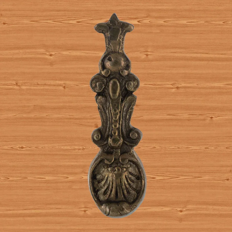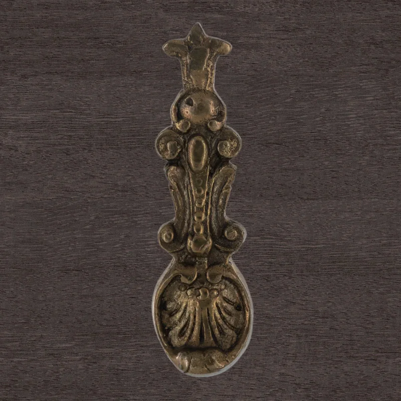Декоративная накладка, изготовленная из латуни, может стать образцом для вашей новой мебельной фурнитуры. Уникальная работа в стиле барокко выполнена по технологии бронзового литья. В оформлении можно увидеть изящный растительный узор и жемчужную нить. Возможно создание накладок по предоставленным эскизам – они будут готовы в срок от трех недель.