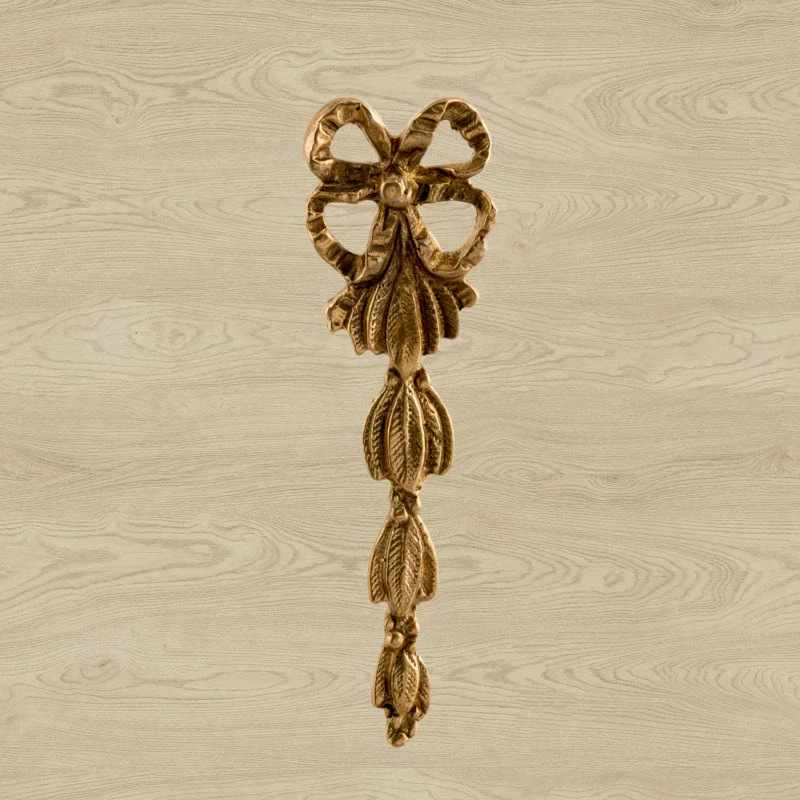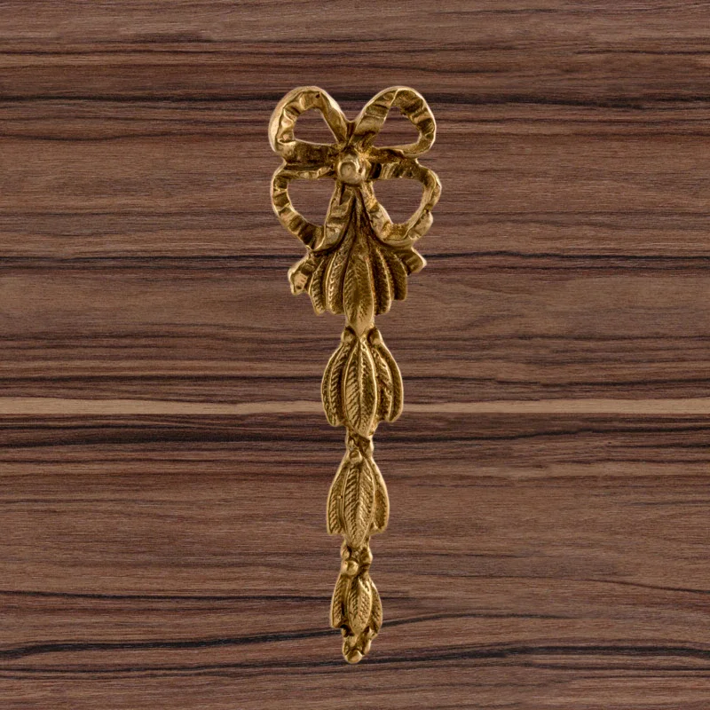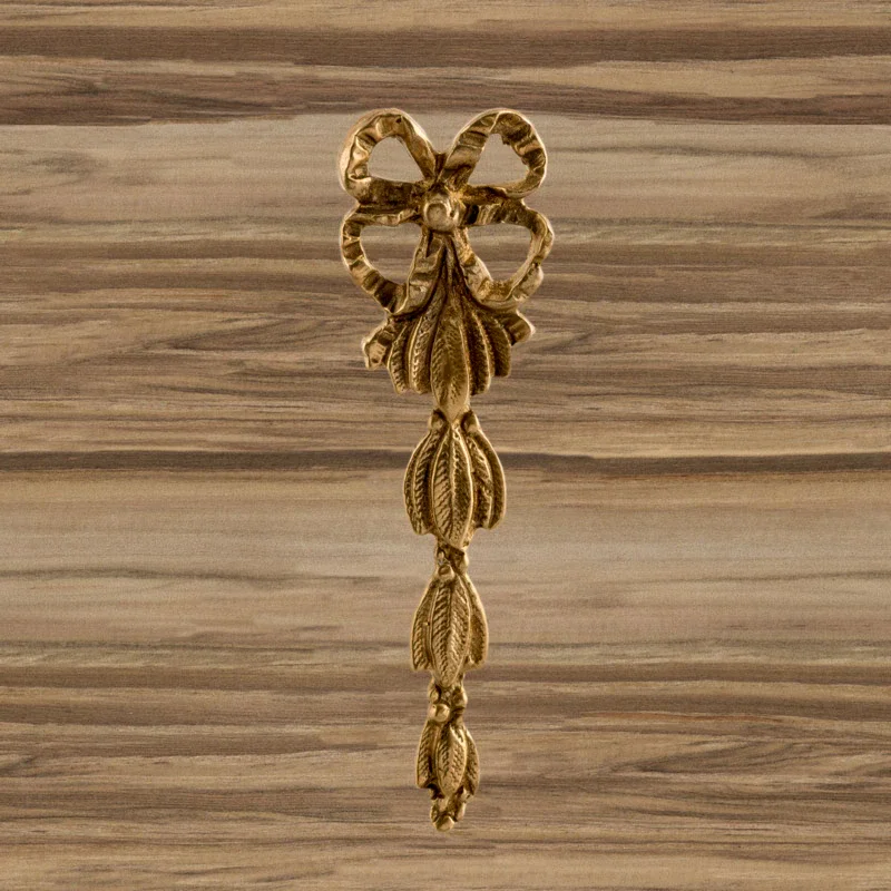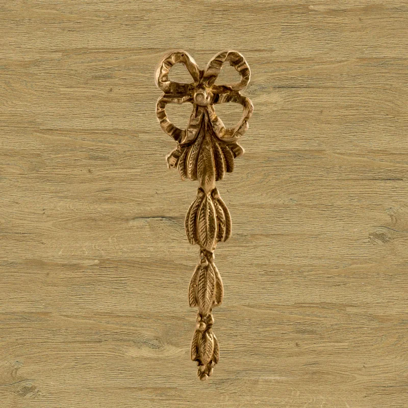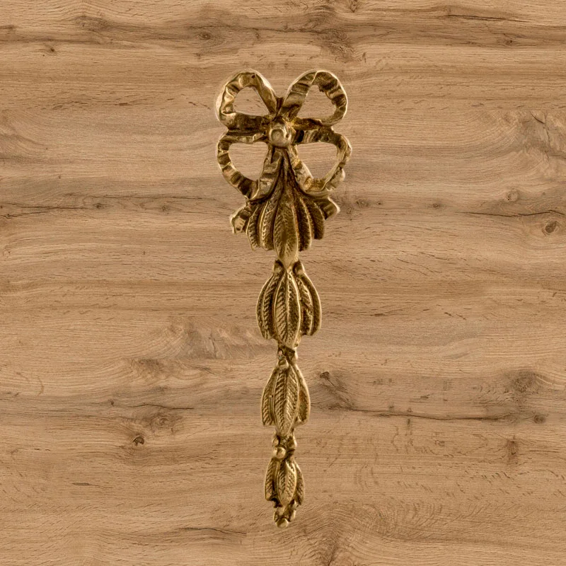 Декоративная накладка из латуни в виде банта с листьями для мебели Ф3896