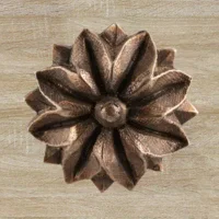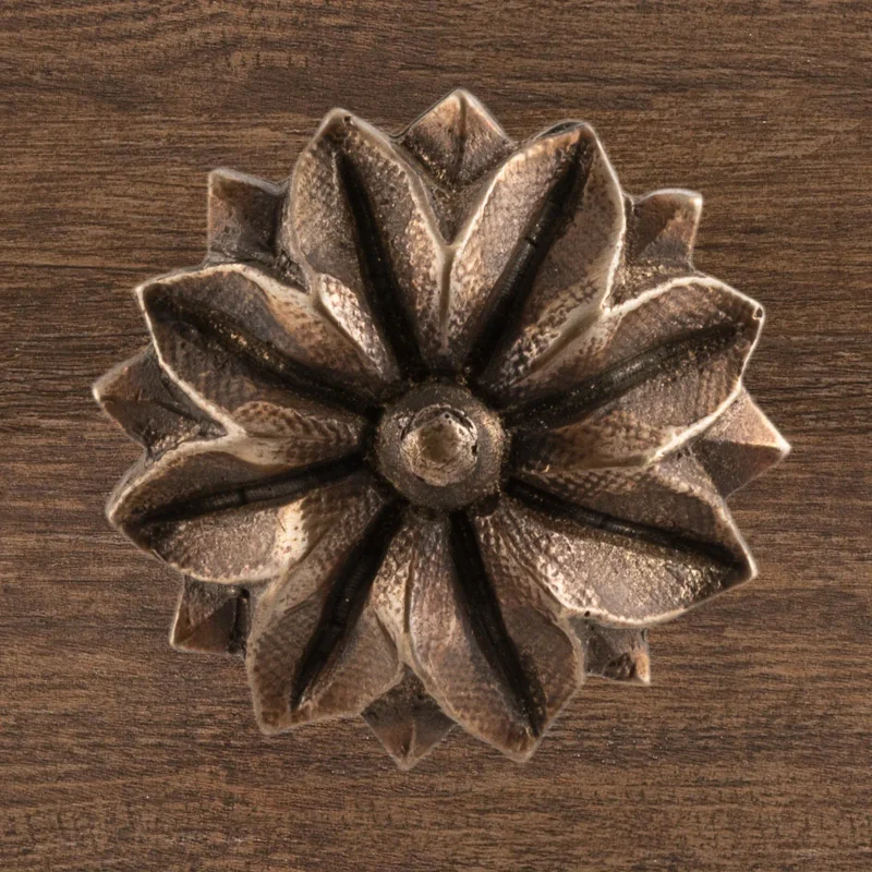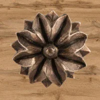Мастерская «Калежа» изготавливает оригинальную фурнитуру для мебели, используя в качестве материала латунь. Декоративная накладка в виде цветка может быть источником идей оформления для новых работ. Бронзовое литье позволило здесь получить сложный, но симметричный растительный узор. Наши мастера создают уникальные аксессуары в течение трех недель, также возможно использование эскизов заказчика.