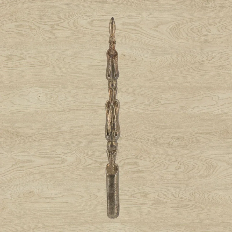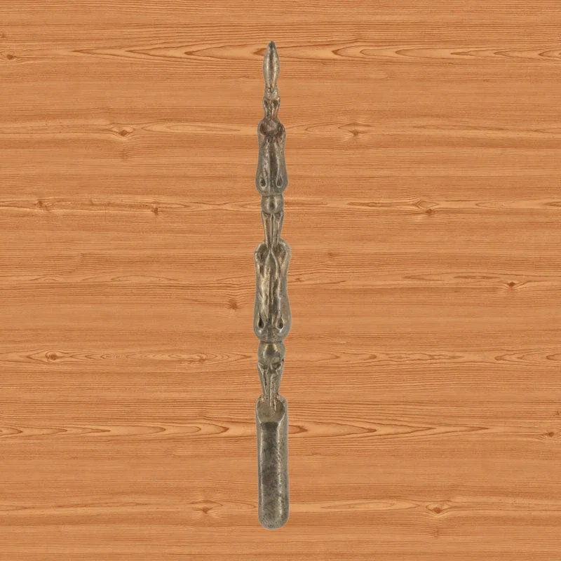 Мастерская «Калежа» изготавливает декоративные элементы для мебели в стиле барокко. Для оформления фурнитуры характерны грандиозность, динамика и эффектные дизайнерские приемы. Все детали выполнены с помощью бронзового литья из латуни. Наши мастера создают мебельный декор по этому образцу всего за три недели. Возможна работа по предоставленным эскизам.