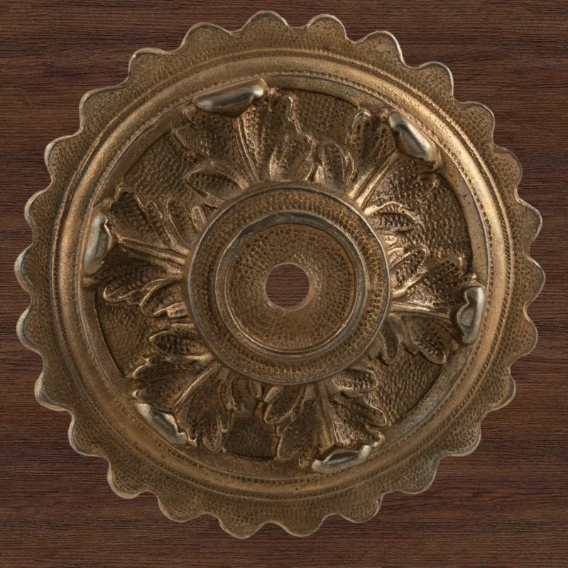 Мастерская «Калежа» изготавливает литые декоративные накладки в течение трех недель. С помощью этих элементов можно сделать оформление дома завершенным и неповторимым. Они помогают исправить несовершенства интерьера и органично вписать в него мебель. Изделия из латуни безупречно сочетаются с разнообразными ручками, уголками, входной дверью и мебельными ножками. Для закрепления накладных элементов используют гвоздики, шпильки или клей.