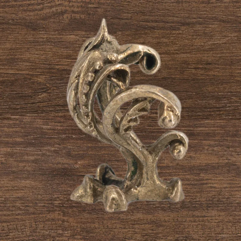 Мастерская «Калежа» изготовила уникальную волюту с наложенной веткой. Для оформления оригинальной мебельной фурнитуры характерны пышность, декоративность, эффектность и отсутствие строгих правил. Работа выполнена из латуни, а в качестве основной технологии применялось художественное литье. Воспользовавшись представленной идеей, вы можете заказать декоративные элементы для создания интерьера в стиле барокко.