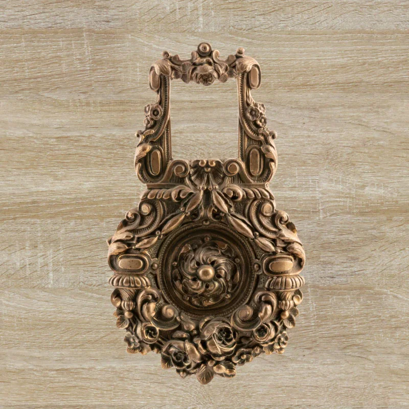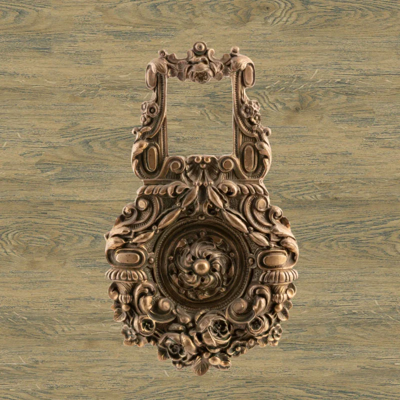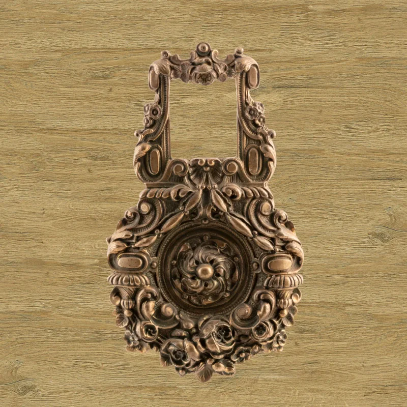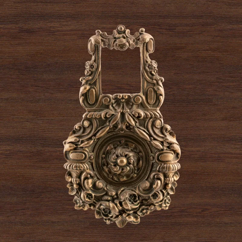 Мастерская «Калежа» изготавливает литые декоративные накладки в течение трех недель. С помощью этих элементов можно сделать оформление дома завершенным и неповторимым. Они помогают исправить несовершенства интерьера и органично вписать в него мебель. Изделия из латуни безупречно сочетаются с разнообразными ручками, уголками, входной дверью и мебельными ножками. Для закрепления накладных элементов используют гвоздики, шпильки или клей.