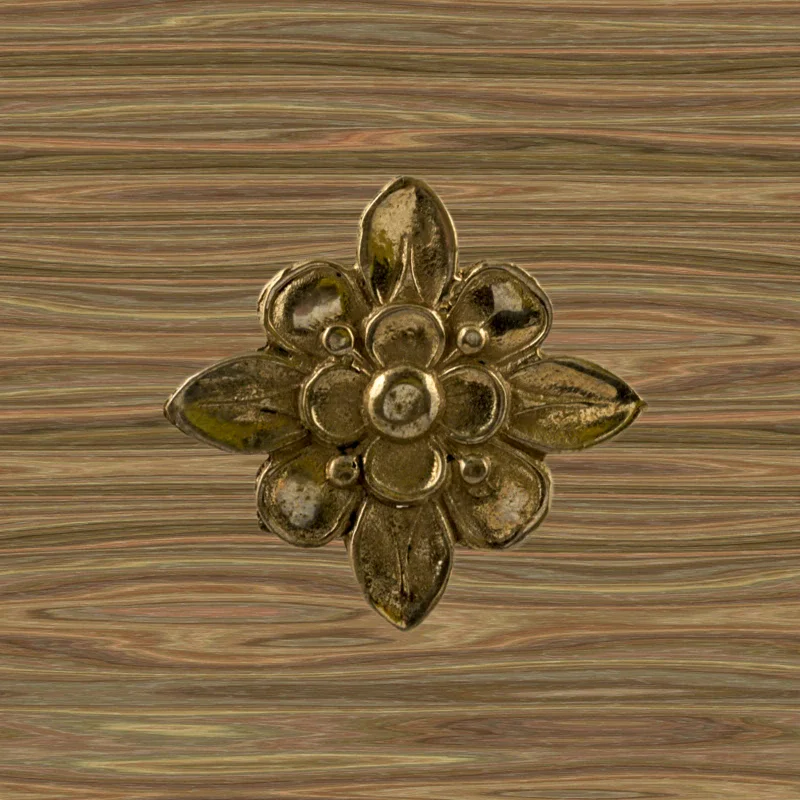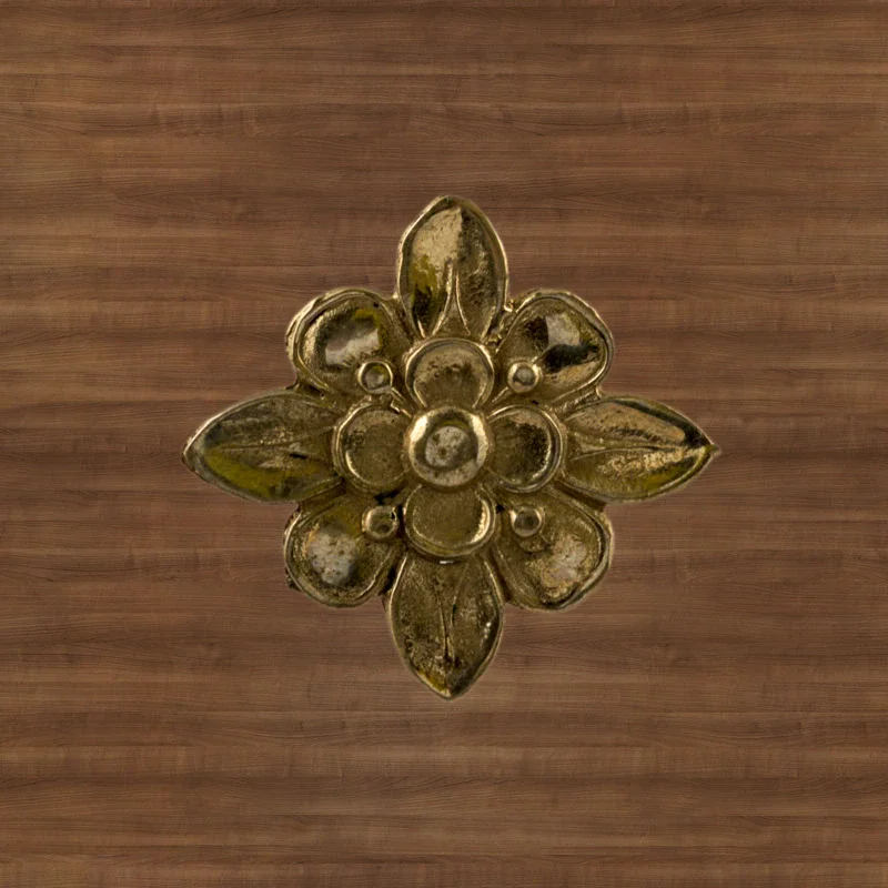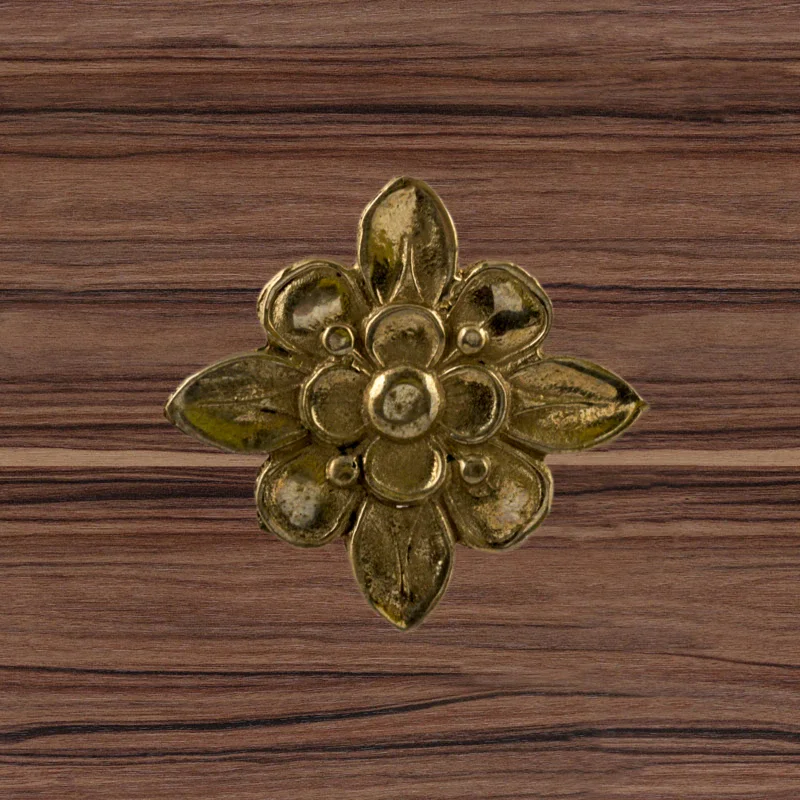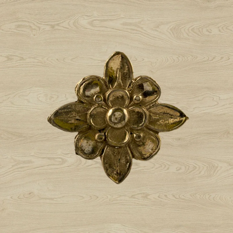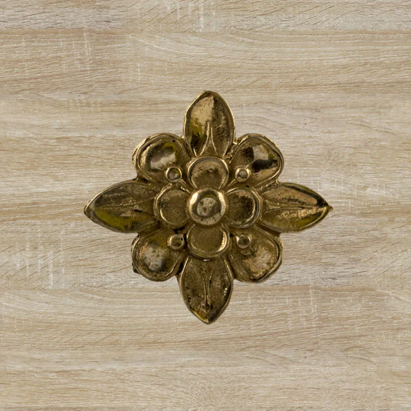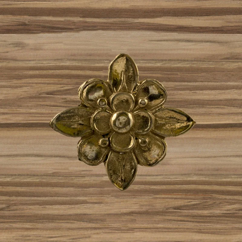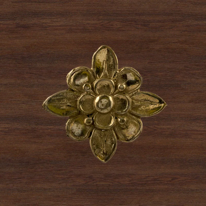 Декоративный элемент Ф901 в виде цветка делает оформление комнаты завершенным и неповторимым. При помощи элементов с лаконичным дизайном можно исправлять несовершенства, более органично вписывать мебель в существующий интерьер. Изделия из латуни безупречно сочетаются с разнообразными ручками, уголками, входной дверью и мебельными ножками. Для закрепления накладных элементов используют гвоздики, шпильки или клей.