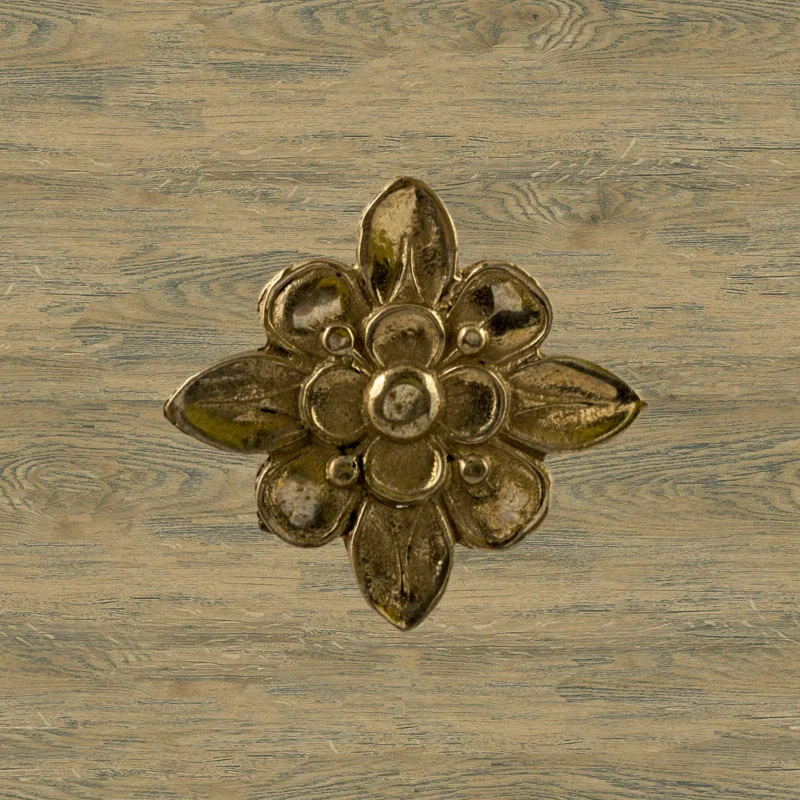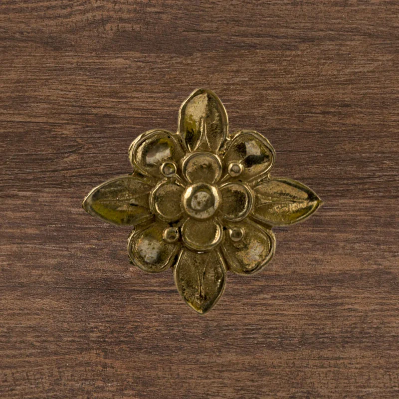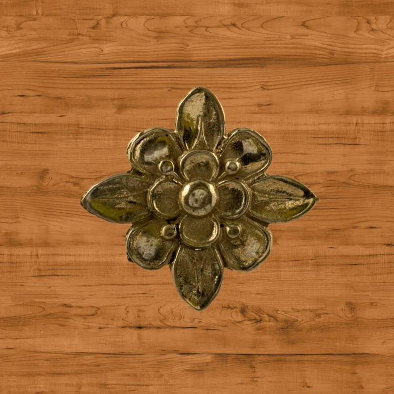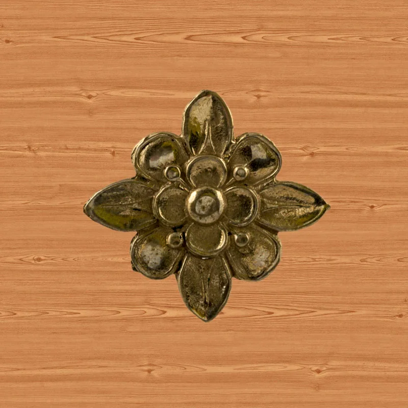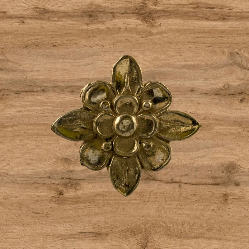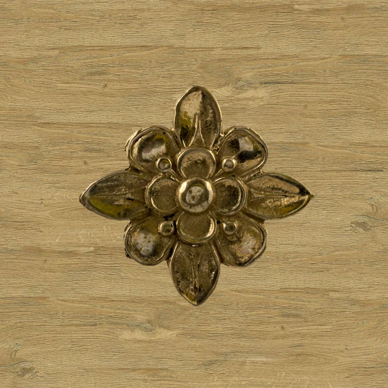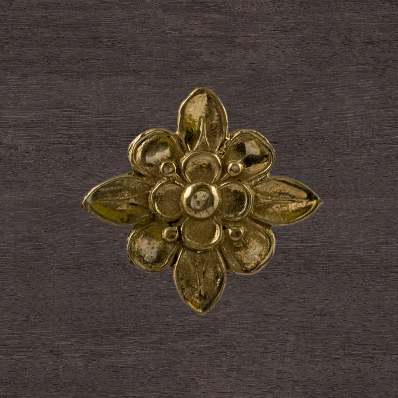 Декоративный элемент Ф901 в виде цветка делает оформление комнаты завершенным и неповторимым. При помощи элементов с лаконичным дизайном можно исправлять несовершенства, более органично вписывать мебель в существующий интерьер. Изделия из латуни безупречно сочетаются с разнообразными ручками, уголками, входной дверью и мебельными ножками. Для закрепления накладных элементов используют гвоздики, шпильки или клей.
