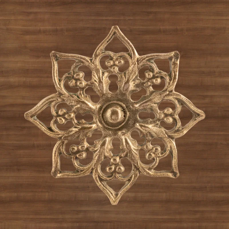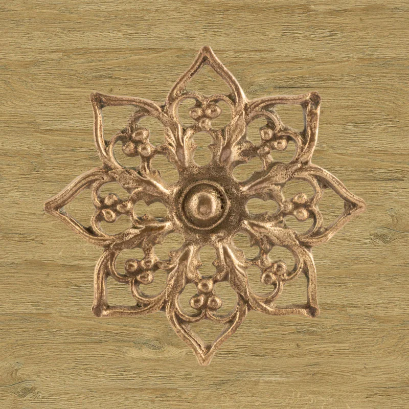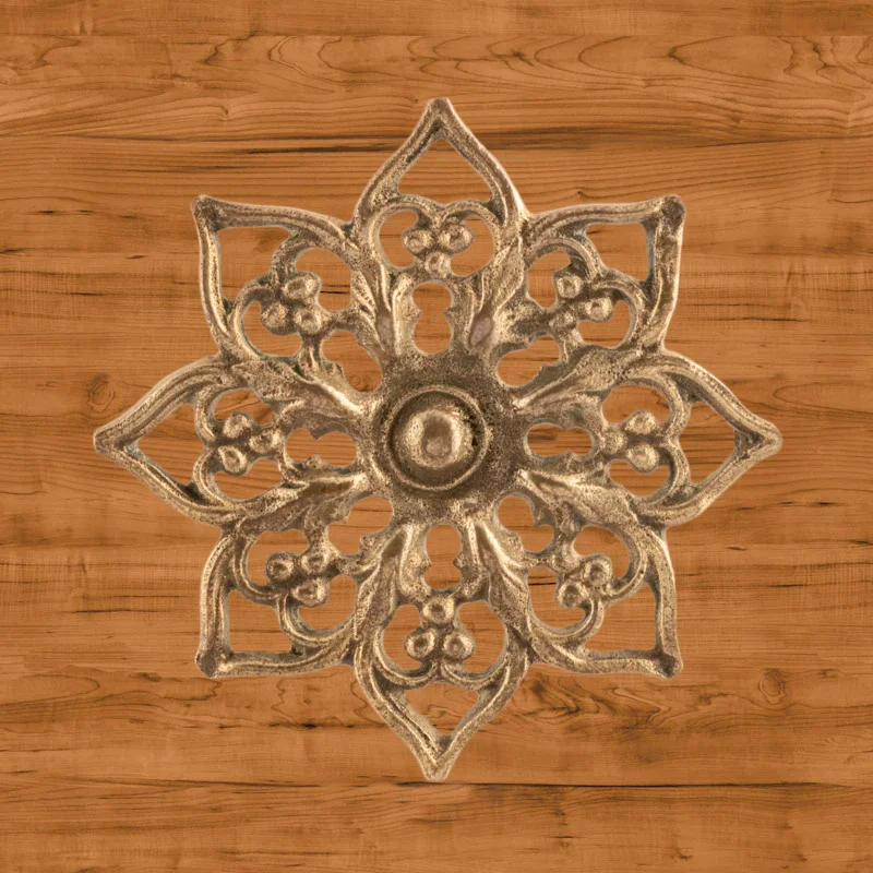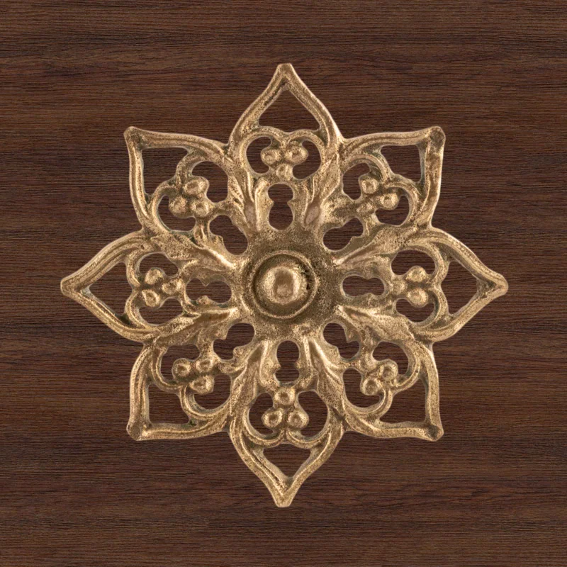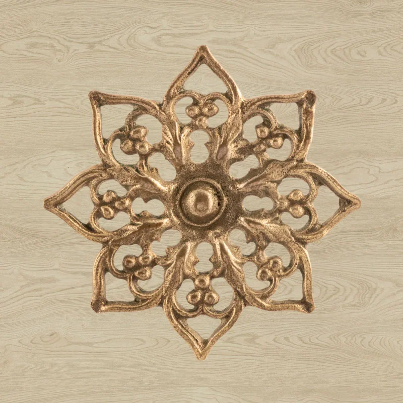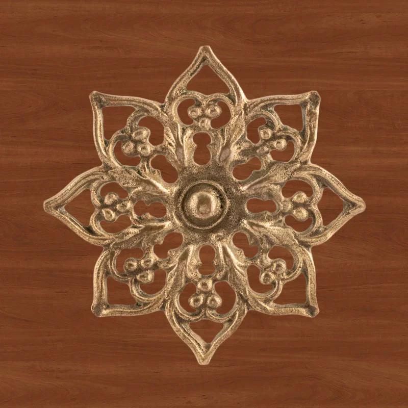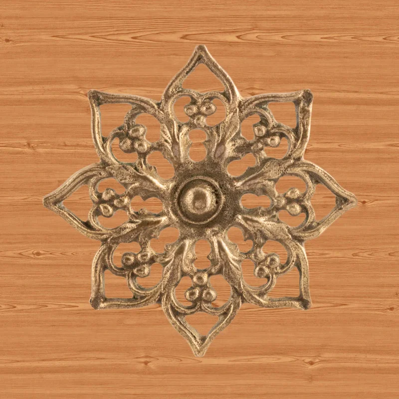 Восьмилистник с вставленными в лепестки полувалютами и наложенными цветками лилии.
