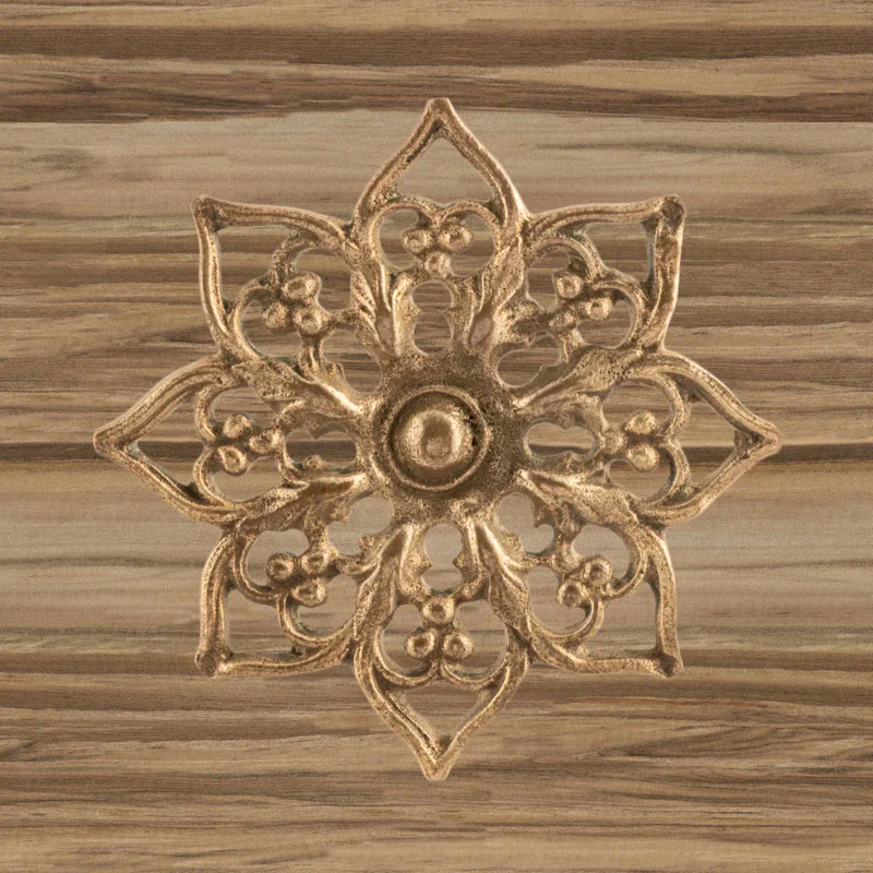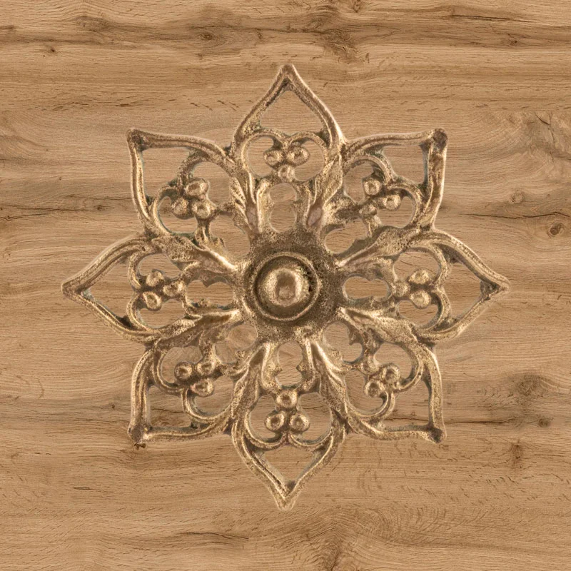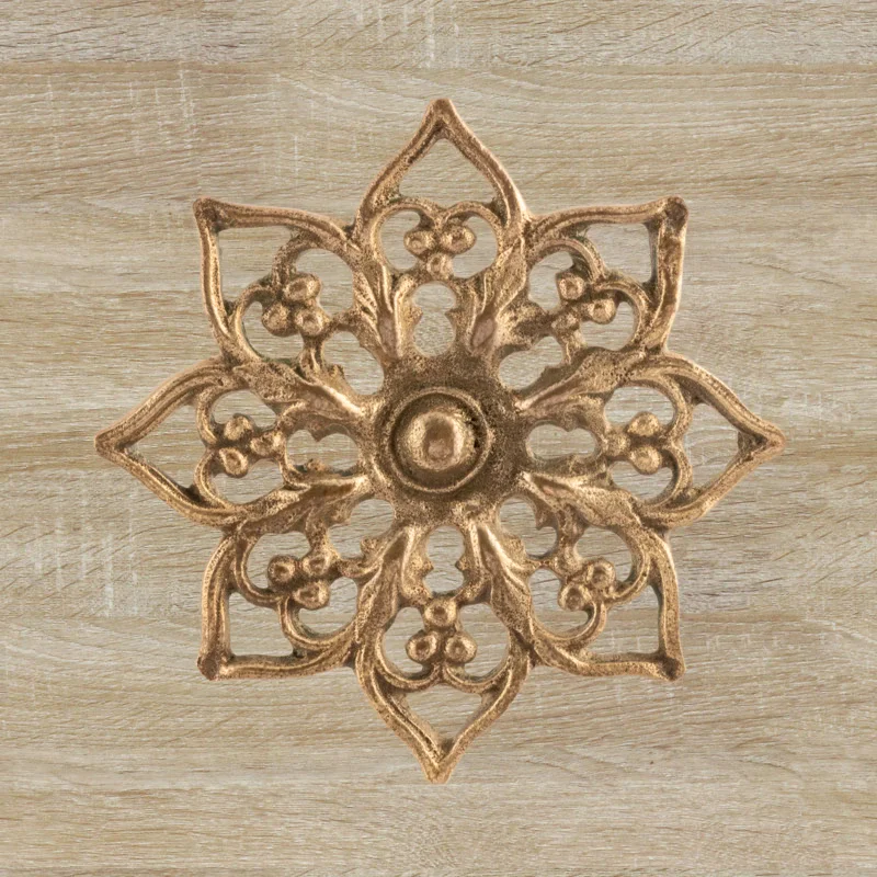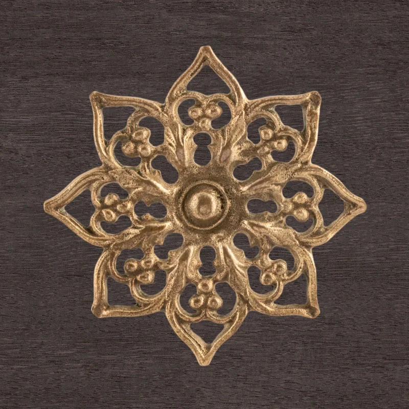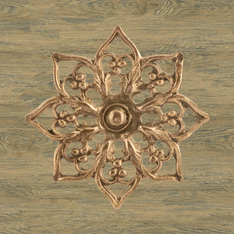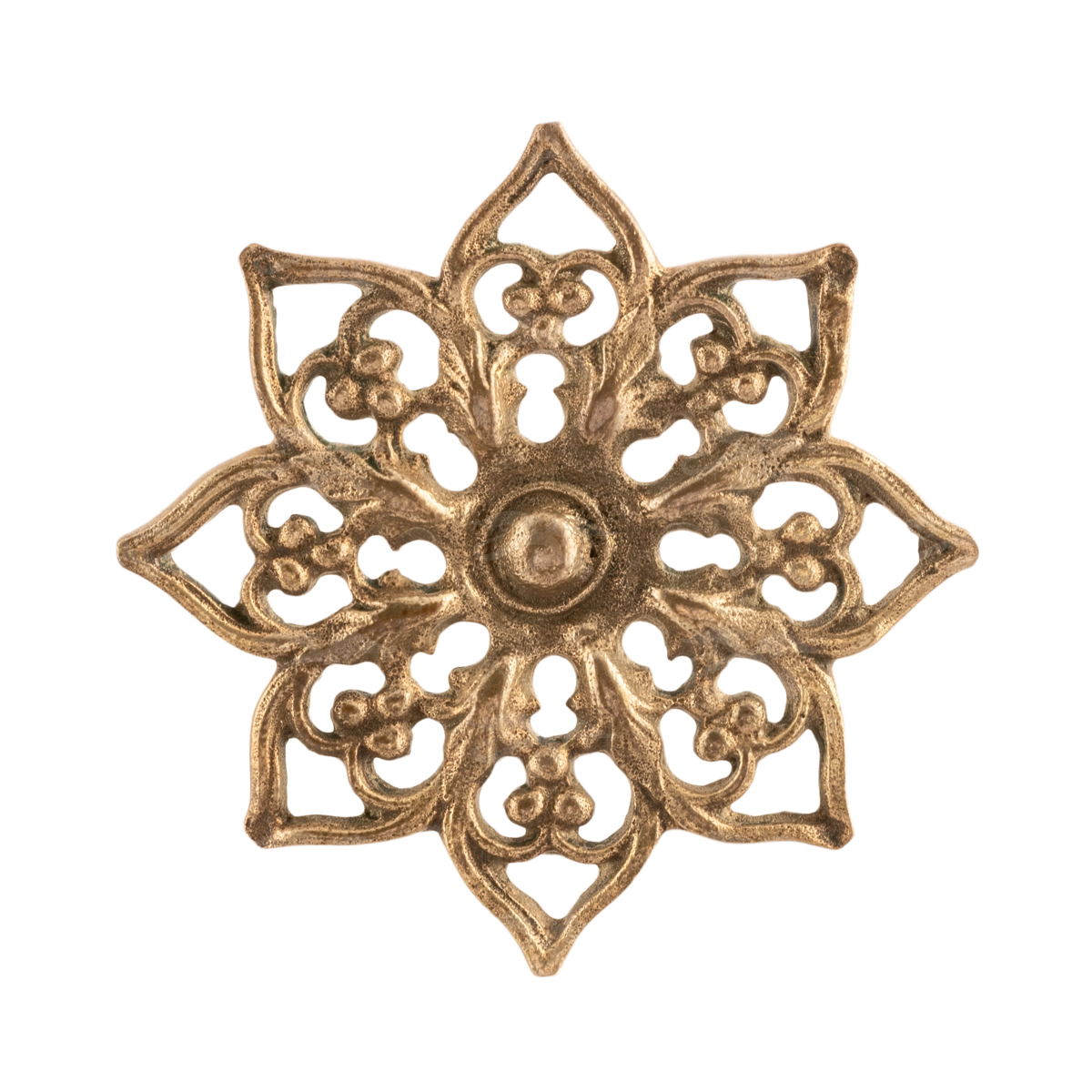 Восьмилистник с вставленными в лепестки полувалютами и наложенными цветками лилии.