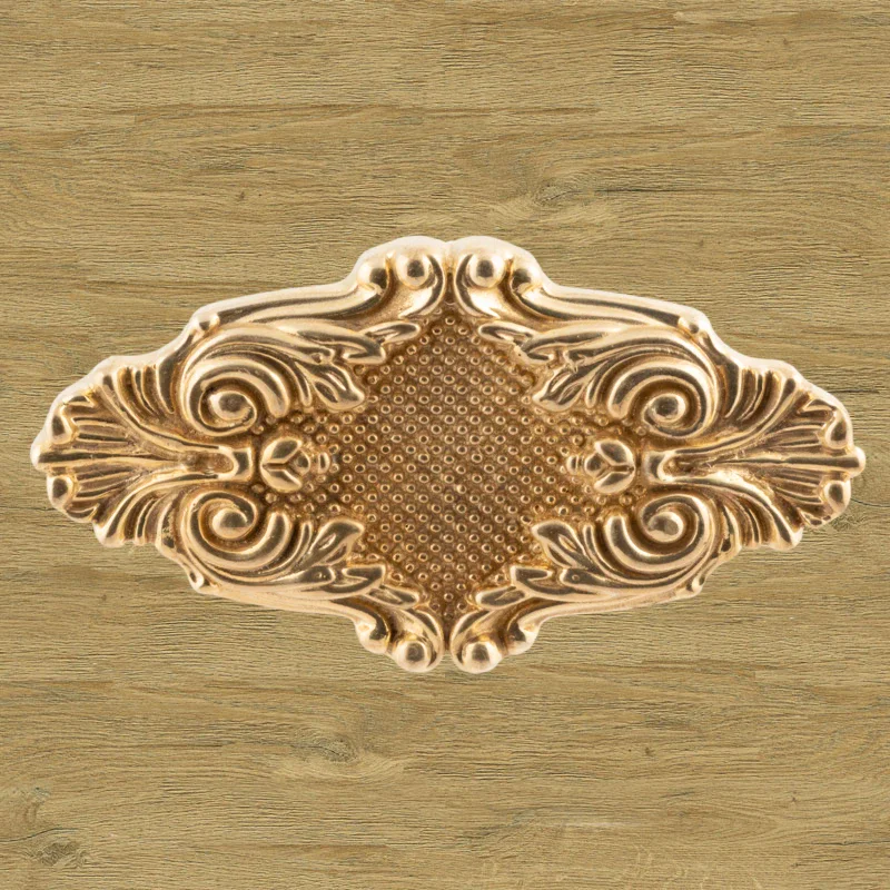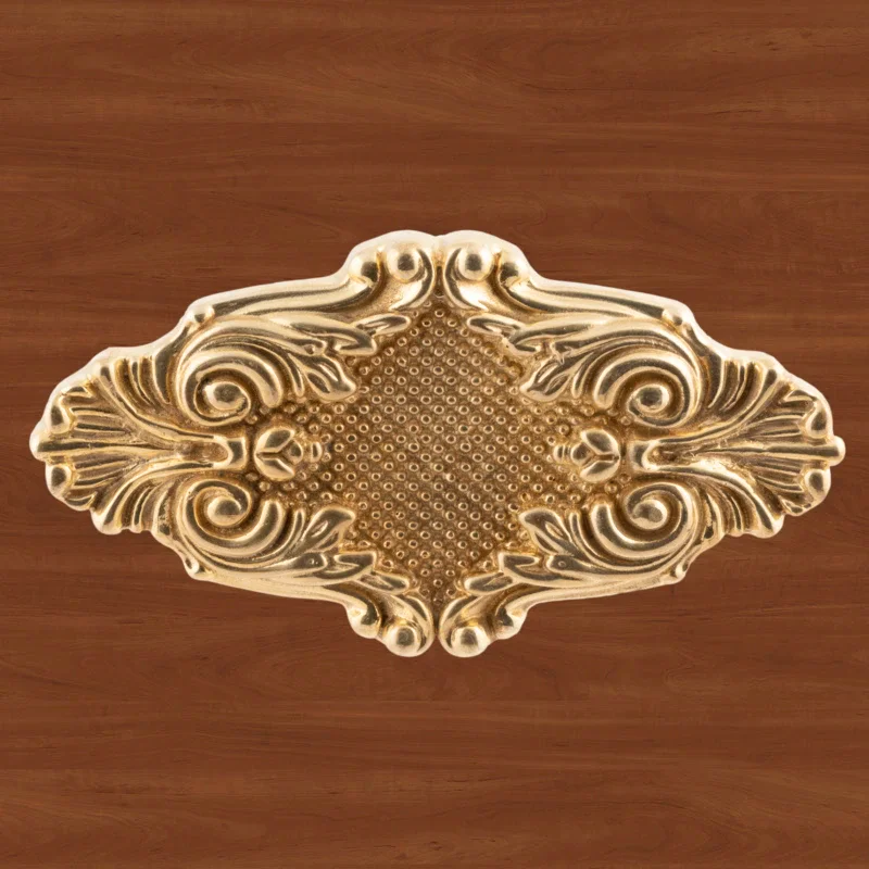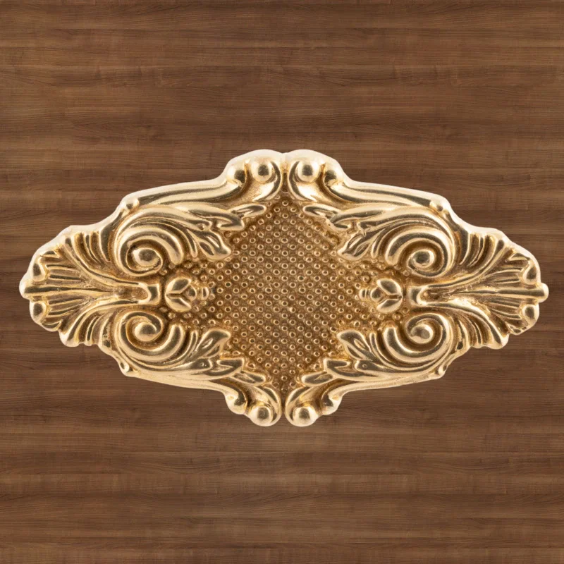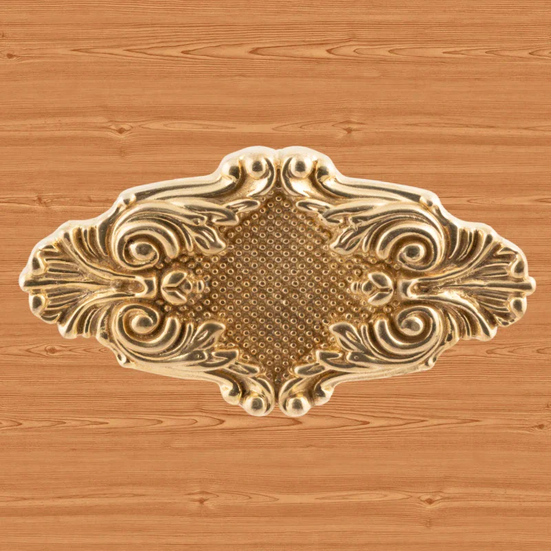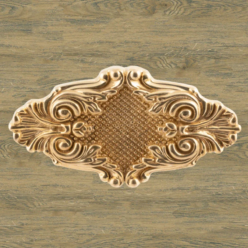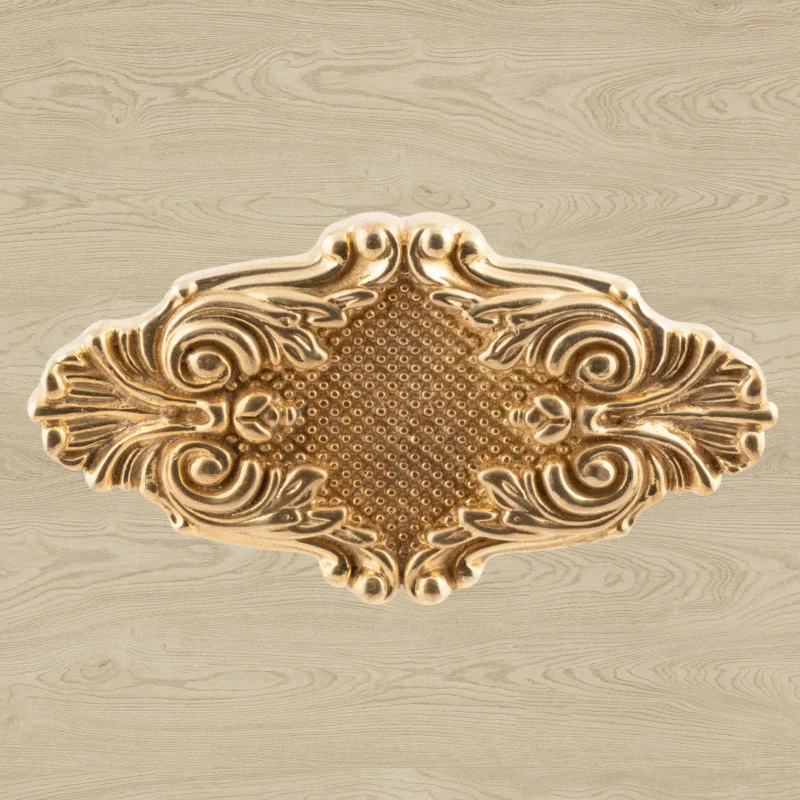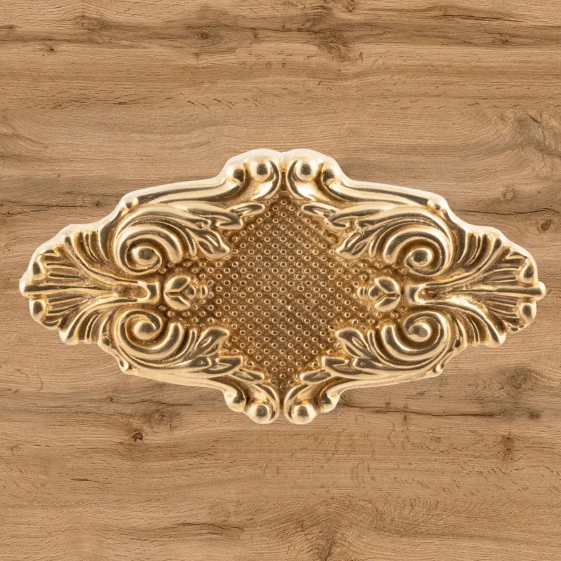 Декоративная накладка Ф5920 привлекает внимание за счет игры контрастов. Гладкие крупные завитки с ярким блеском соседствуют с рельефной поверхностью, полностью покрытой мельчайшими шариками. Присмотревшись, можно увидеть два крошечных цветочных бутона по бокам вставки. Мелкие детали делают яркий декор в классическом стиле более нежным, романтичным и воздушным.