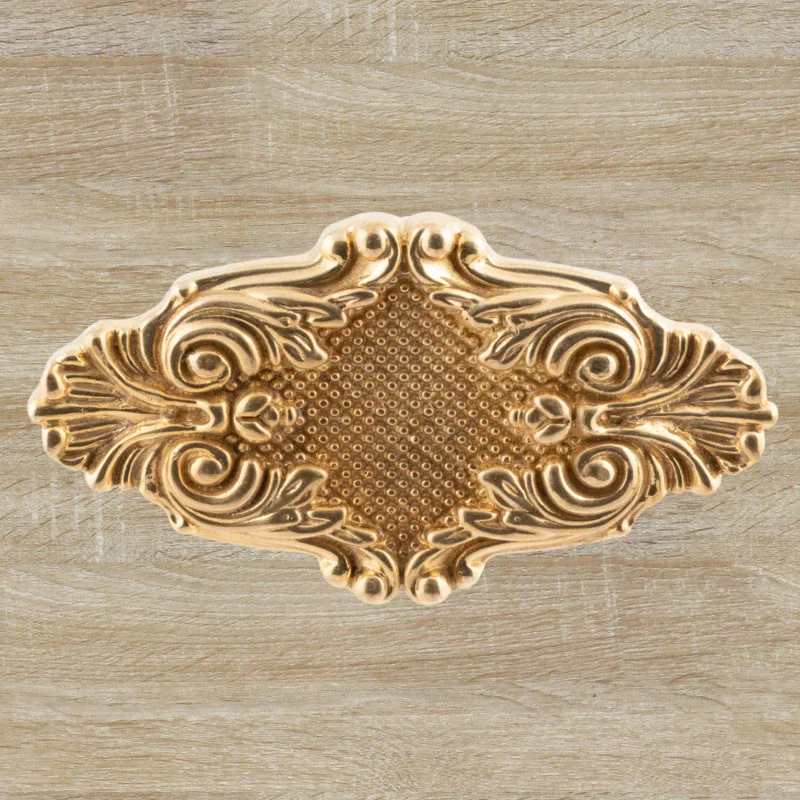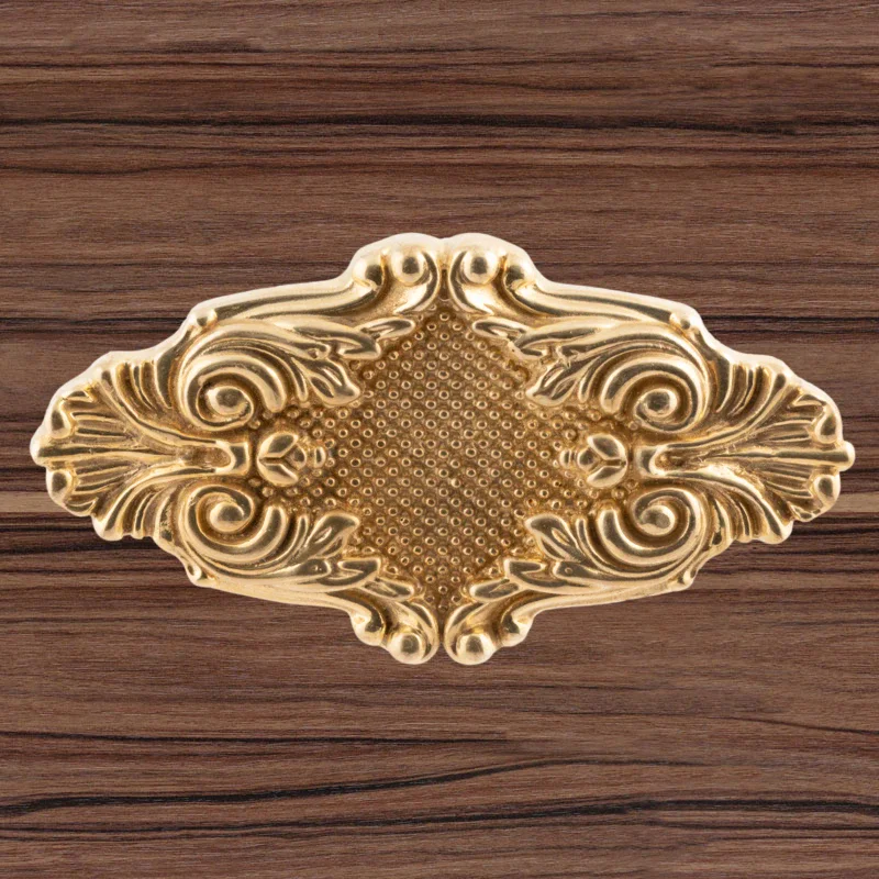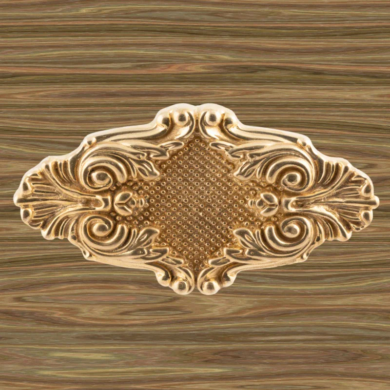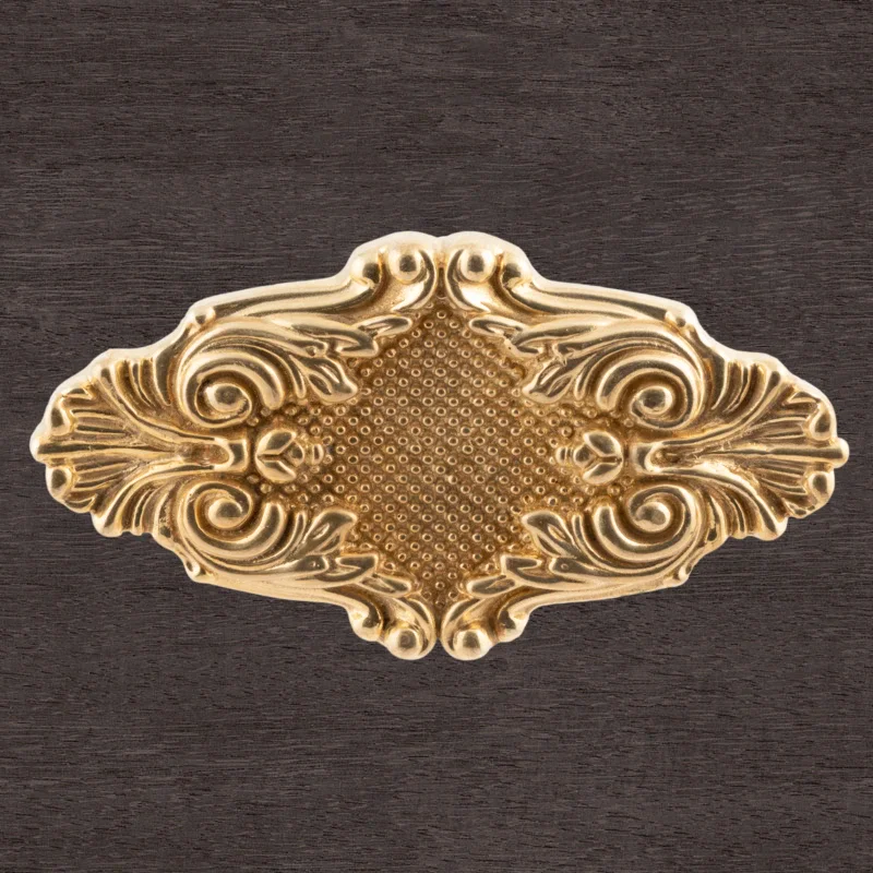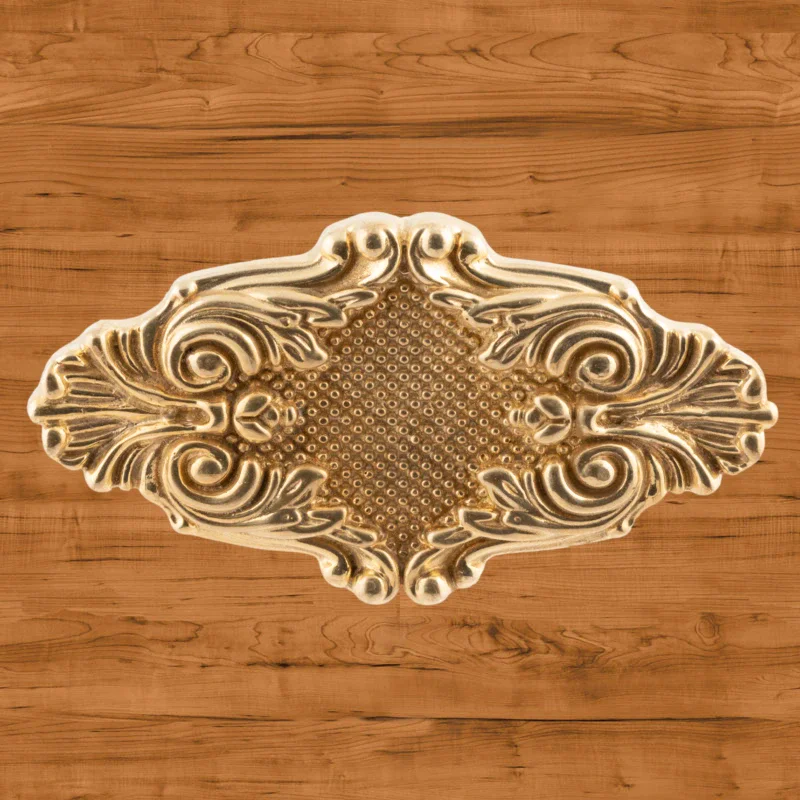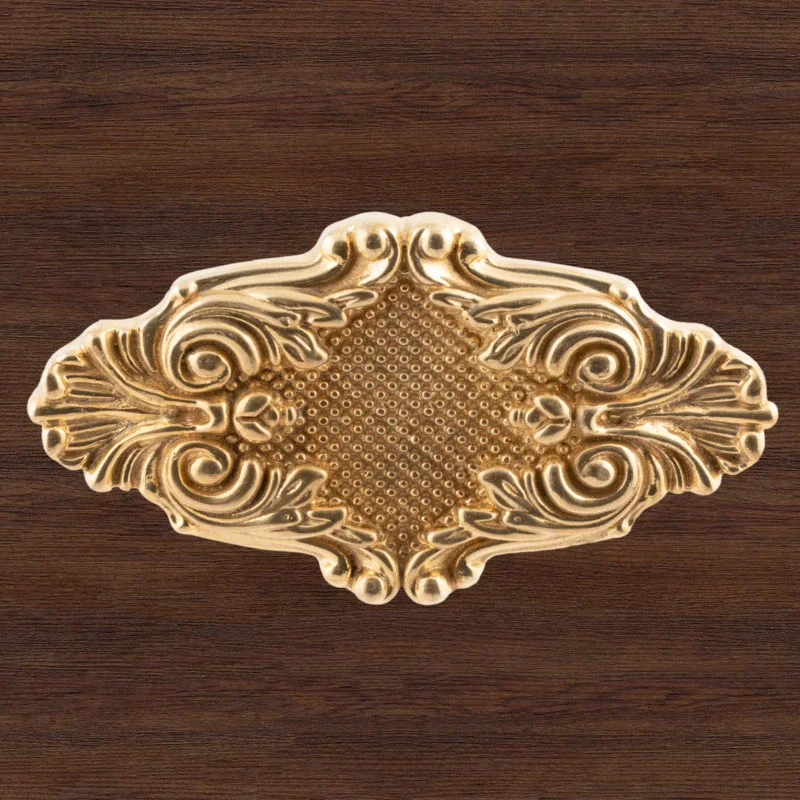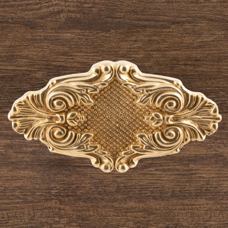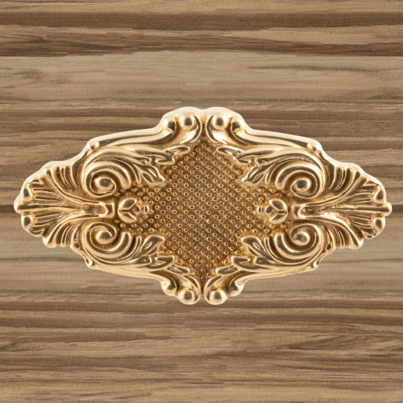 Декоративная накладка Ф5920 привлекает внимание за счет игры контрастов. Гладкие крупные завитки с ярким блеском соседствуют с рельефной поверхностью, полностью покрытой мельчайшими шариками. Присмотревшись, можно увидеть два крошечных цветочных бутона по бокам вставки. Мелкие детали делают яркий декор в классическом стиле более нежным, романтичным и воздушным.