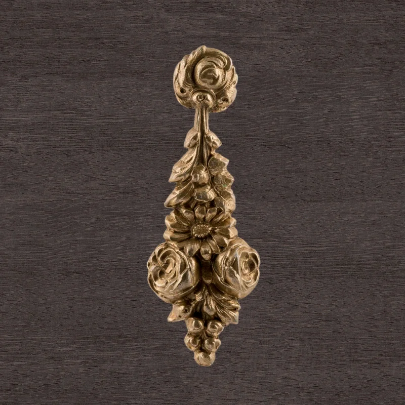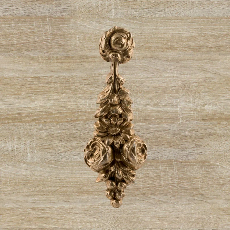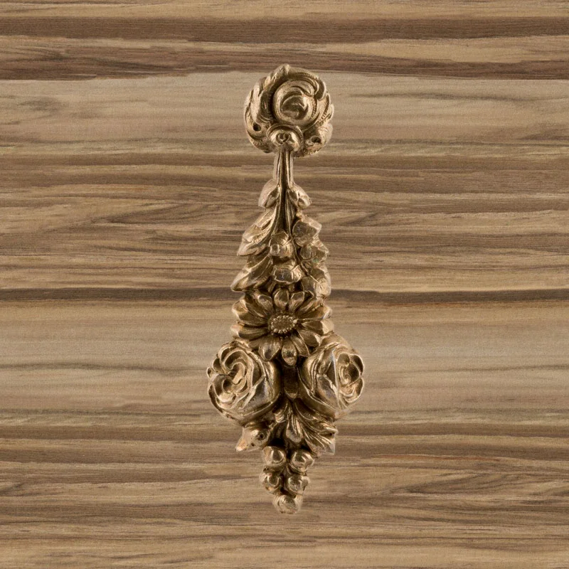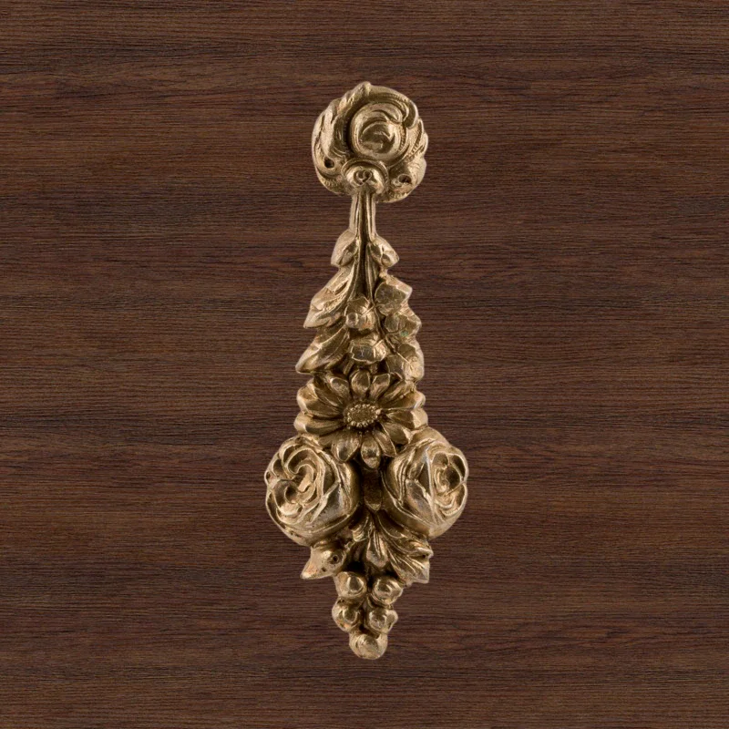 Художественно-производственная мастерская «Калежа» выполняет декоративные накладки из латуни. Они делают запорный механизм дверей эстетически привлекательным, маскируют отверстия под ключ. Представленная работа изготовлена с применением литья, она надежно защищает мебель от разрушения при активном использовании. Срок выполнения заказов – от трех недель. Наша компания также создает фурнитуру по эскизам клиентов.
