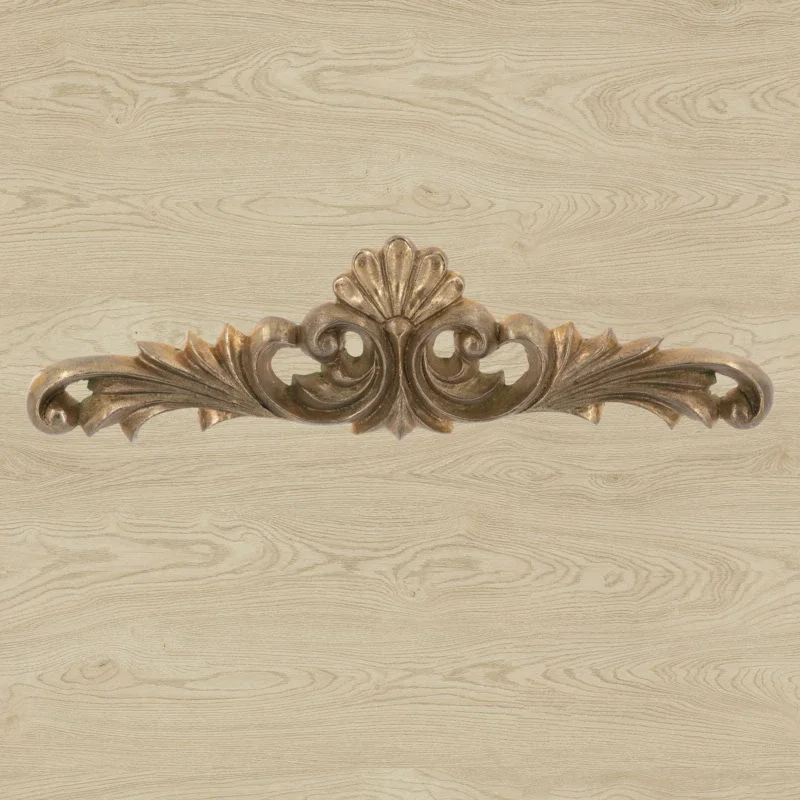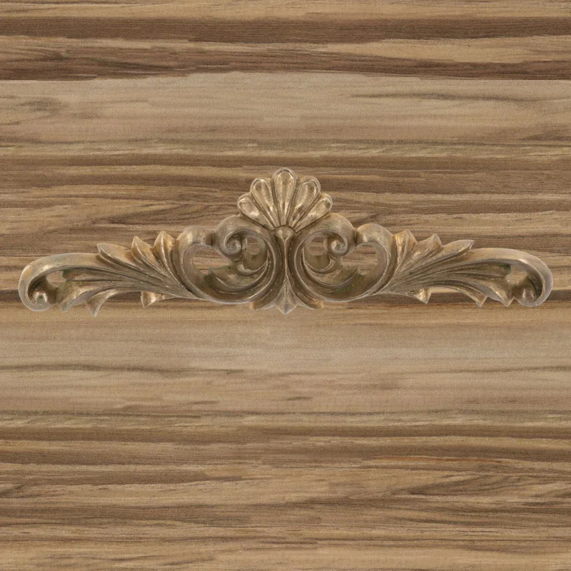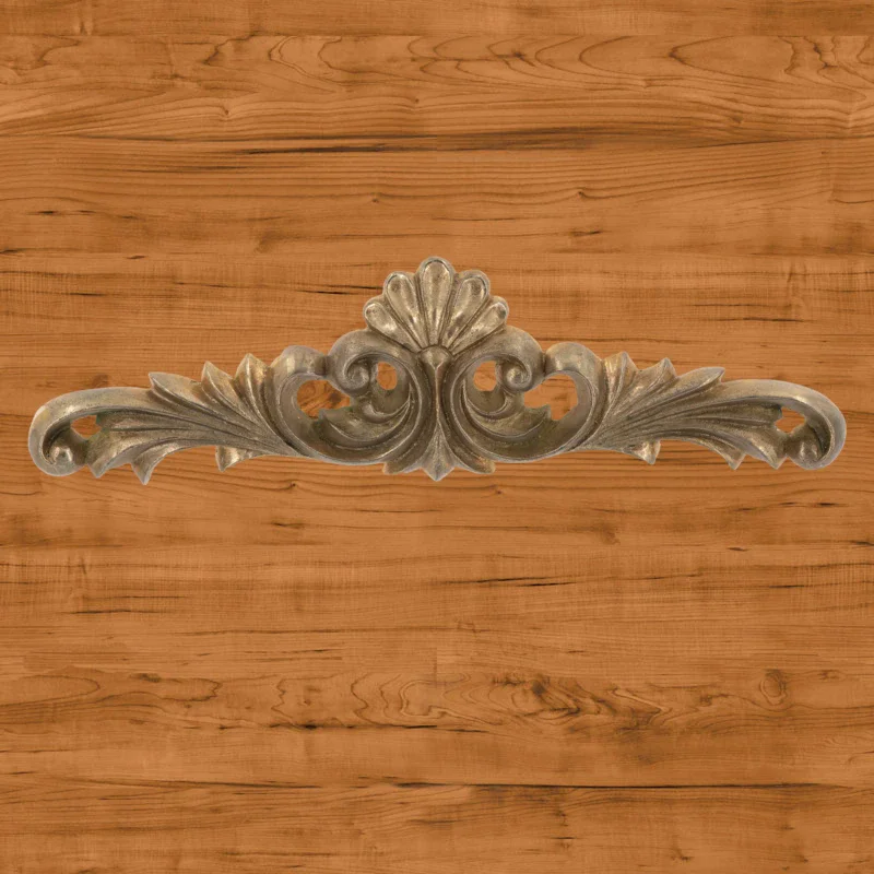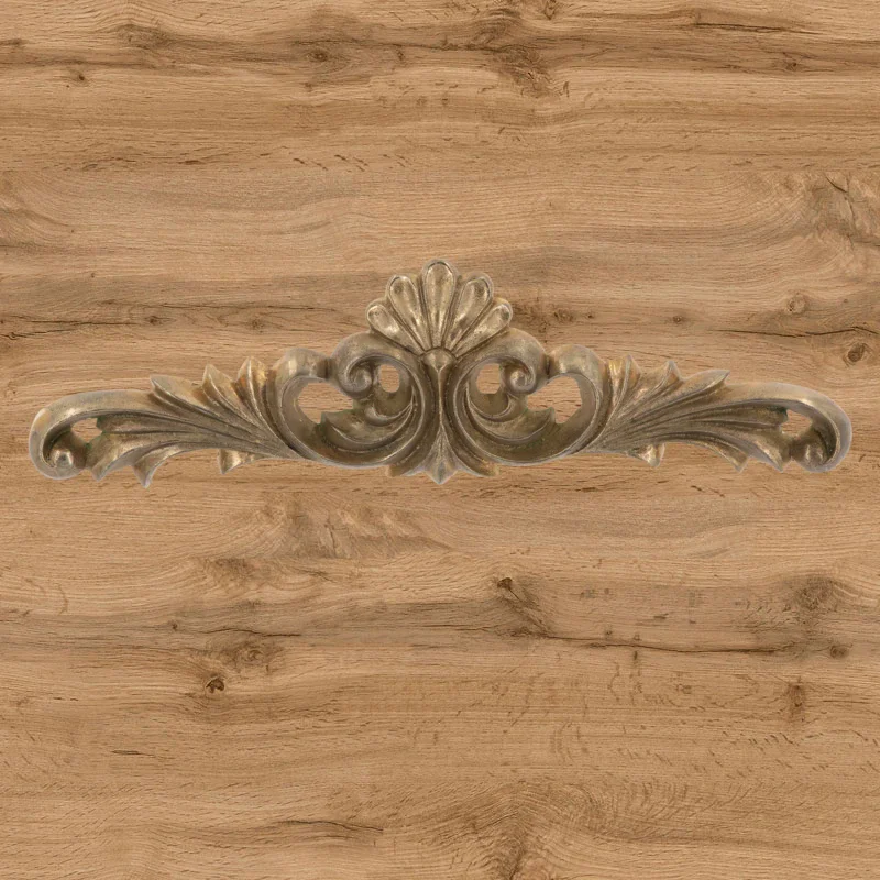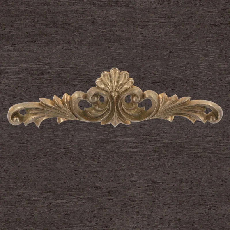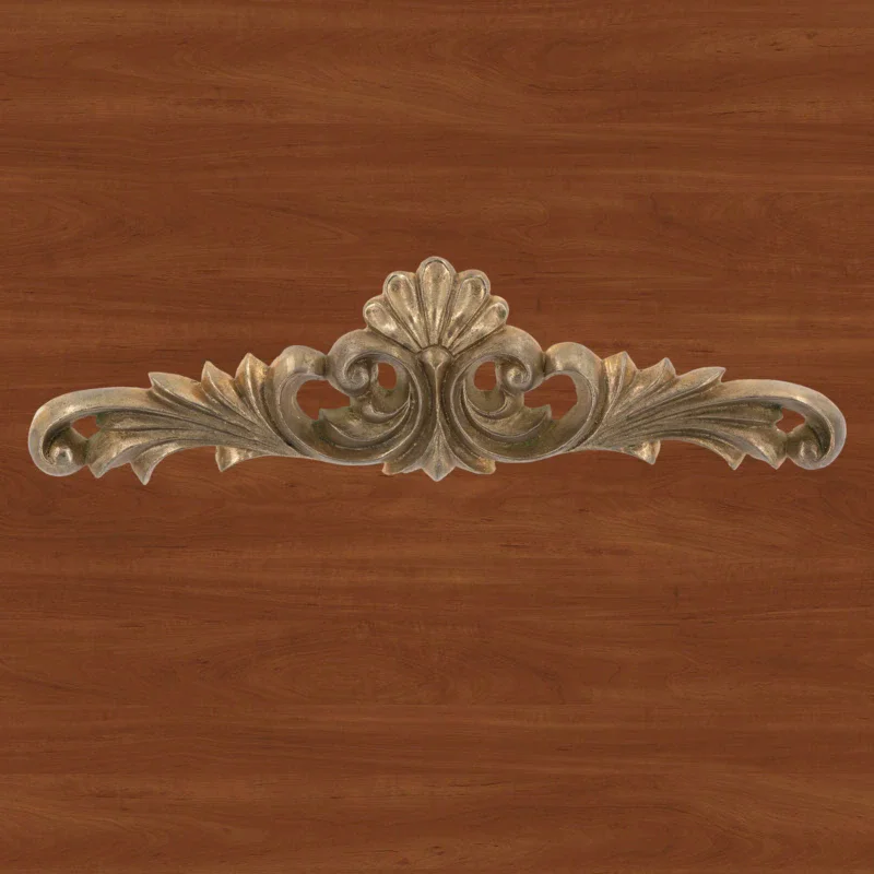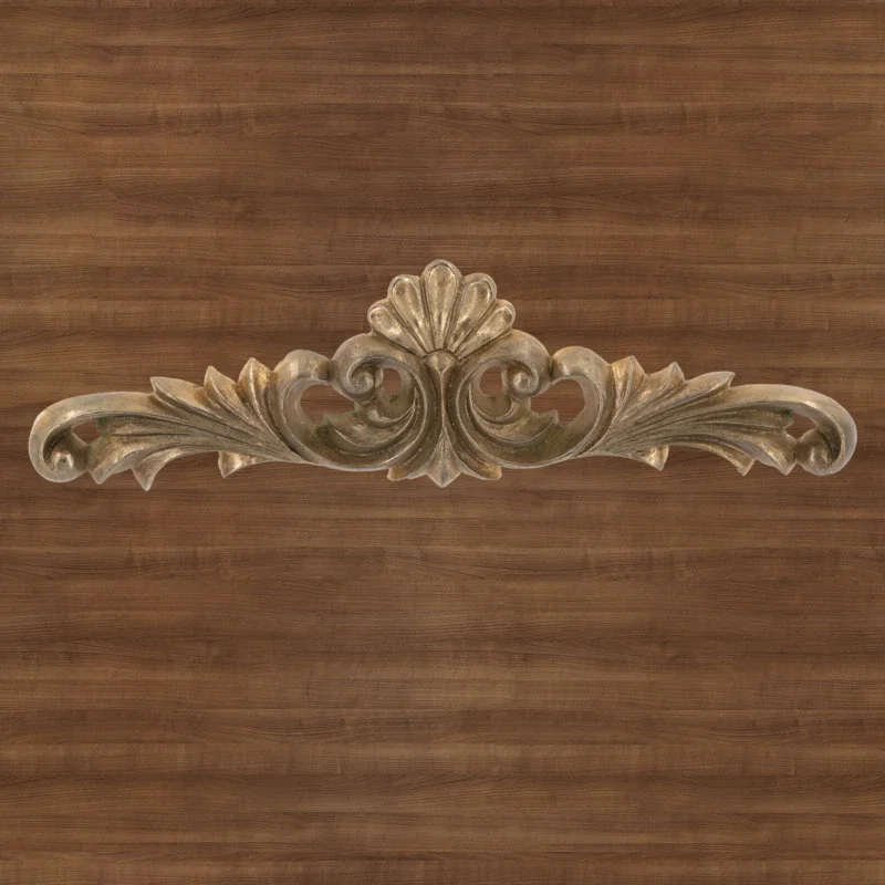 Мастерская «Калежа» предлагает купить декоративные элементы для мебели на заказ. Представленная фурнитура – пример мастерства наших специалистов.В дизайне присутствуют элементы барокко. Фриз выполнен из двух волнообразных валют. На его вершине расположена раковина. Блеск и четкая симметрия позволяют создать оригинальную композицию. Мебельныенакладки, выпущенные мастерской «Калежа», имеют высокую прочность и предназначены для многолетнего использования. По вашему желанию специалисты могут использовать новый узор, другую фактуру и т. д.