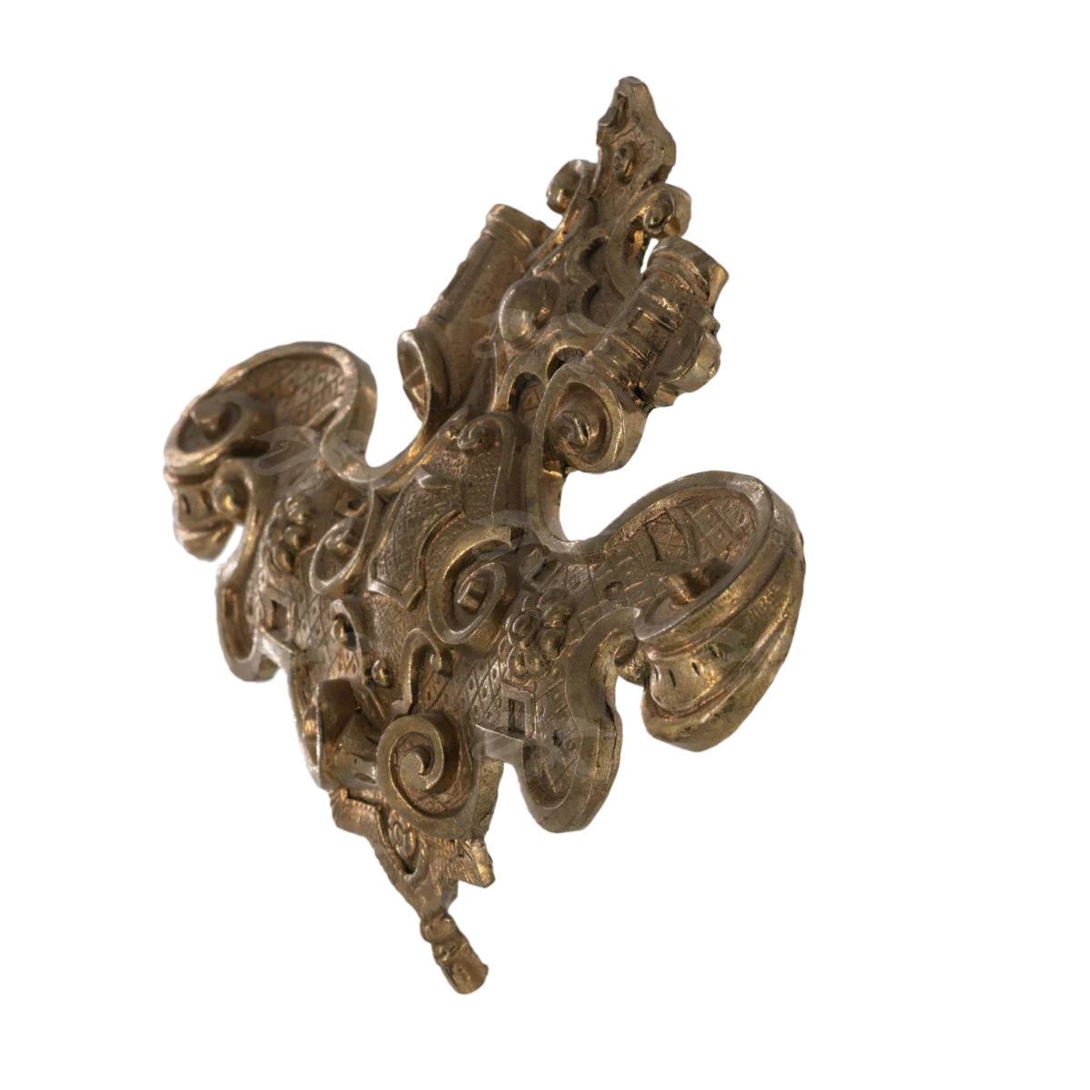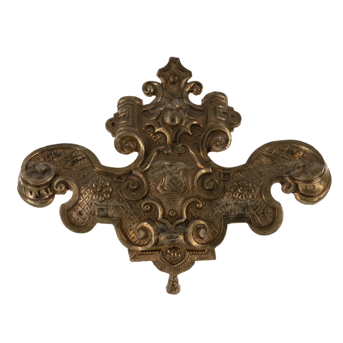 Мастерская «Калежа» производит декоративные мебельные накладки по индивидуальным проектам. Представленная фурнитура отличается авторским дизайном в классическом стиле. Накладка выполнена из бронзы. Она представляет собой картуш в обрамлении валют. По вашему желанию можно изменить размеры, материал и фактуру изделия. Любая продукция мастерской «Калежа» надежна, прочна и долговечна. В случае необходимости фурнитуру декорируют новыми узорами. Идею для будущего изделия вы можете изложить нашим опытным мастерам.