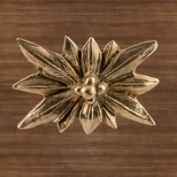Художественно-производственная мастерская «Калежа» изготавливает декоративные элементы в стиле модерн по индивидуальному заказу. Вытянутый цветок с каплями выполнен из латуни по технологии бронзового литья. Каждую деталь рисунка отличает тщательная прорисовка. Возможно изготовление уникальной фурнитуры в подобном стиле. Наши мастера также работают по предоставленным эскизам. Срок выполнения заявок составляет от трех недель.