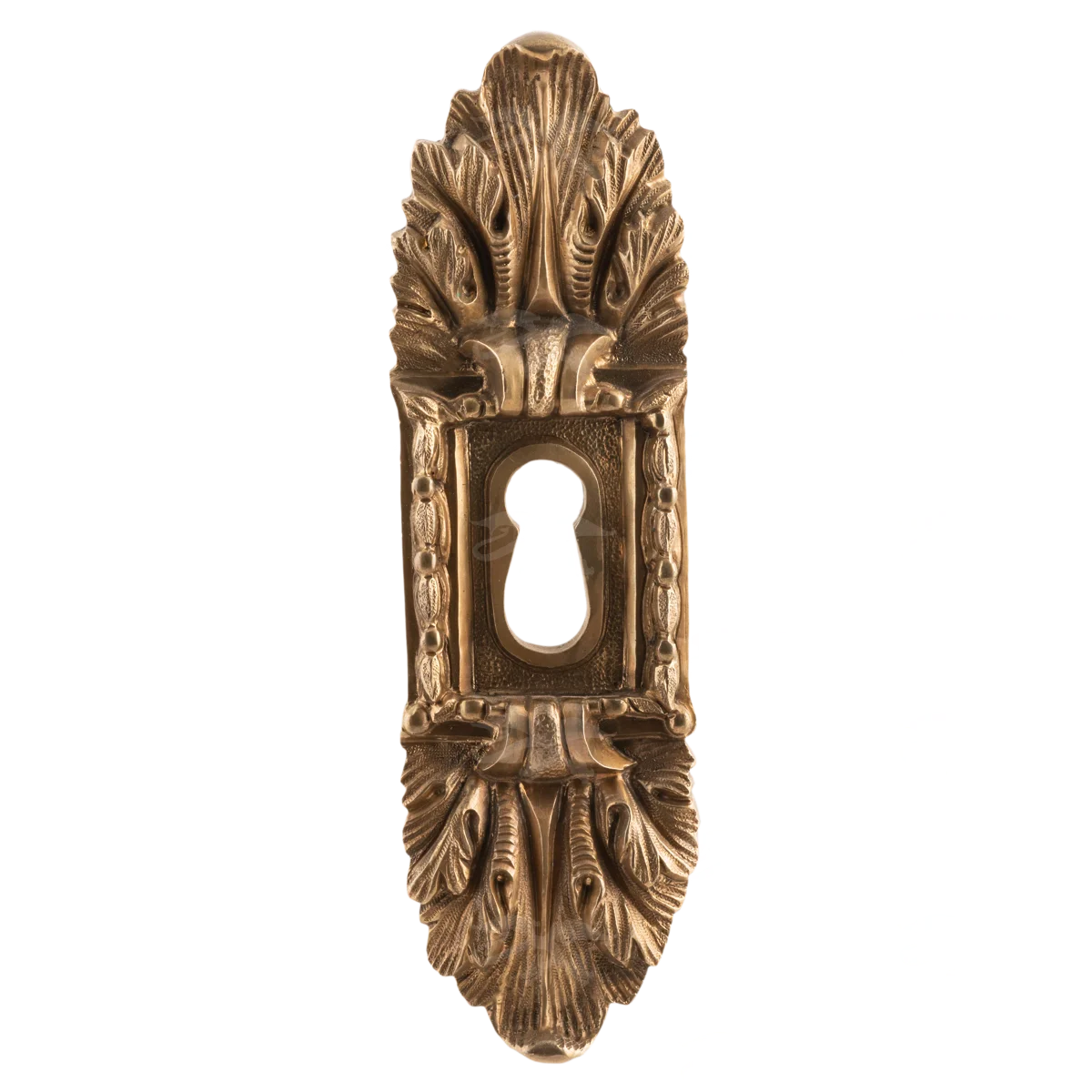 Художественно-производственная мастерская «Калежа» предлагает ключевины для мебели – декоративные накладки на замочные скважины. Представленная фурнитура – источник новых идей, потому что каждое наше изделие индивидуально. Материалом служит латунь, а в качестве технологии производства было выбрано бронзовое литье. Также возможно использование патинирования. Наши мастера могут работать по готовым эскизам. Срок выполнения уникальной фурнитуры составляет от трех недель.