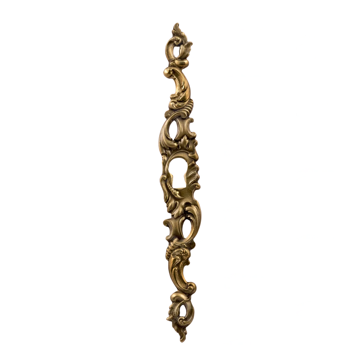 Ключевина, изготовленная в мастерской «Калежа», характеризуется элитным дизайном и качественным исполнением. Она может составить гармоничный дуэт с ключом, имеющим подобное оформление. Фурнитура создана из бронзы и отличается высокой прочностью. Пышный декор – разумное решение для классического интерьера. По желанию заказчика можно изменить узор или форму изделия.