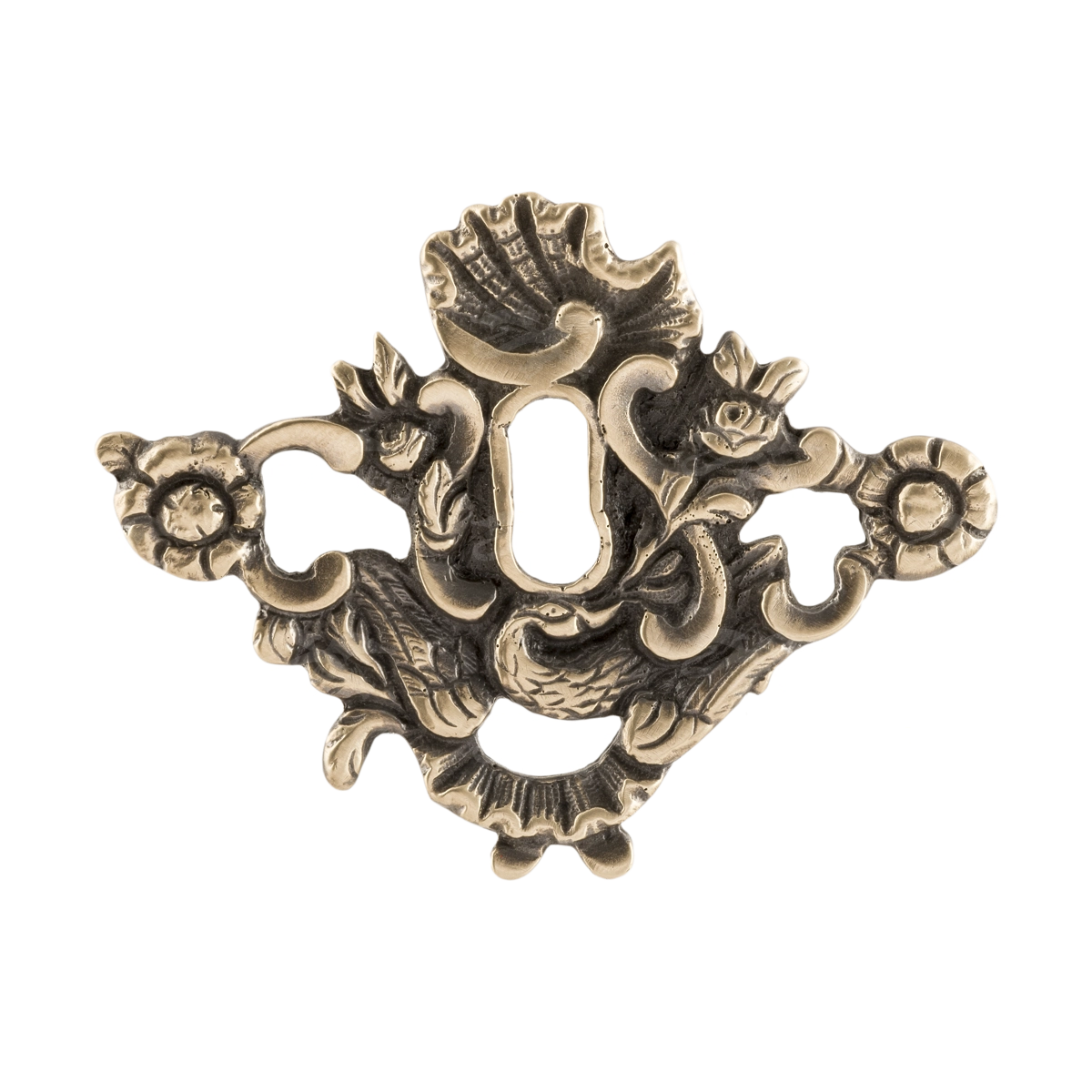 Художественно-производственная мастерская «Калежа» предлагает ключевины для мебели – декоративные накладки на замочные скважины. Представленная фурнитура – источник новых идей, потому что каждое наше изделие индивидуально. Материалом служит латунь, а в качестве технологии производства было выбрано бронзовое литье. Также возможно использование патинирования. Наши мастера могут работать по готовым эскизам. Срок выполнения уникальной фурнитуры составляет от трех недель.