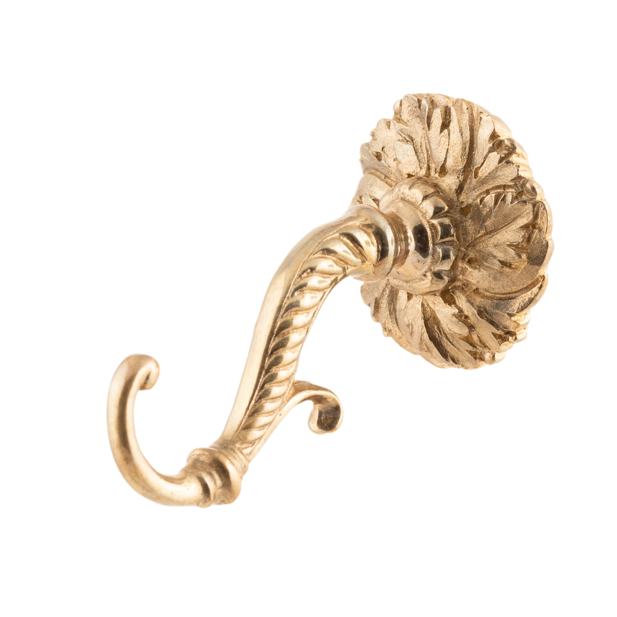 В мастерской «Калежа» можно заказать уникальные аксессуары. Крючок для одежды из латуни – образец для новых работ. Создавая фурнитуру, наши мастера использовали технологию бронзового литья. Держатель в стиле барокко снабжен пышным растительным узором. Срок изготовления оригинальной декоративной продукции в нашей компании составляет не более трех недель.