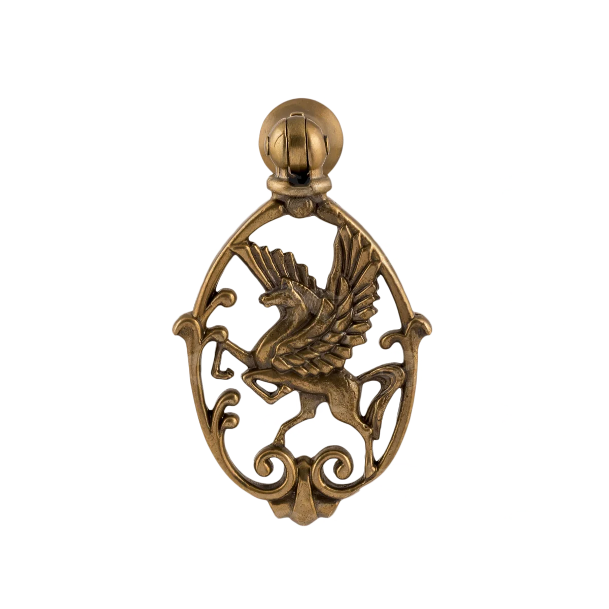 Иногда мебельные ручки становятся ярким акцентом. Это изделие с анималистичным орнаментом – из их числа. В центре композиции – крылатый конь, который известен в греческой мифологии под именем Пегас. Его окружает изысканный орнамент. Специалисты литейной мастерской «Калежа» изготовят фурнитуру для мебели под заказ из латуни и бронзы. Эти мелочи дополнят любой интерьер и сделают дом уютнее.