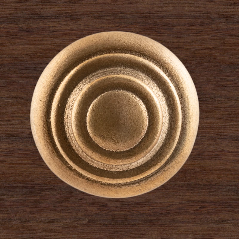Ручка-кнопка Ф6913 может быть глянцевой или матовой. При заказе вы выбираете финишную отделку поверхности. По желанию заказчика мастера также внесут изменения в дизайн изделия. Например, дополнят гладкую мебельную фурнитуру рельефным орнаментом с растительными мотивами. Сроки изготовления небольших элементов по индивидуальному эскизу – от 2 недель.