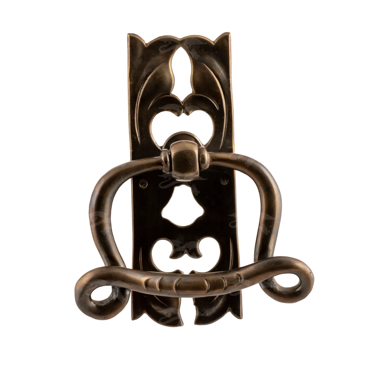 Представленная мебельная ручка в стиле классицизма изготовлена в мастерской «Калежа». Изделие выполнено по индивидуальному заказу, но вы всегда можете заказать похожую по оформлению фурнитуру. Симметричные элементы и волнообразная текучая форма – отличное дизайнерское решение для любого интерьера. Такие мебельные ручки характеризуются долгим сроком безупречной службы.