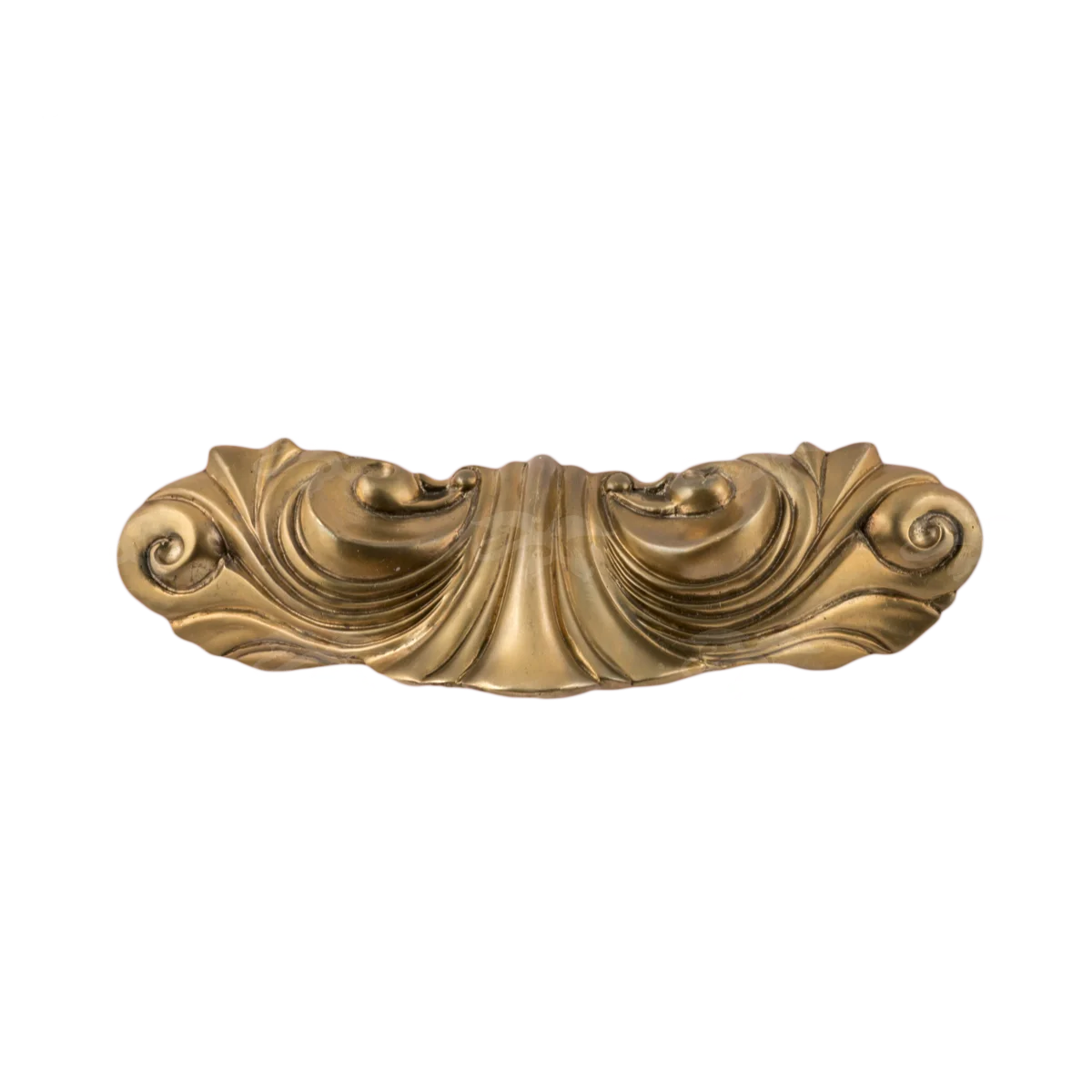 Оригинальная мебельная ручка изготовлена из бронзы. Дизайнерское оформление отличается сложностью узоров и использованием объемных элементов. Орнамент с мотивами флористики привлекает к себе внимание в любом помещении. Благодаря оригинальному декору стандартная фурнитура превращается в изысканную деталь интерьера. Данная работа также отличается прочностью и предназначается для многолетней службы. В мастерской «Калежа» вы можете оформить заказ на изделия в похожем стиле. Если вам необходимы стильные мебельные ручки, античная бронза – лучшее решение этой задачи.