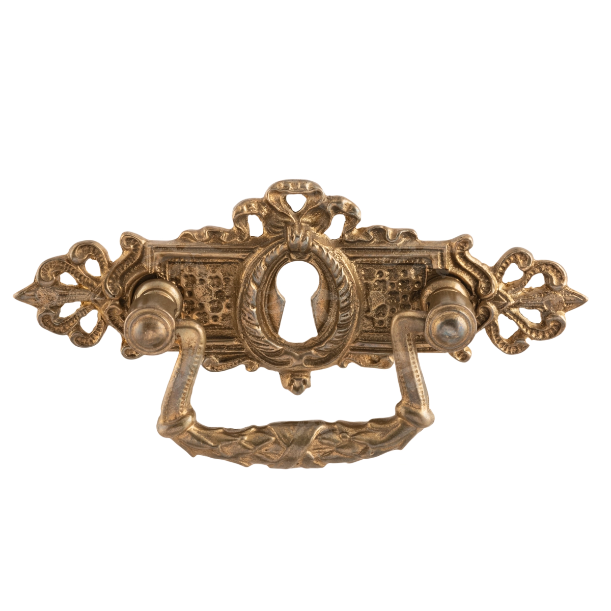 Мастерская «Калежа» создает уникальную фурнитуру в стиле рококо и барокко. Ручка мебельная Ф2788 выполнена из латуни и отличается пышным оформлением. Работая над этим проектом, мы применяли технологию литья. Предусмотрено соединение с ключевиной, покрытой сложным узором. Изготовление подобных аксессуаров для мебели возможно в течение трех недель.