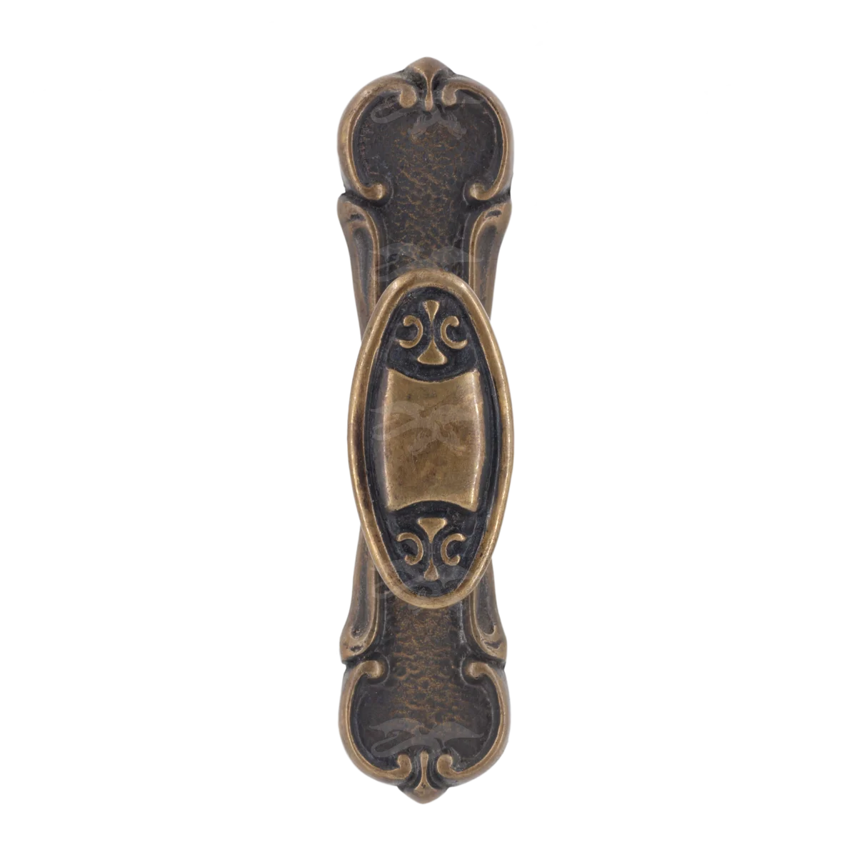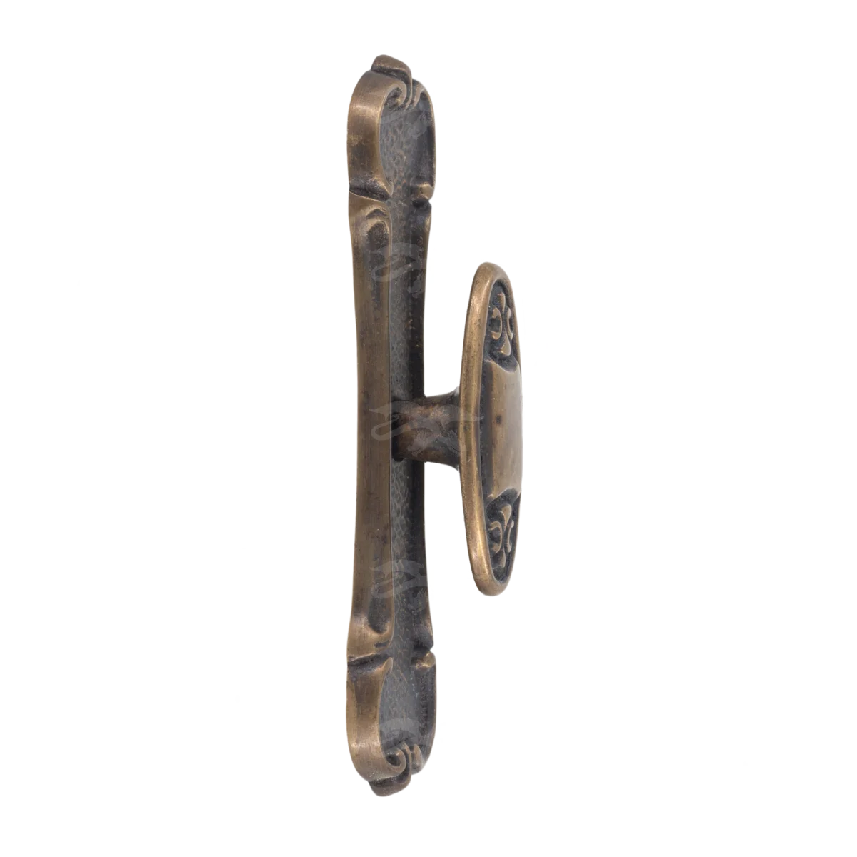 В каталоге мастерской «Калежа» вы можете выбрать интересную идею для домашней фурнитуры. Представленная работа создана из бронзы. Такие мебельные ручки отличаются высокой функциональностью, надежностью и долговечностью. Поверхность снабжена сложным узором. Мебельные ручки подобного типа прекрасно сочетаются с другой фурнитурой, выполненной в классическом стиле. В мастерской «Калежа» возможен заказ бронзовых изделий любых форм и размеров. Даже если вы выберете идею в каталоге, специалисты предложат оригинальное переосмысление деталей.