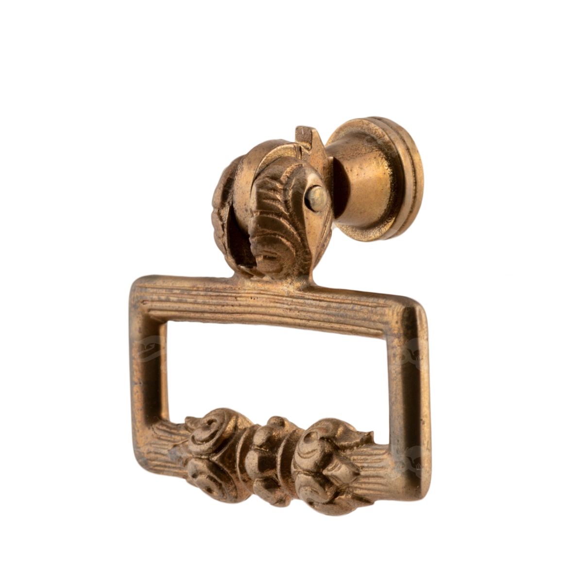 Оригинальная мебельная ручка выполнена в стиле классицизм. Особенностью изделия является гармоничное сочетание геометрически правильных форм. Круглое крепление украшено затейливым узором. Подвижная часть имеет рельефную поверхность и прямоугольную форму. Это красивое изделие станет необычной деталью классического интерьера, придаст ему индивидуальность. В литейной мастерской «Калежа» можно заказать и другие варианты фурнитуры.