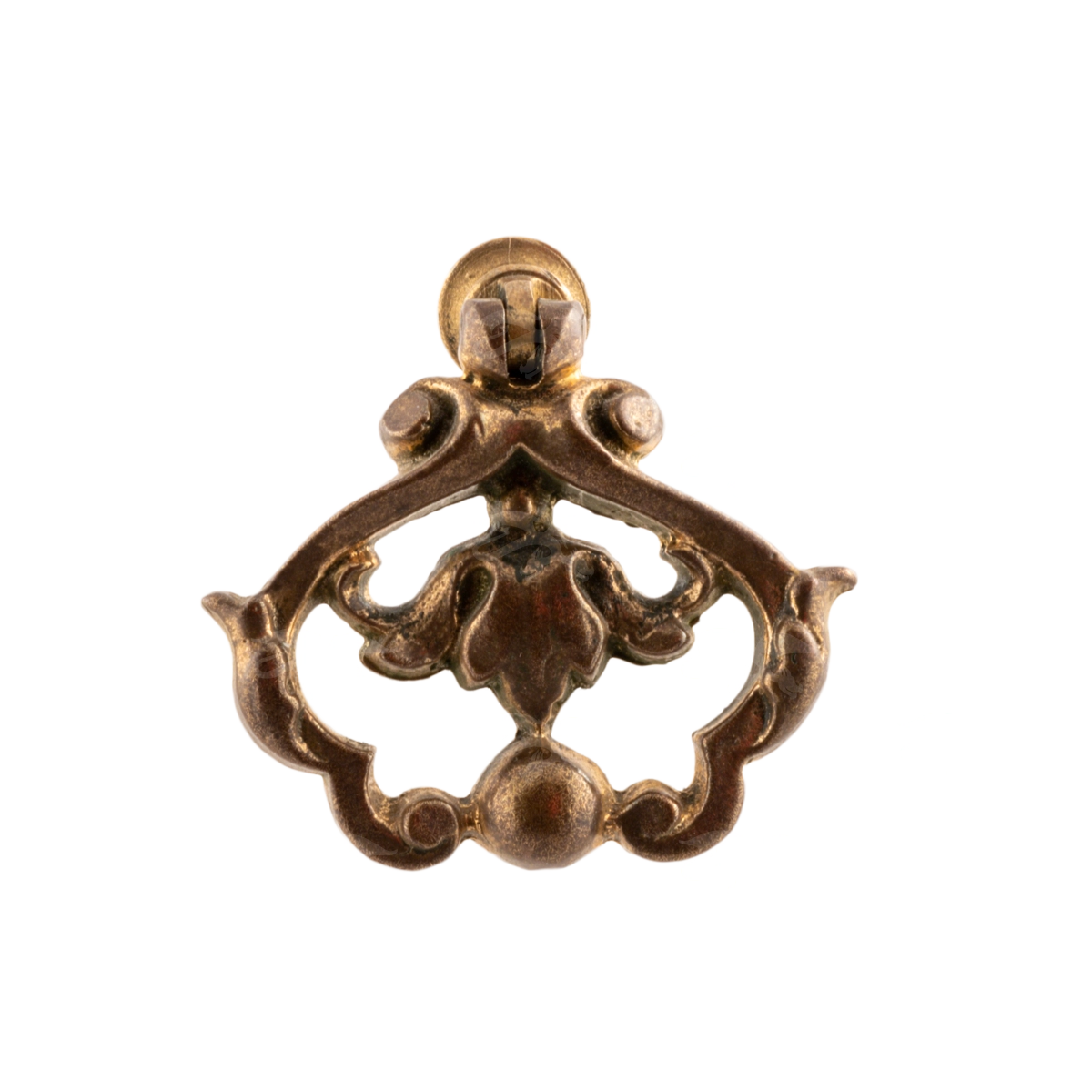 Небольшая мебельная ручка с прорезным декором в виде растительных элементов.
