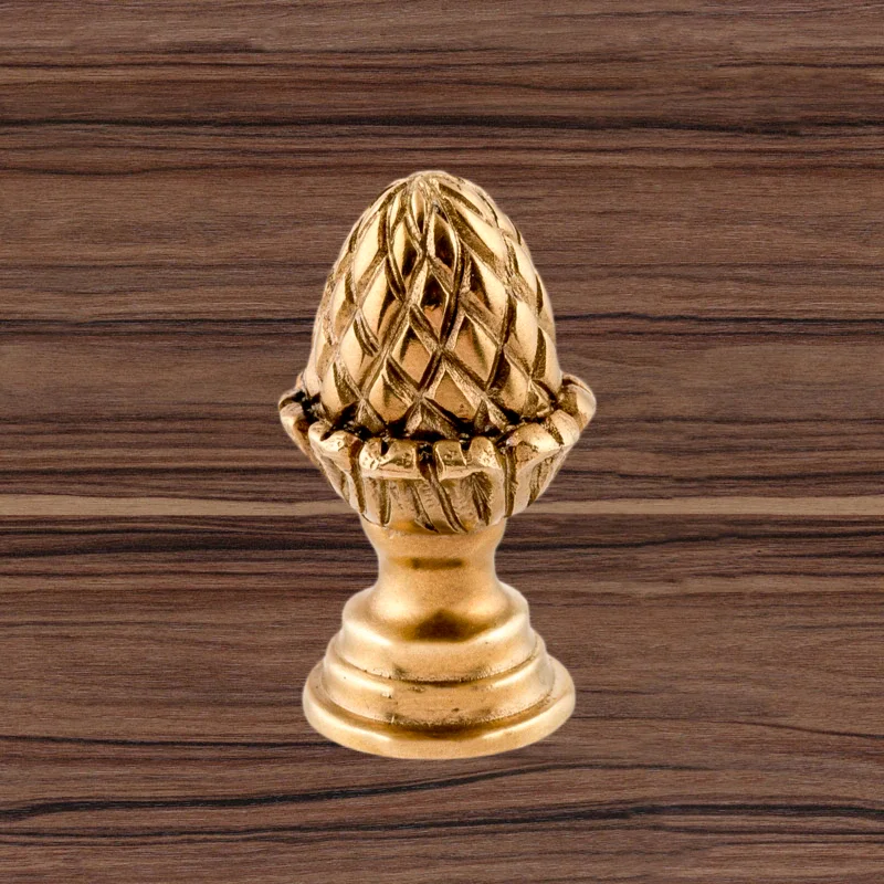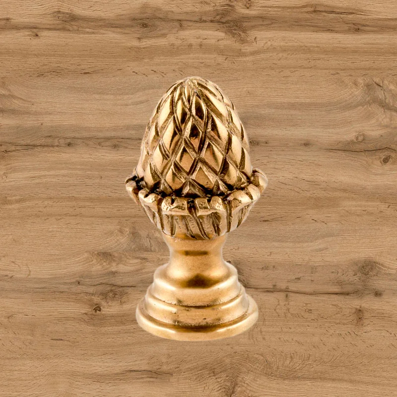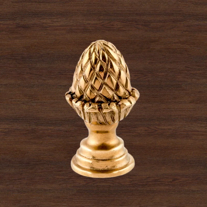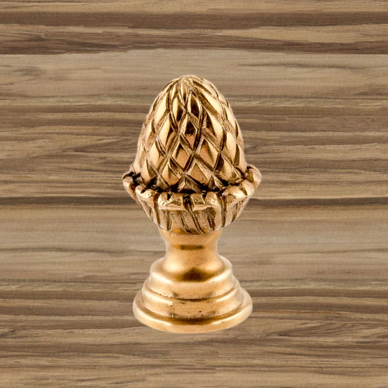 Ручка-кнопка «Шишка» сделает самый простой и гладкий мебельный фасад настоящим произведением искусства. Ее можно поставить на ящики комода, прикроватной тумбочки, консоли в гостиной. Золотистая латунь будет хорошо сочетаться со светлым и темным деревом. Представленный образец можем сделать серебристым и матовым, затонировать под бронзу, выполнить в других размерах.