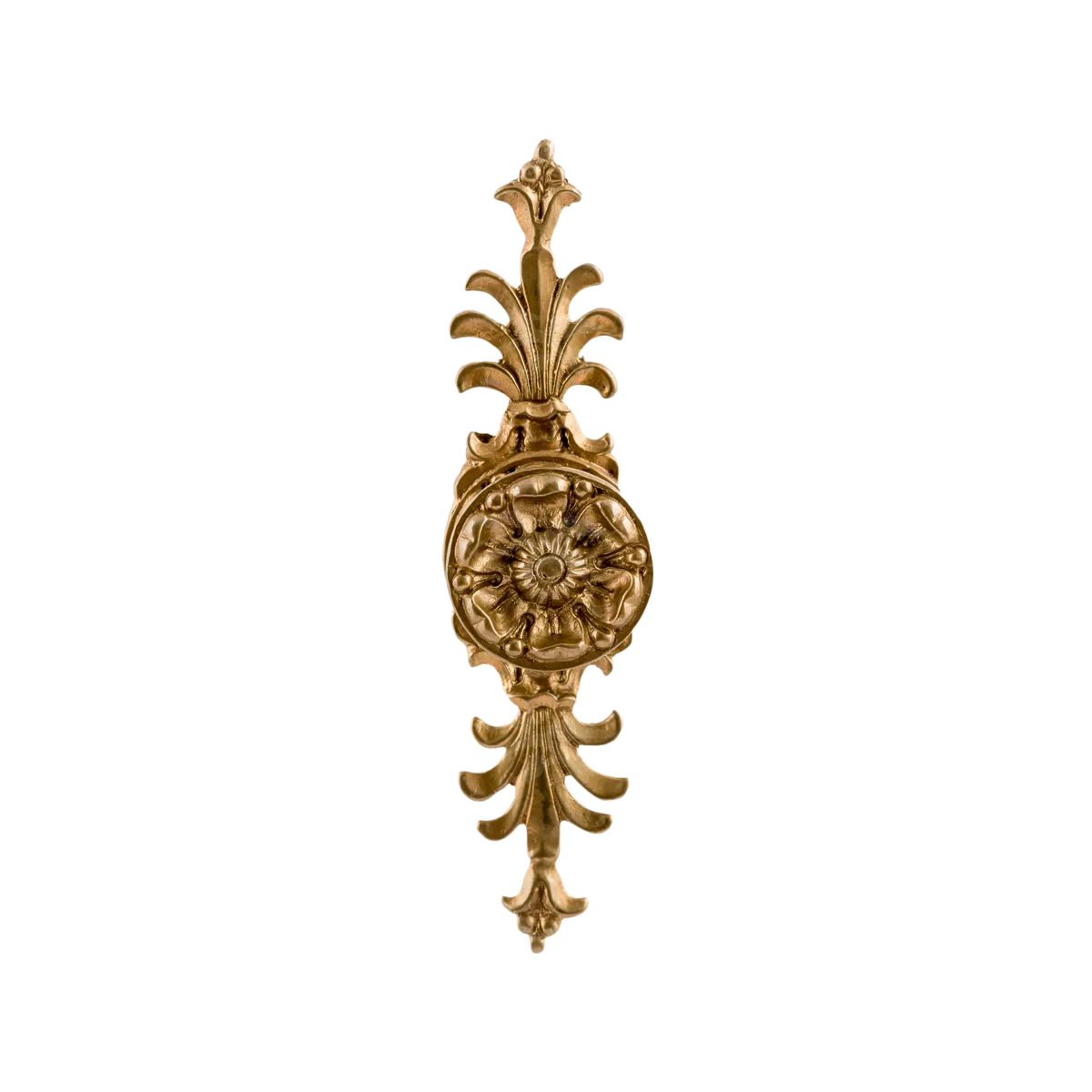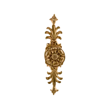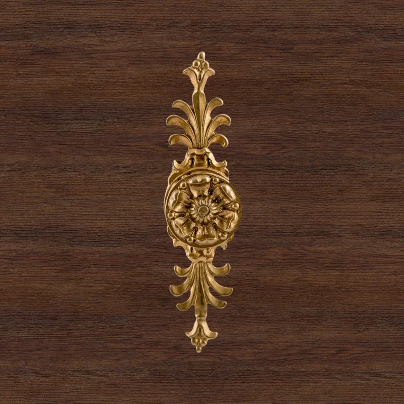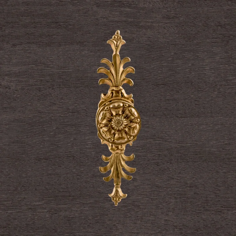 Мастерская «Калежа» производит разнообразную фурнитуру для мебели. Эта роскошная ручка в стиле ампир создана из качественного латунного сплава. Сдержанный цветочный декор, искусная работа с материалом и тщательное соблюдение симметрии являются отличительными чертами изделия. Выразительный дизайн подчеркивает соответствие канонам ампира и неизменно привлекает внимание гостей дома.