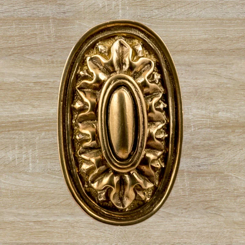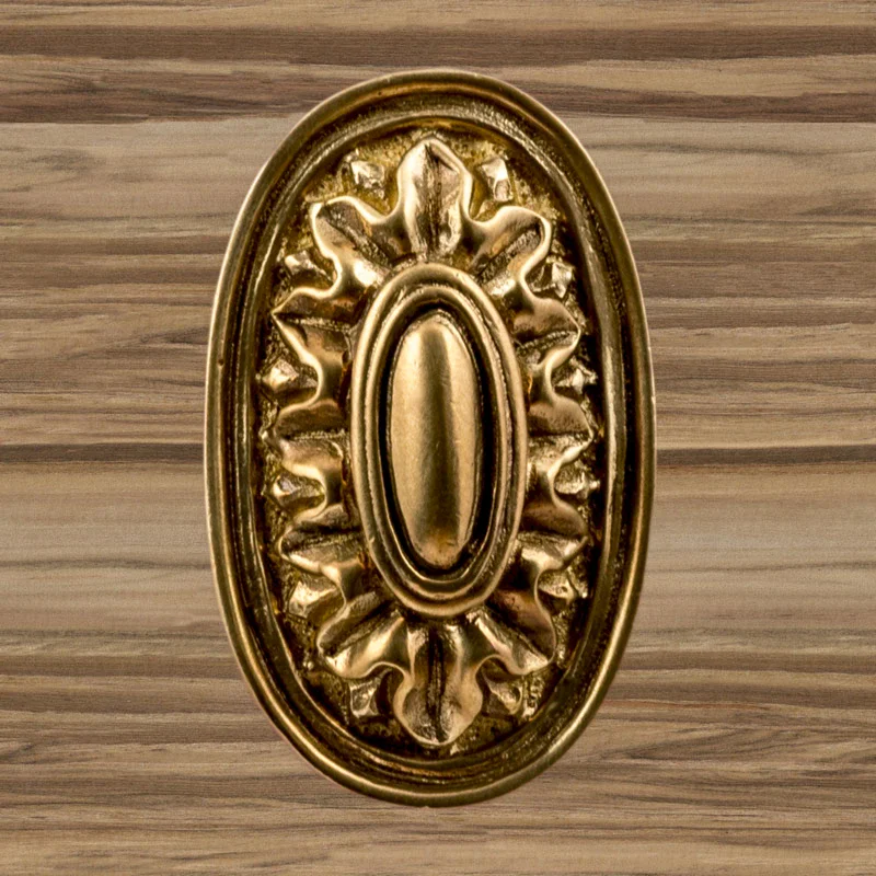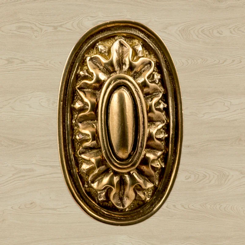 В каталоге мастерской «Калежа» можно подобрать оригинальные решения для любой фурнитуры. Если вам необходимы мебельные ручки врезные, бронза – лучший материал для решения этой задачи. Представленное изделие снабжено сложным симметричным узором. Оно характеризуется надежностью и функциональностью. Мебельная ручка прочна, долговечна и удобна для захвата рукой. В мастерской «Калежа» представлены не только изделия в классическом стиле, но и уникальные современные дизайнерские решения. Возможно выполнение заказов на мебельные ручки в максимально короткие сроки.