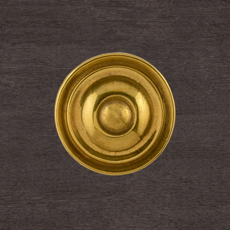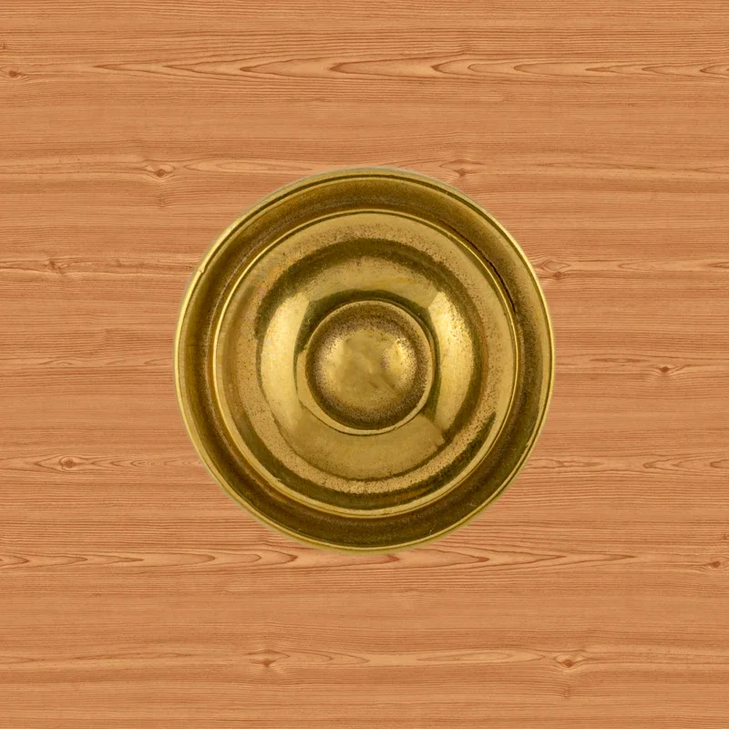 Мастерская «Калежа» создает разную мебельную фурнитуру. Для ее изготовления используются технологии литья из латуни. Ручка-кнопка – образец для новых работ. Ее геометрический узор хорошо смотрится в классических и современных интерьерах. Комплектующие для мебели также изготавливаются по предоставленным эскизам. На выполнение заказа уходит около трех недель.