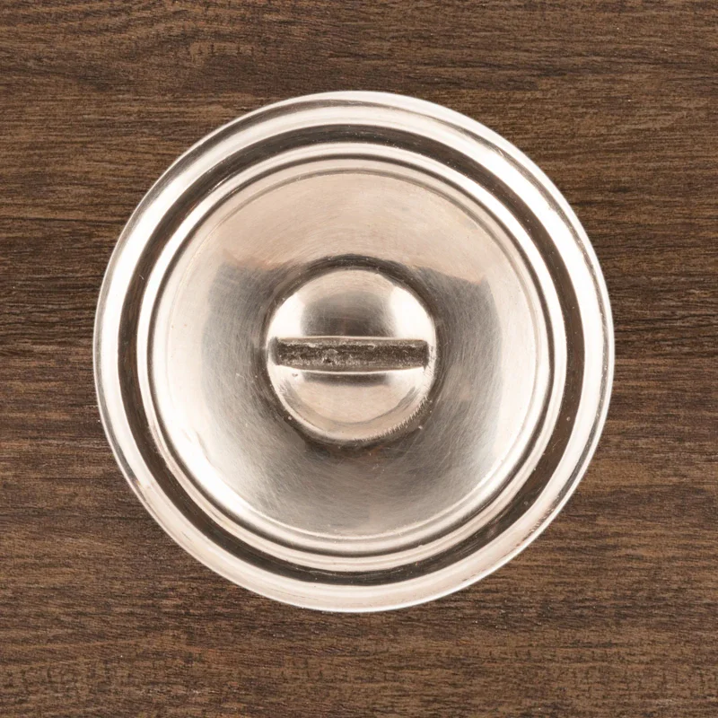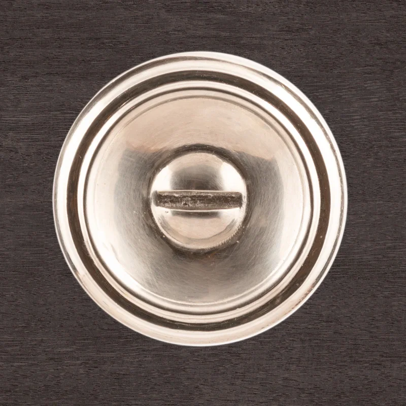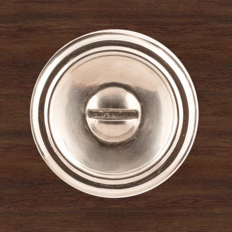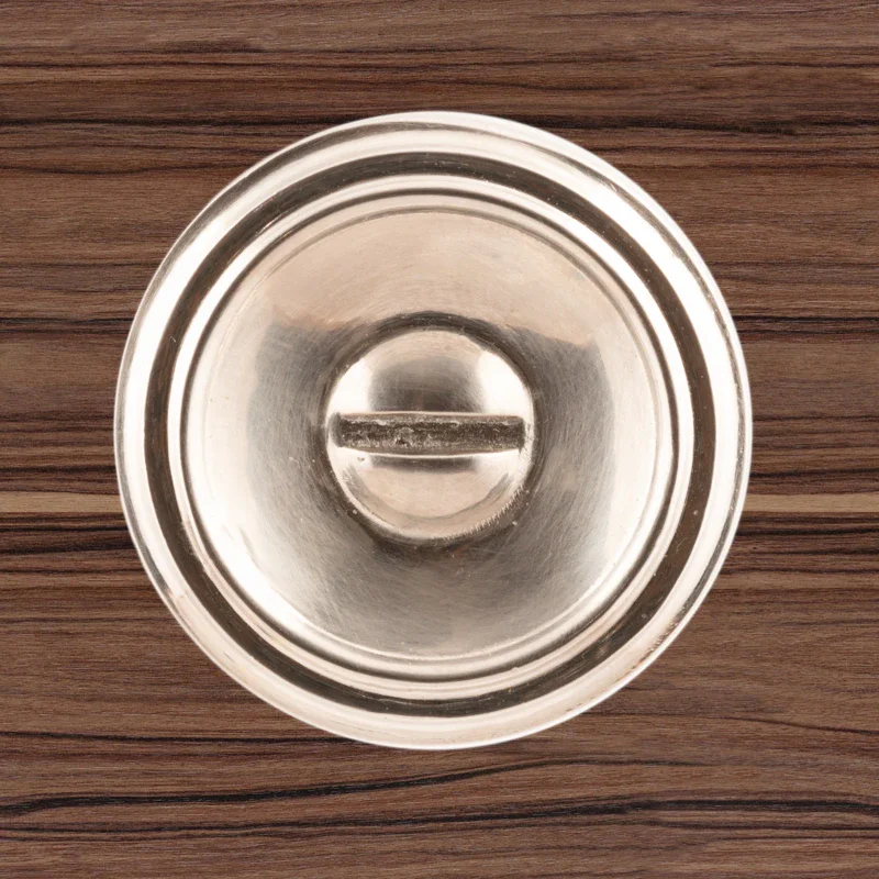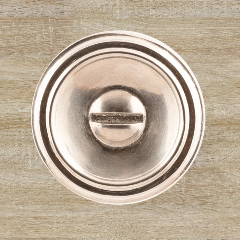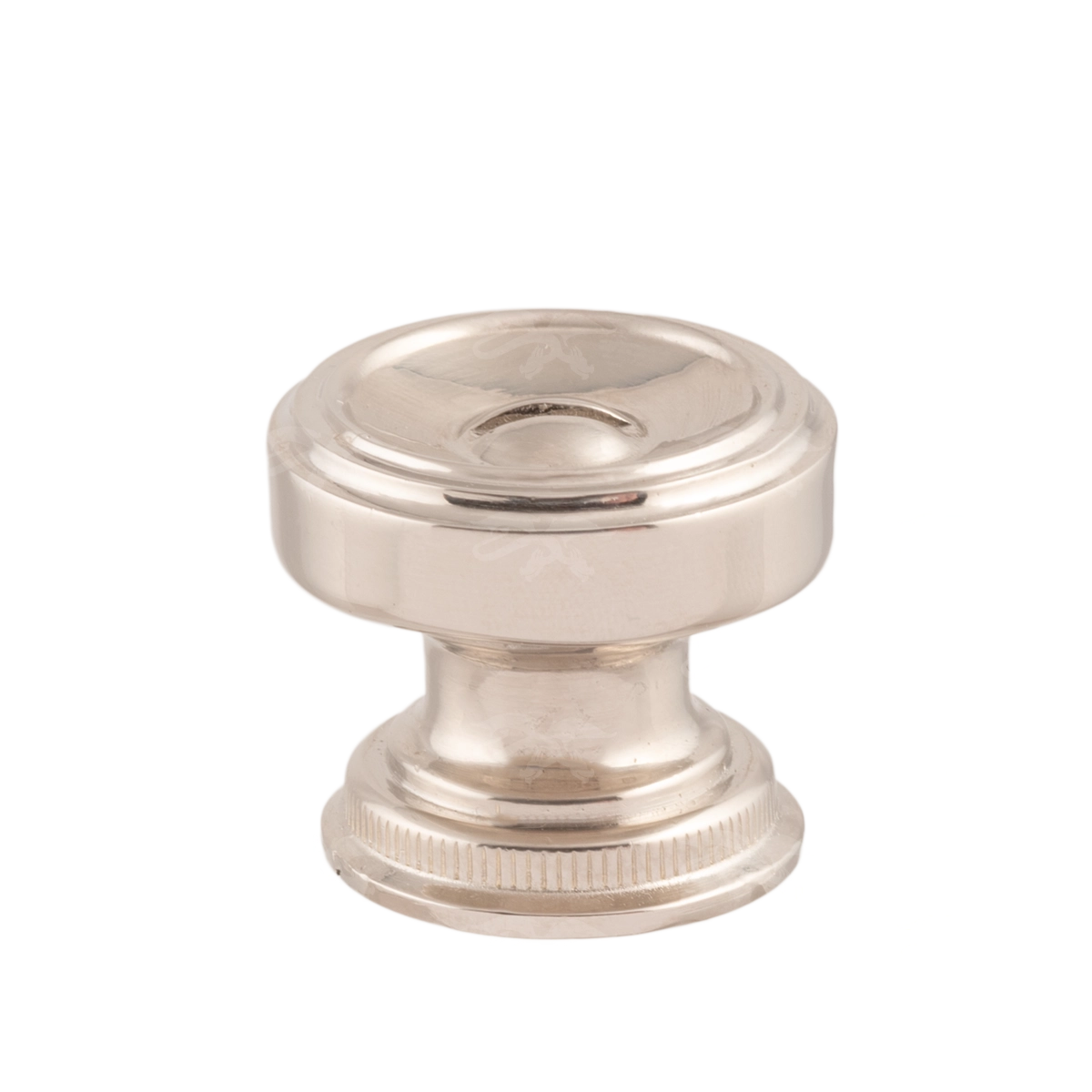 Ручка-кнопка создана для людей, предпочитающих минимализм в интерьере и в жизни. Это элегантная и довольно простая по форме мебельная фурнитура, которая не будет сильно бросаться в глаза и выделяться на фоне фасадов. Ее основным украшением является блеск глянцевой латуни, по цвету напоминающей светлое серебро. При заказе не обязательно повторять представленный пример в точности. Сделаем такую же ручку золотистой или темной, искусственно состарим, если вы этого захотите.