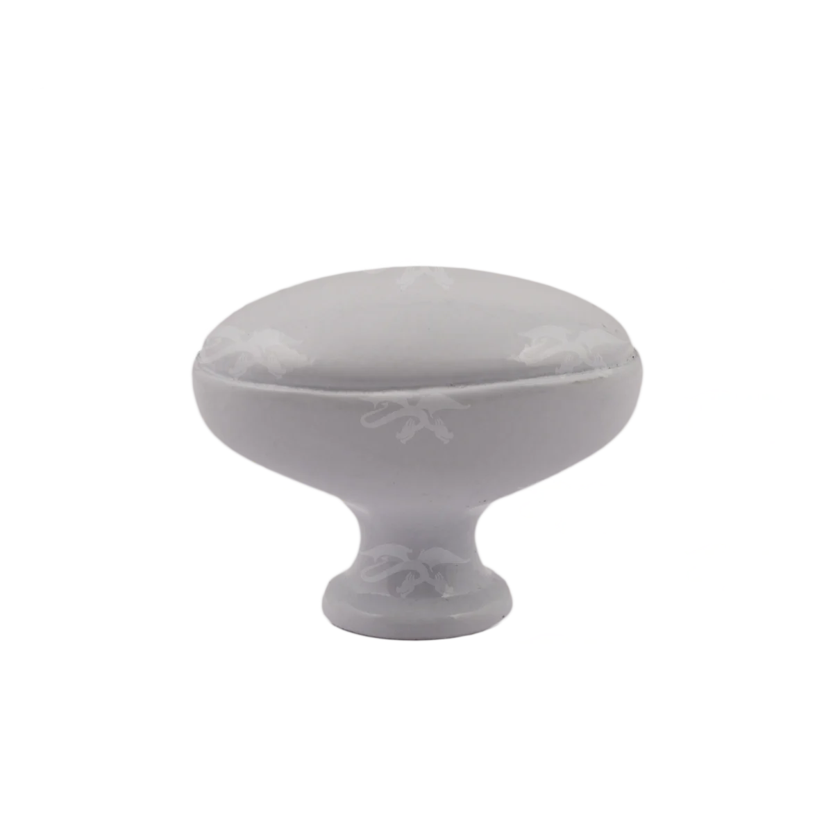 Уникальная ручка-кнопка в стиле минимализм изготовлена из латуни. Для этого наши мастера использовали бронзовое литье. При обработке поверхности можно применять окрашивание в разные цвета. Благодаря дизайнерскому оформлению изделие может стать украшением любого современного интерьера. Мастерская «Калежа» изготавливает мебельную фурнитуру всего за три недели. Она надежно удерживает дверцу шкафа в закрытом положении.